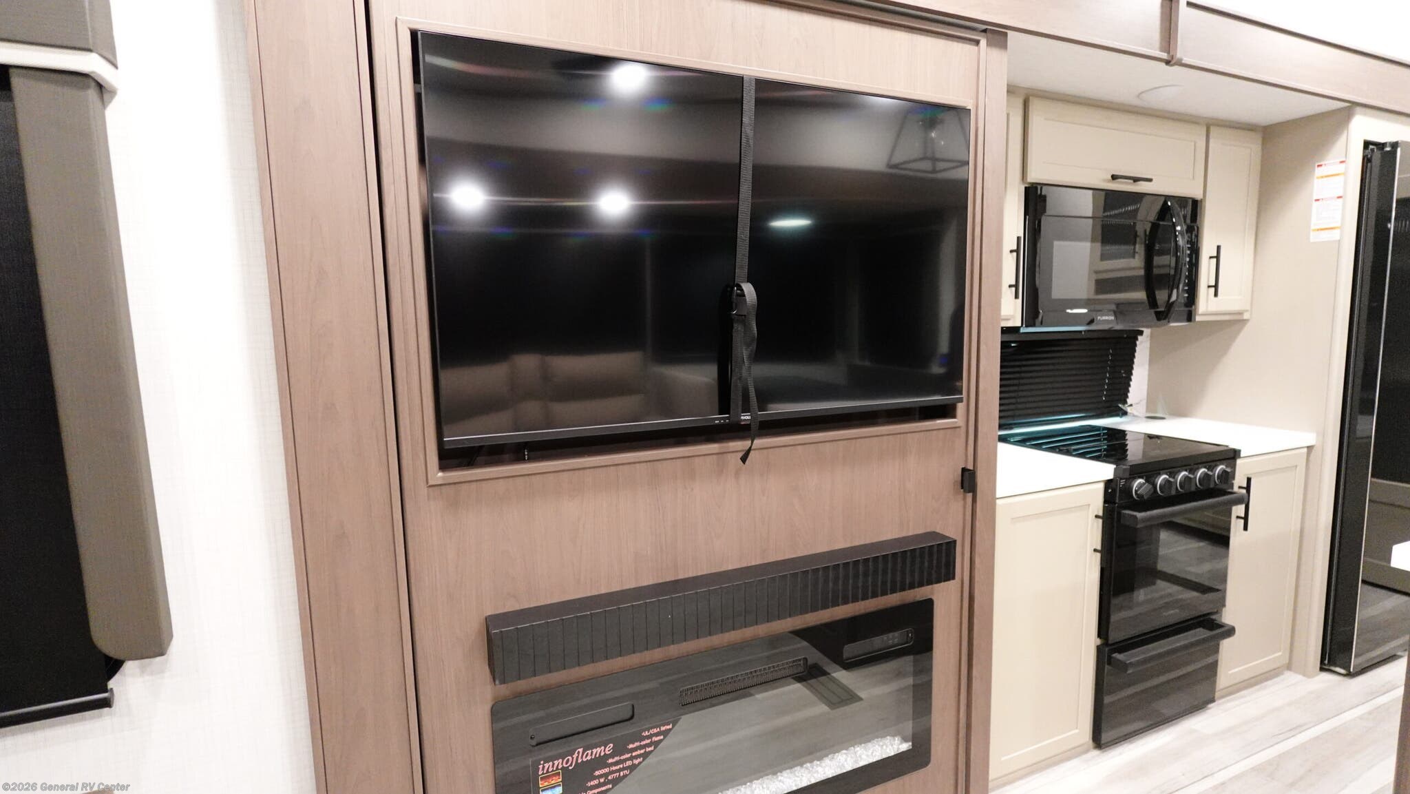 Experience the perfect blend of luxury and functionality with the 2026 Keystone Cougar 316RLS. This fifth wheel is designed to cater to your adventurous spirit while providing the comforts of home. With its spacious interior and thoughtful layout, you'll find room for the whole family, comfortably sleeping up to six. The front bedroom offers a cozy queen bed, with an option to upgrade to a king, ensuring restful nights on the road. The rear living area is an inviting space to unwind, featuring theater seating and a booth dinette, perfect for family meals or game nights. The Cougar 316RLS boasts a well-equipped center kitchen with a full-size electric refrigerator and a three-burner cooktop, making meal prep a breeze. The ample storage, including a pull-out trash bin and pantry, keeps everything organized. The dual awnings extend your living space outdoors, providing shade and shelter for your outdoor gatherings. Plus, with washer and dryer prep, you’re set for extended adventures. This RV is not just a travel companion; it's a lifestyle upgrade. For more details and to see it in person, visit your nearest General RV Dealership.