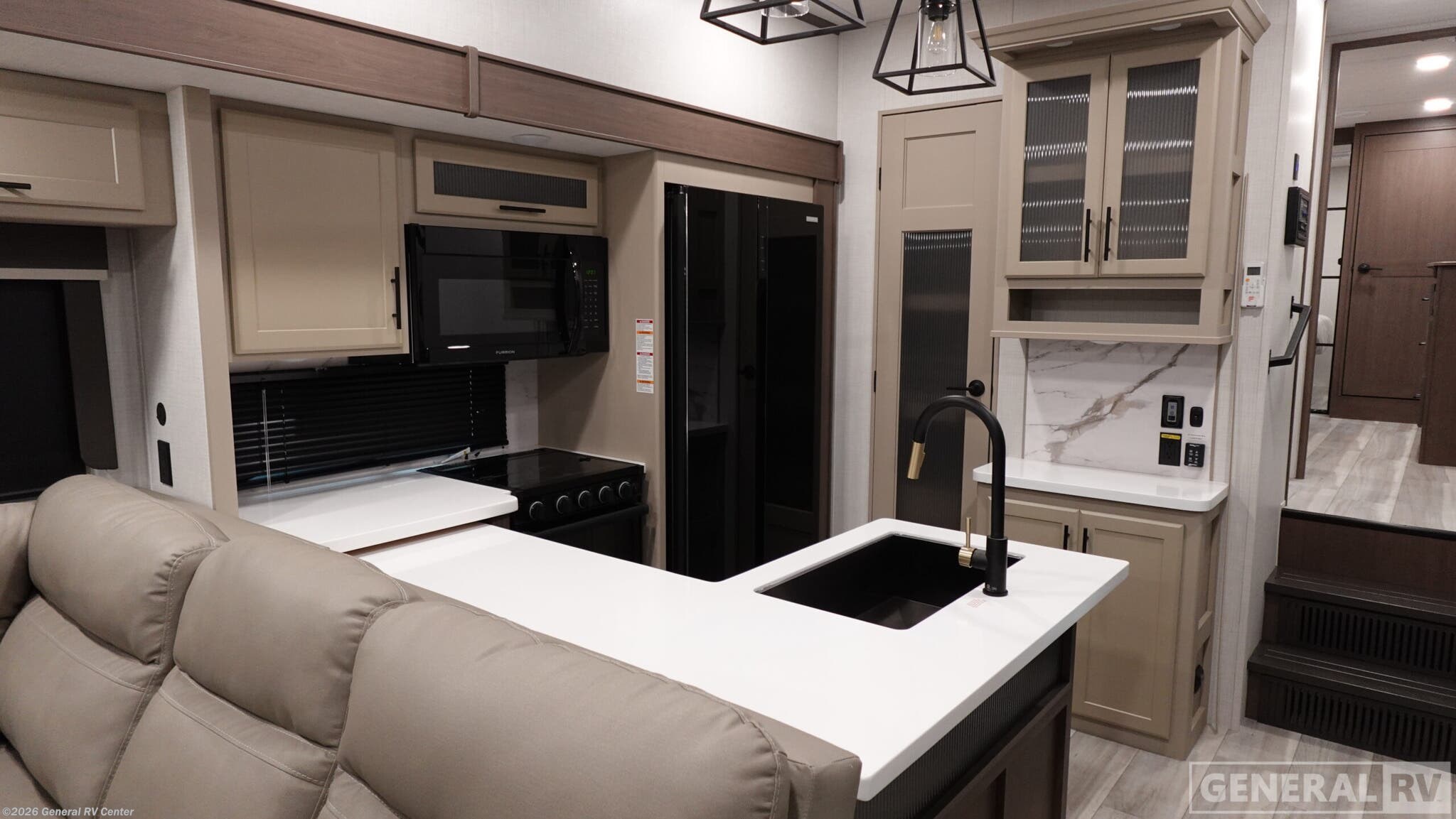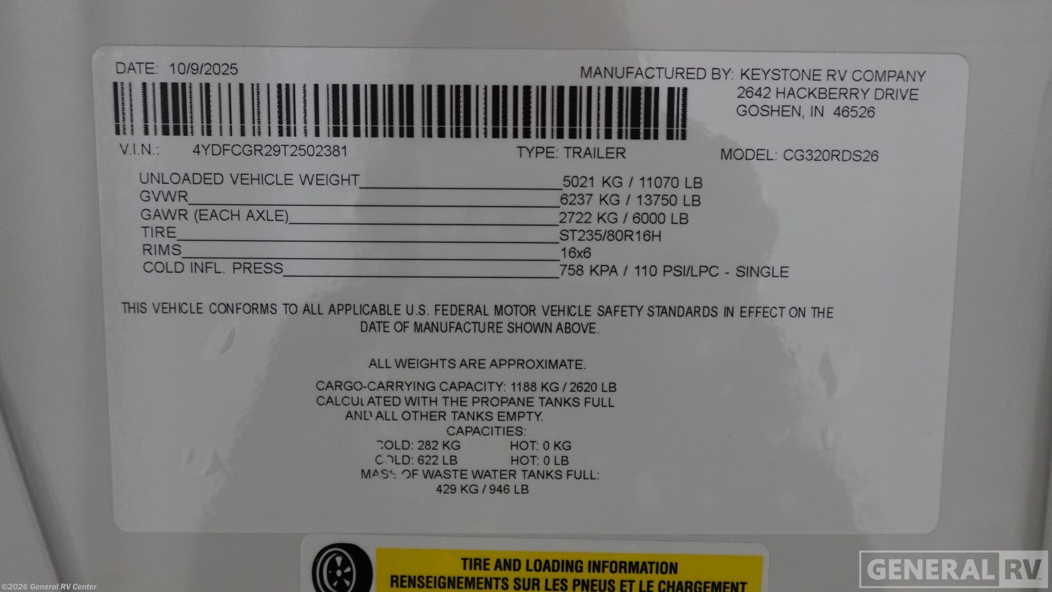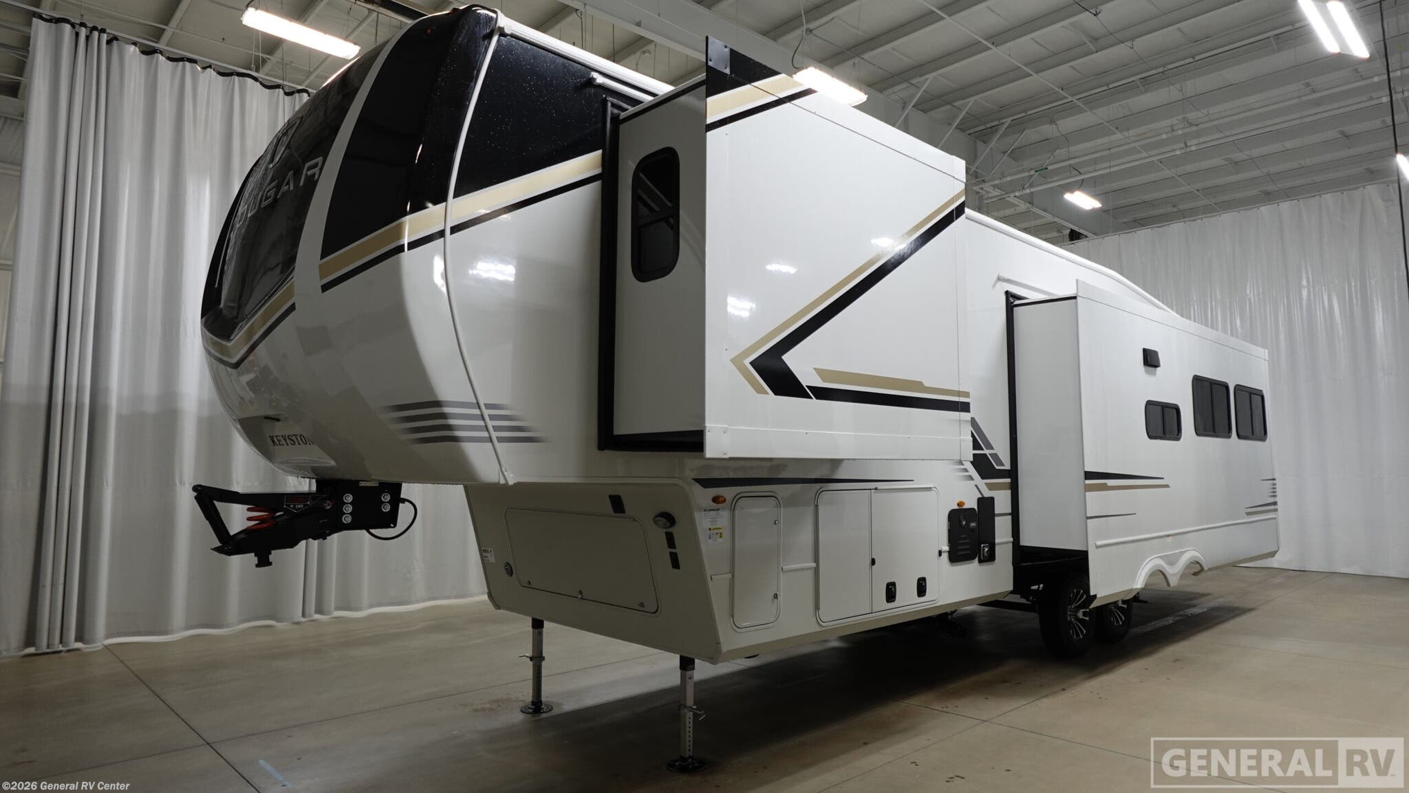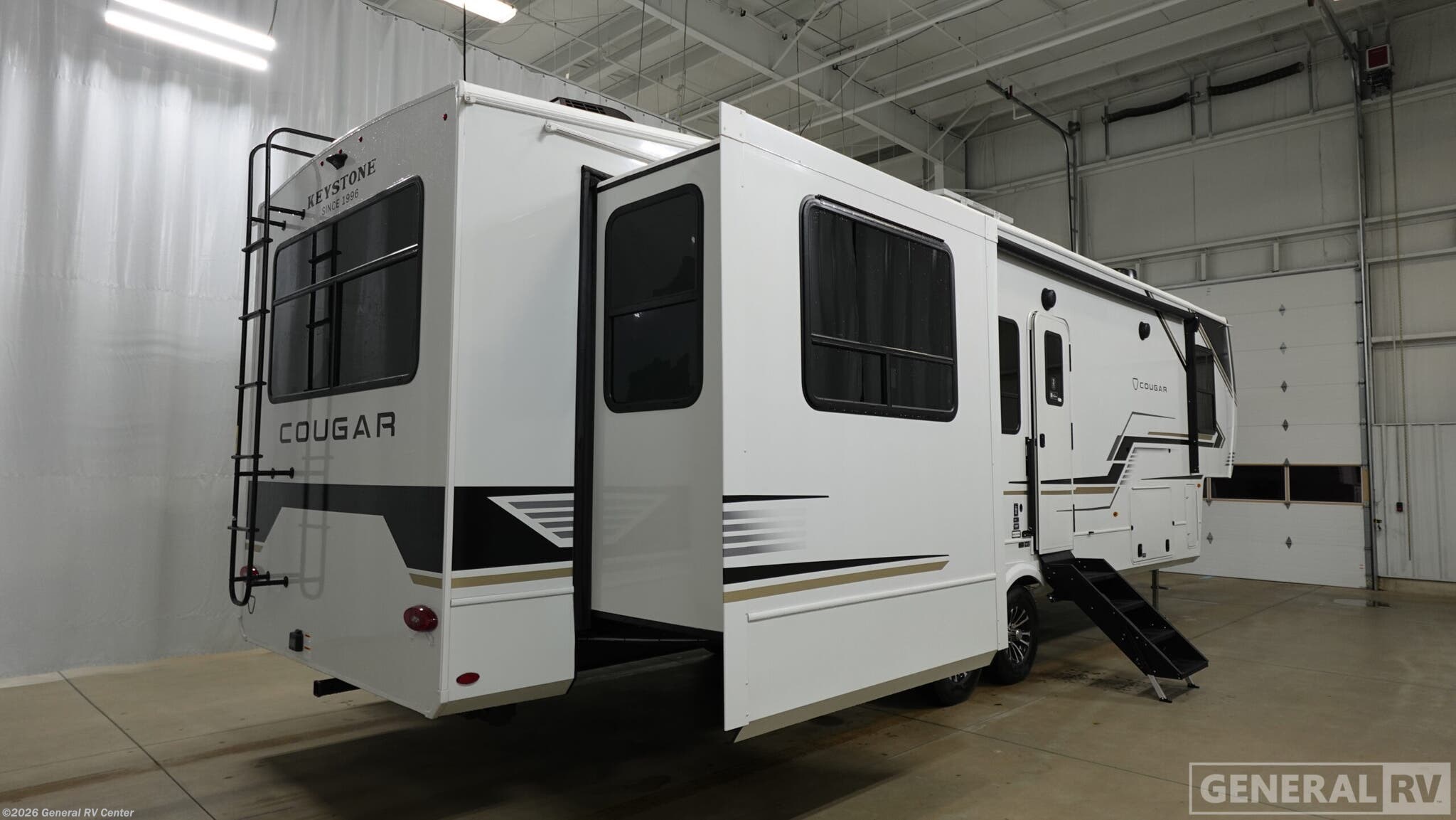 Experience the ultimate in luxury and convenience with the 2026 Keystone Cougar 320RDS. This RV is a masterpiece of design and functionality, offering a spacious and inviting layout that makes every journey a pleasure. Imagine relaxing in the rear living area, complete with a king tri-fold sofa and theater seats, perfect for unwinding after a day of adventure. The center kitchen is a chef’s dream, featuring a full-size electric refrigerator and a three-burner cooktop, ensuring you have all the amenities needed to whip up your favorite meals on the road. As you move towards the front, you'll find a cozy king bed, ensuring restful nights under the stars. The center bath provides all the comforts of home with a practical shower setup. With ample storage, including a full-height wardrobe and CPAP shelves, everything has its place. The 20 ft. powered retractable awning extends your living space to the outdoors, perfect for enjoying the scenic views. With its robust construction and thoughtful features, the Cougar 320RDS is your ticket to unforgettable adventures. For more details, visit your nearest General RV dealership.
