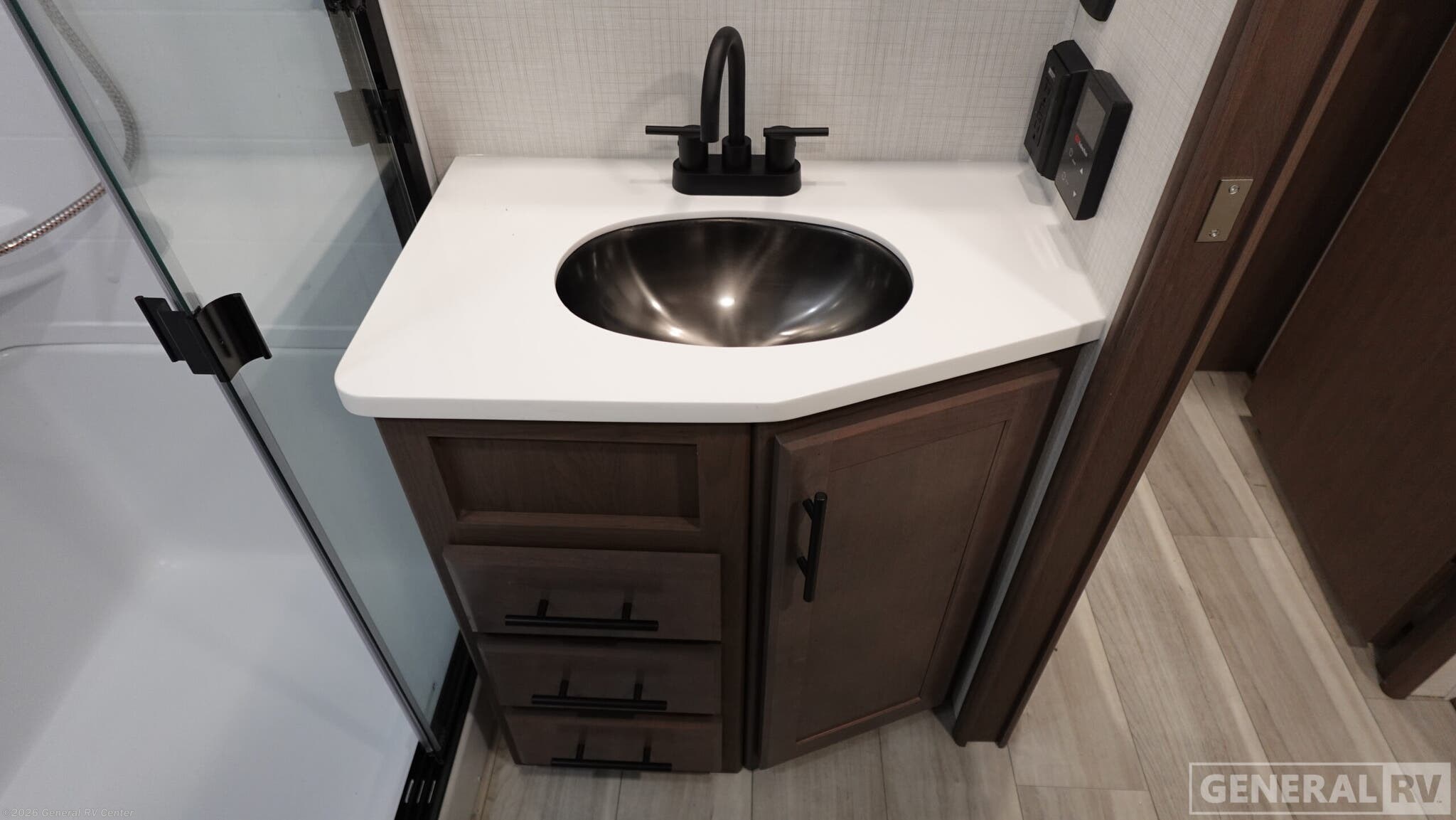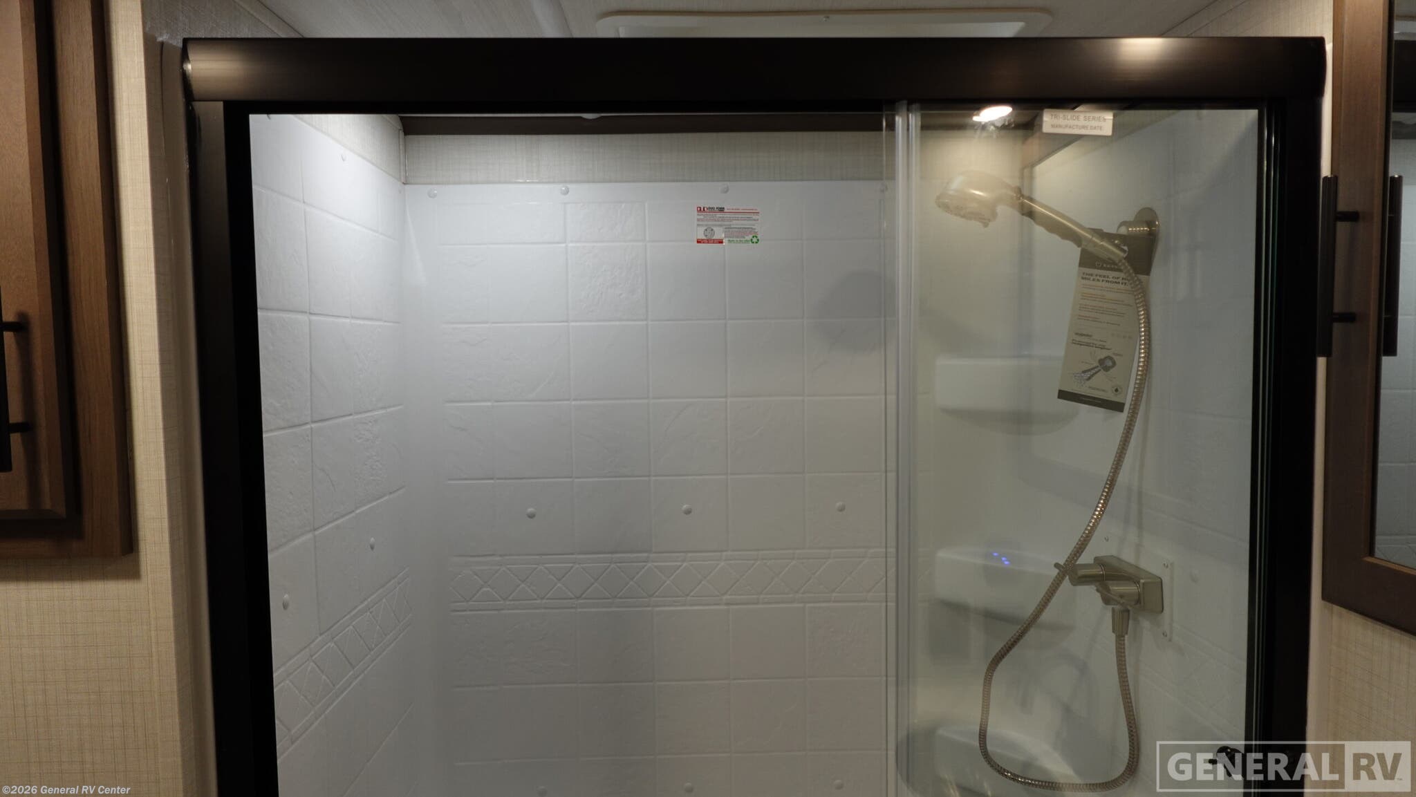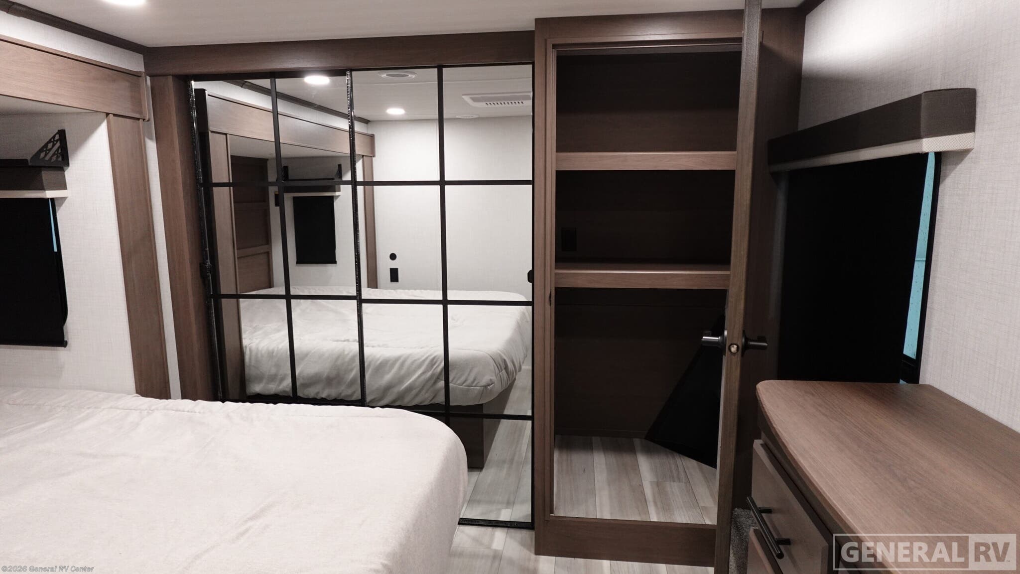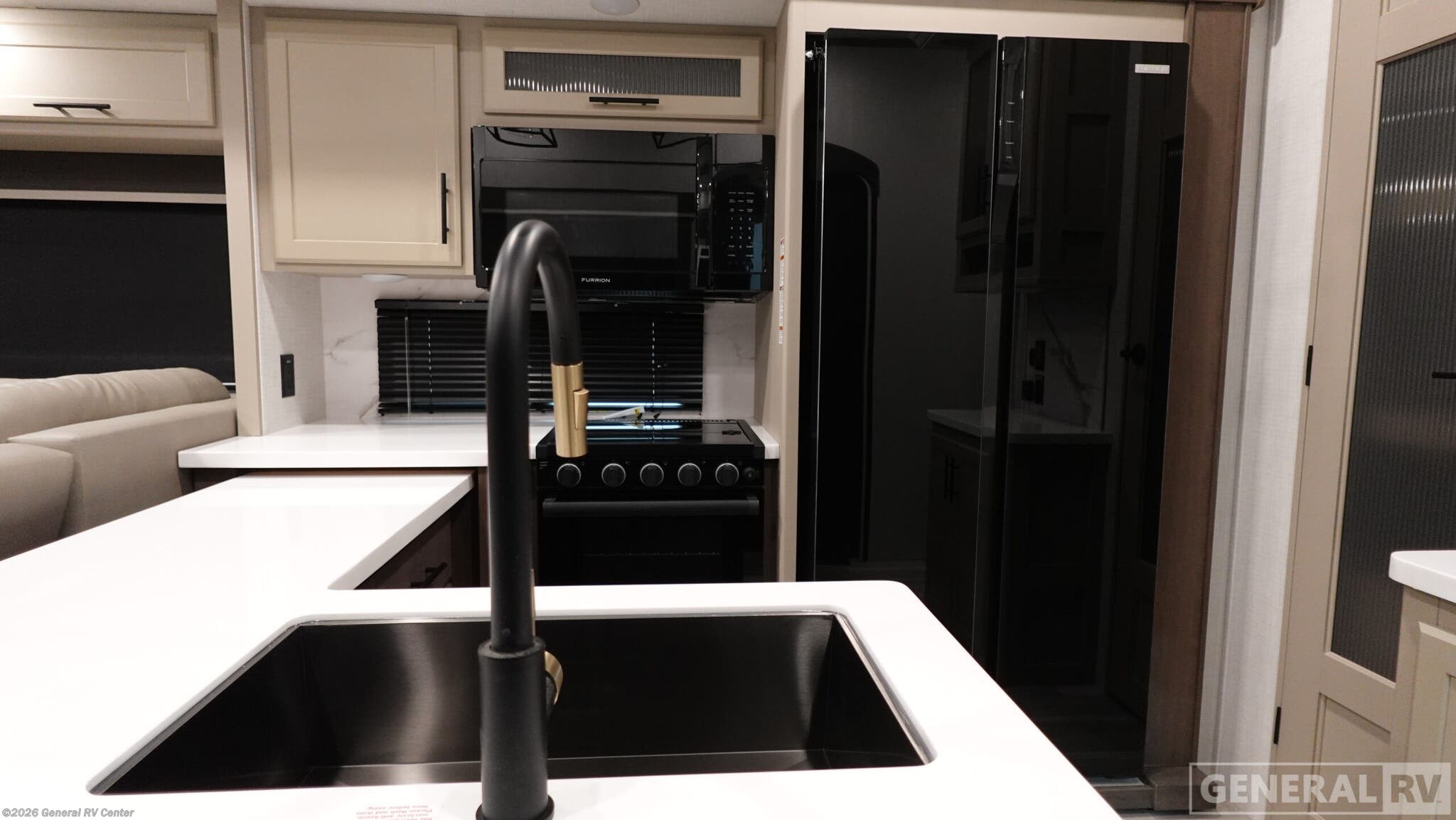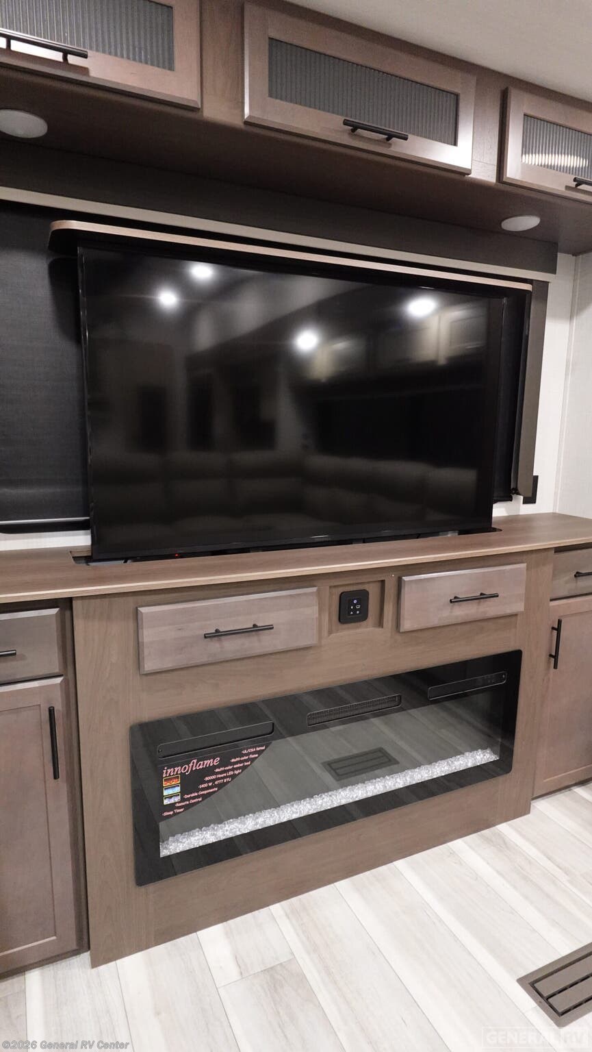 Experience the ultimate in luxury and convenience with the 2026 Keystone Cougar 320RDS. This RV is a masterpiece of design and functionality, offering a spacious and inviting layout that makes every journey a pleasure. Imagine relaxing in the rear living area, complete with a king tri-fold sofa and theater seats, perfect for unwinding after a day of adventure. The center kitchen is a chef’s dream, featuring a full-size electric refrigerator and a three-burner cooktop, ensuring you have all the amenities needed to whip up your favorite meals on the road. As you move towards the front, you'll find a cozy king bed, ensuring restful nights under the stars. The center bath provides all the comforts of home with a practical shower setup. With ample storage, including a full-height wardrobe and CPAP shelves, everything has its place. The 20 ft. powered retractable awning extends your living space to the outdoors, perfect for enjoying the scenic views. With its robust construction and thoughtful features, the Cougar 320RDS is your ticket to unforgettable adventures. For more details, visit your nearest General RV dealership.