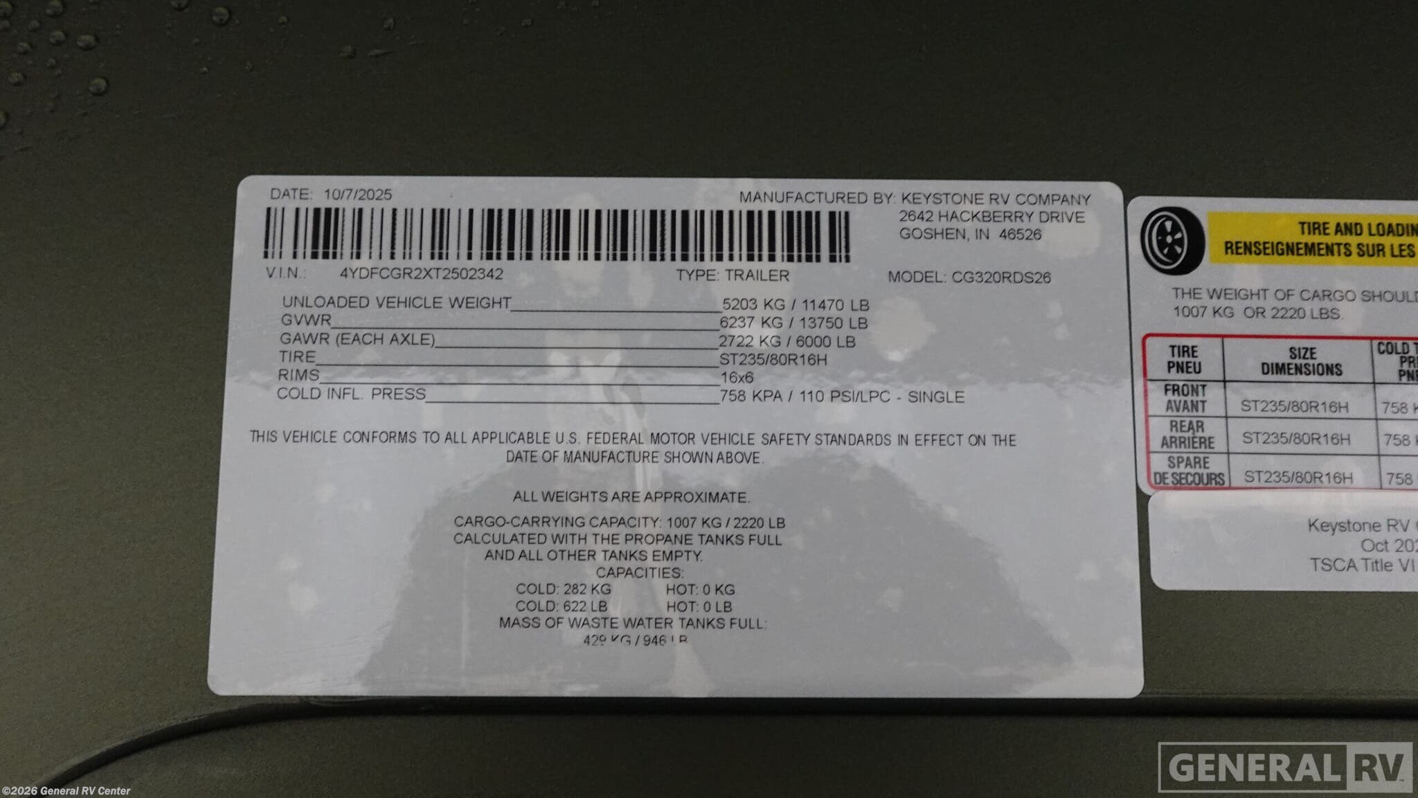 Request More Info on this 2026 Keystone Cougar 320RDS Offered for sale by General RV Center