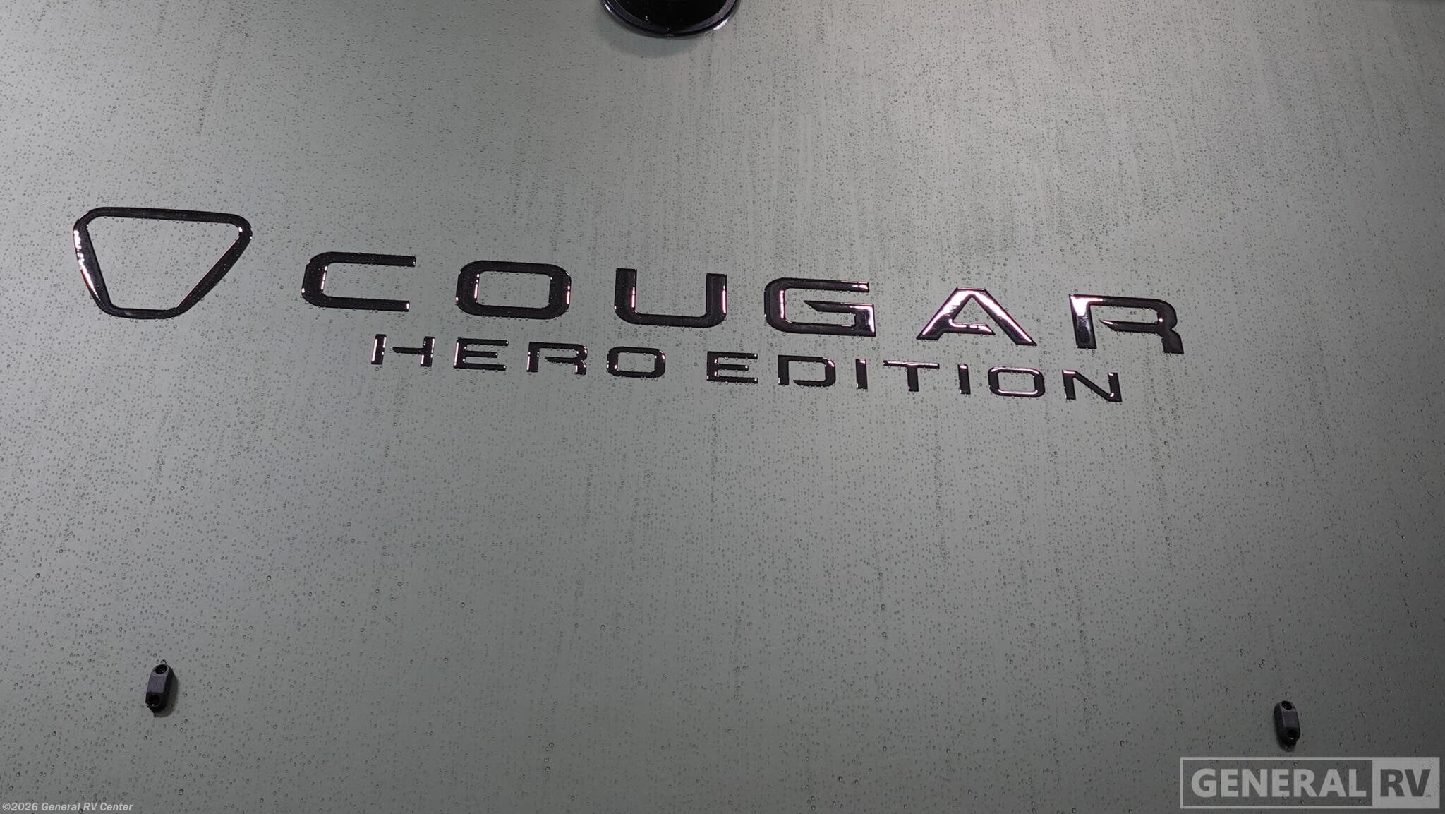 Keystone Cougar fifth wheel 320RDS highlights: Triple Slide Outs Rear Den/Living Area 16 Cu. Ft. 12V Refrigerator Front Private Bedroom Shower with a Seat 12V Ceiling Fan Time at the campground will be spent in comfort thanks to this fifth wheel that can sleep four to six people comfortably. The rear living area/den includes a huge L-shaped sofa with theater seats and a king tri-fold sofa, plus a free-standing dinette with an ottoman on one side, a fireplace, and an LED HDTV for movie nights. The chef of your group will love the additional counter space in the kitchen, along with a 21" Furrion range, plus a pantry and 16 cu. ft. 12V refrigerator. The full bath allows you to clean up each day and the front private bedroom will provide you with your own space at night. Here, you'll find a king bed slide out, plus a full height wardrobe, a second wardrobe with washer and dryer prep, and a dresser with a sliding top and hidden storage for valuables! Spend more time having fun and less time worrying about your RV with the Keystone Cougar fifth wheel! These units have all that you will need for excellent vacations. The interior comes with 5/8" one-piece DynaSpan® flooring, tall slide outs for added comfort and head room, night roller shades throughout, and residential, shaker style hardwood cabinet doors and drawers. You will also enjoy decorative crown molding, a 5,500 BTU electric fireplace with thermostat control and remote, and a Max Air exhaust fan with rain sensor. The exterior is also fully outfitted with a convenience center, friction-hinge entry door, electric four-point auto leveling system, and slam-latch baggage doors. Each model is available with the Hero Edition. By choosing this edition, you can help support our nation's heros and their families by contributing to the Wounded Warrior Project. This package features an industry exclusive full-body paint matte finish, frameless windows, a glass entry door, blackout rims, and green LED exterior accent lighting; see dealer for more details!