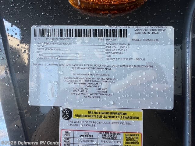 Request More Info on this 2026 Keystone Cougar 350LLK Offered for sale by Delmarva RV Center