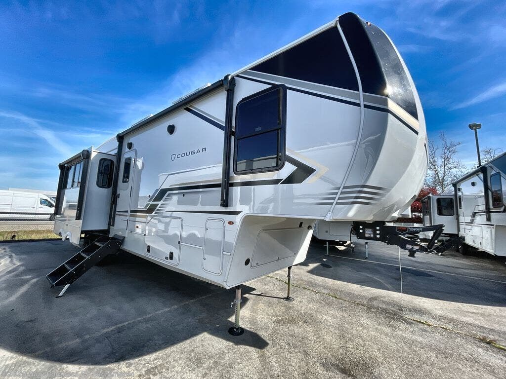 Spend more time having fun and less time worrying about your RV with the Keystone Cougar fifth wheel! These units have all that you will need for excellent vacations. The interior comes hardwood cabinet doors, solid surface kitchen countertops, an Oxygenics shower head and hose, plus a Vent-All window system. You will also appreciate the 12V charging stations throughout, the dual zone Bluetooth audio system, and the on-demand water heater for added comfort. The exterior is also fully outfitted with a convenience center, MaxTurn technology, Lippert axles with anti-lock braking system, and a Curt Road Armor shock absorbing equalizer for smooth towing. Each model is available with the optional Hero Edition. By choosing this edition, you can help support our nation's heros and their families by contributing to the Wounded Warrior Project. This optional package features an industry exclusive full-body paint matte finish, frameless windows, a glass entry door, blackout rims, and green LED exterior accent lighting; see dealer for more details!