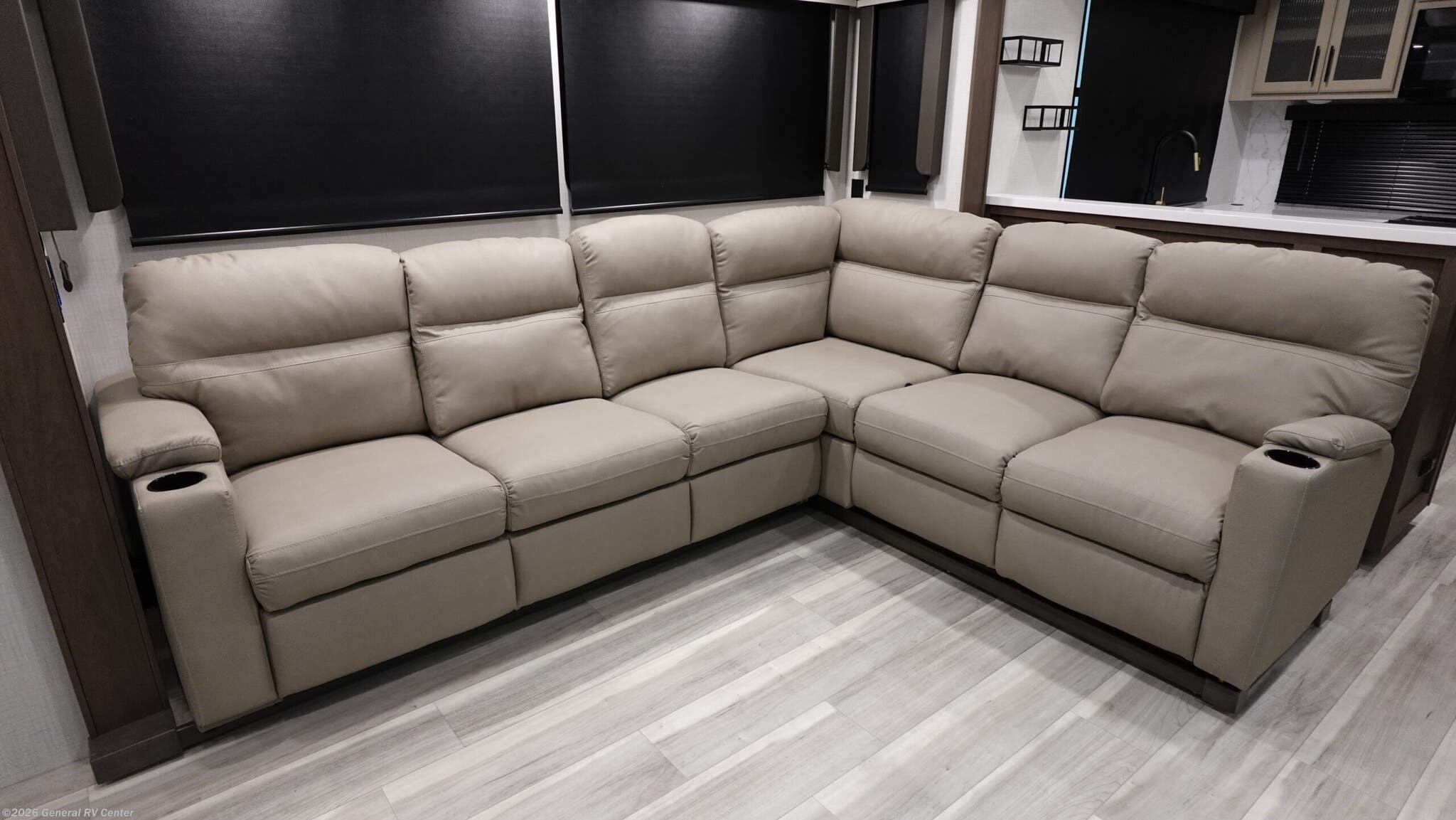 **2026 Keystone Cougar 350LLK Highlights:** - Rear Kitchen with Luxury Appliances - L-Shaped Sofa with Recliners - Private Front Bedroom - Four Slide-Outs for Extra Space - Two Power Awnings Experience the road like never before with the 2026 Keystone Cougar 350LLK! This fifth wheel combines luxury, comfort, and functionality with a rear kitchen that features solid-surface countertops, a 16?cu?ft refrigerator, and a three-burner cooktop. After a day of exploring the great outdoors, relax on the L-shaped sofa with recliners or enjoy a meal at the dinette, all within the spacious living area created by four expansive slide-outs. The private front bedroom offers a cozy queen bed and ample wardrobe storage, while the bathroom includes a shower with seat for convenience on the road. Outside, two power awnings provide shaded space for dining or entertaining, and washer/dryer prep ensures long-term comfort. Ideal for families or couples who want a fifth wheel that balances roomy interiors, modern amenities, and smart design, the 350LLK makes every adventure feel like home.