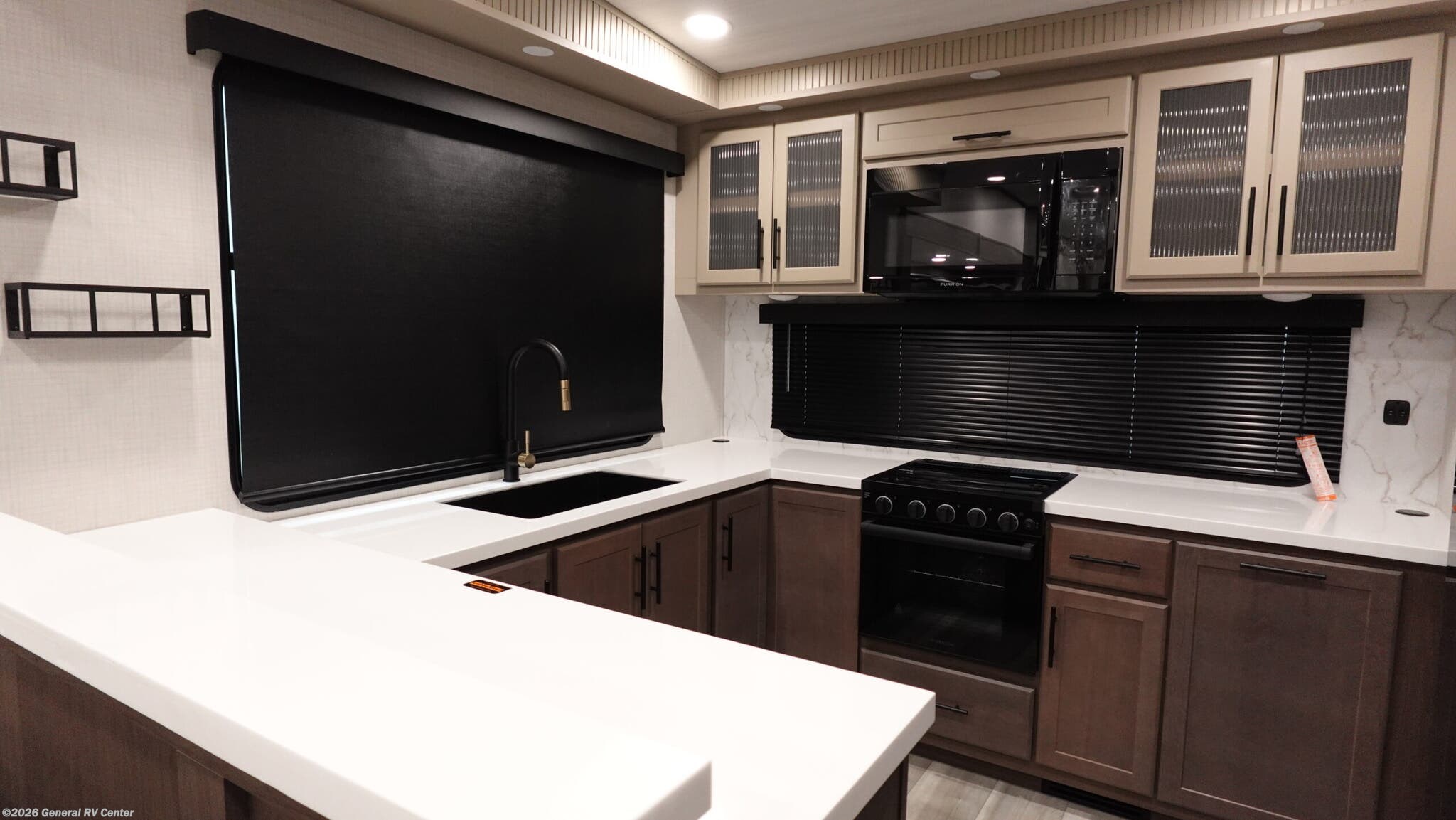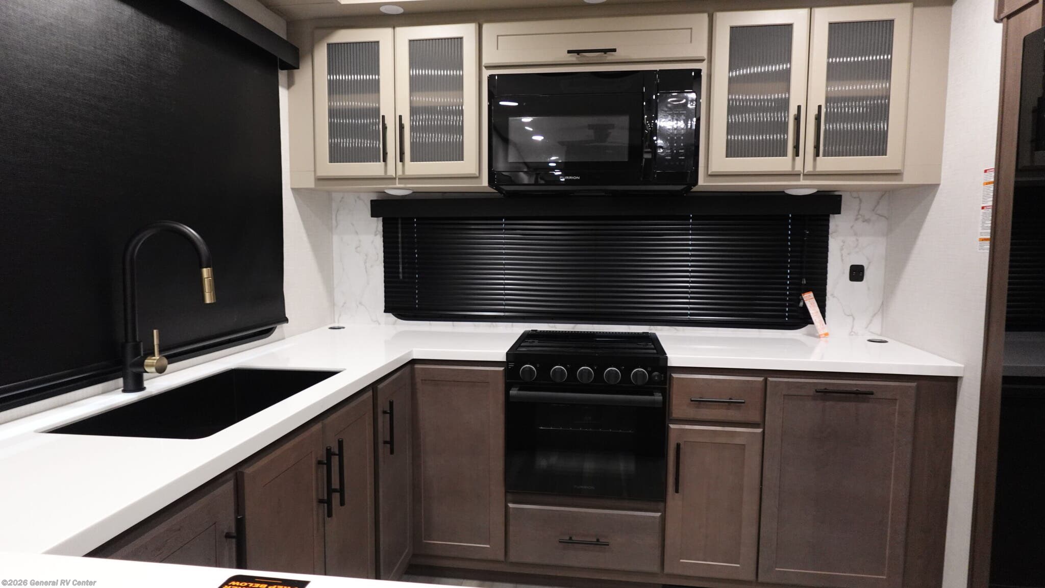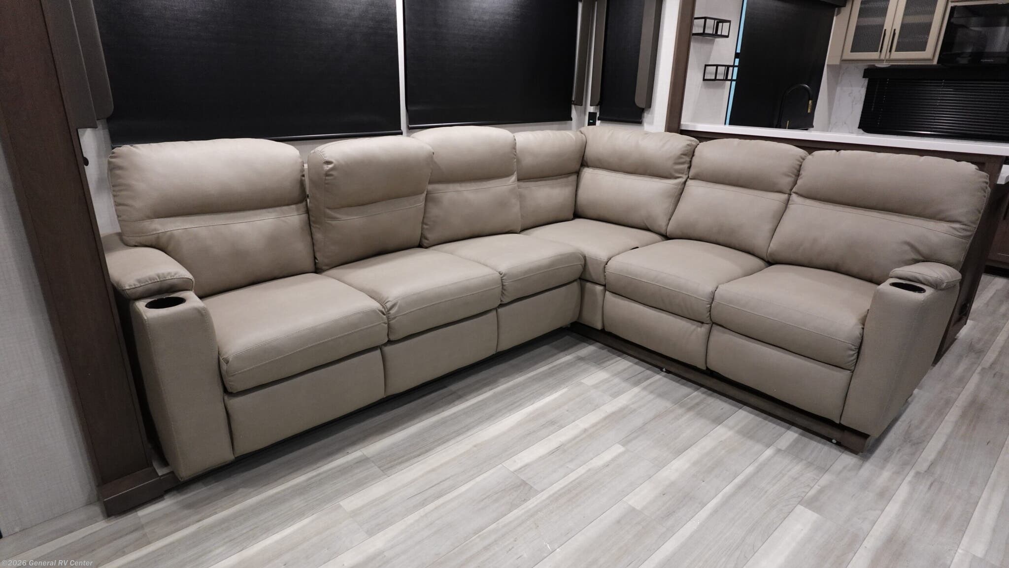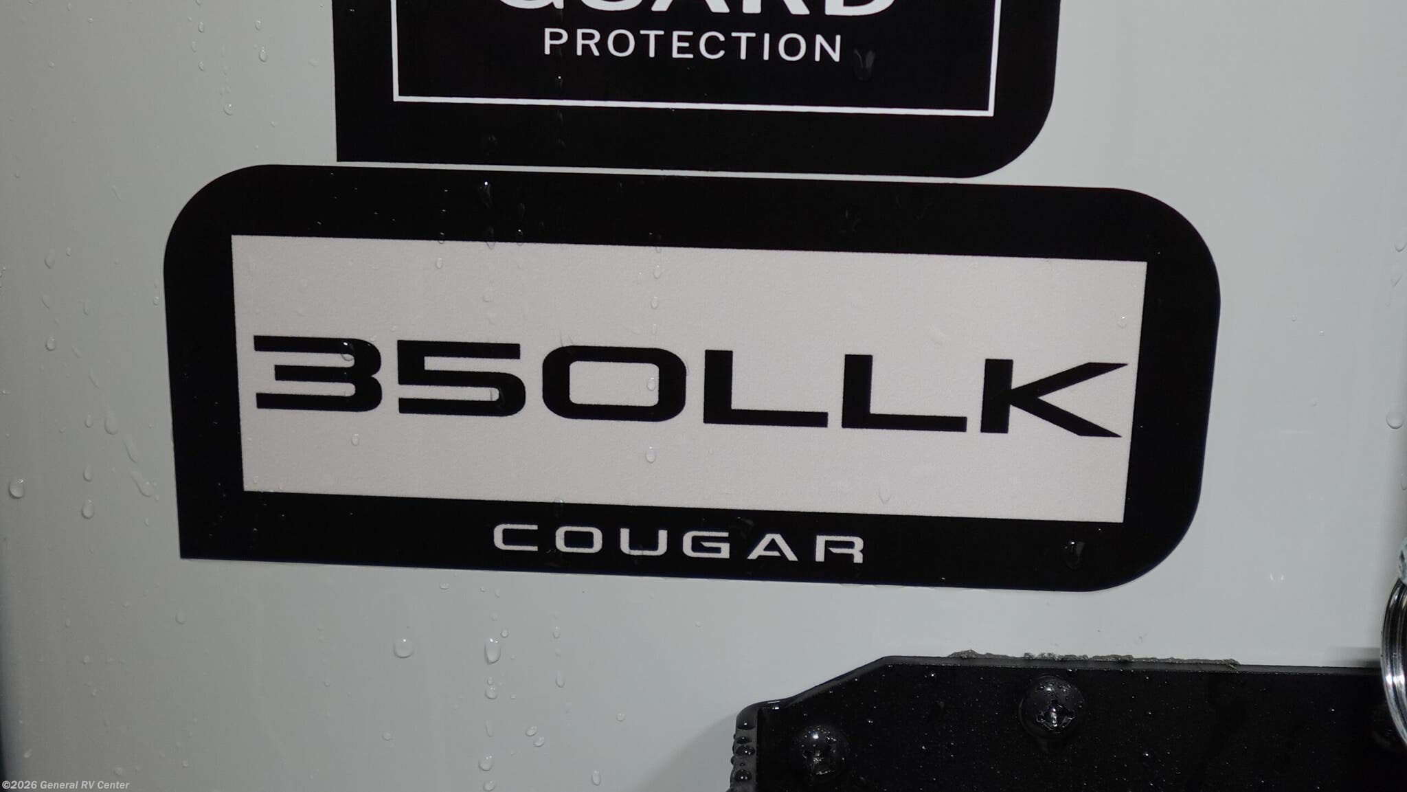 **2026 Keystone Cougar 350LLK Highlights:** - Rear Kitchen with Luxury Appliances - L-Shaped Sofa with Recliners - Private Front Bedroom - Four Slide-Outs for Extra Space - Two Power Awnings Experience the road like never before with the 2026 Keystone Cougar 350LLK! This fifth wheel combines luxury, comfort, and functionality with a rear kitchen that features solid-surface countertops, a 16?cu?ft refrigerator, and a three-burner cooktop. After a day of exploring the great outdoors, relax on the L-shaped sofa with recliners or enjoy a meal at the dinette, all within the spacious living area created by four expansive slide-outs. The private front bedroom offers a cozy queen bed and ample wardrobe storage, while the bathroom includes a shower with seat for convenience on the road. Outside, two power awnings provide shaded space for dining or entertaining, and washer/dryer prep ensures long-term comfort. Ideal for families or couples who want a fifth wheel that balances roomy interiors, modern amenities, and smart design, the 350LLK makes every adventure feel like home.