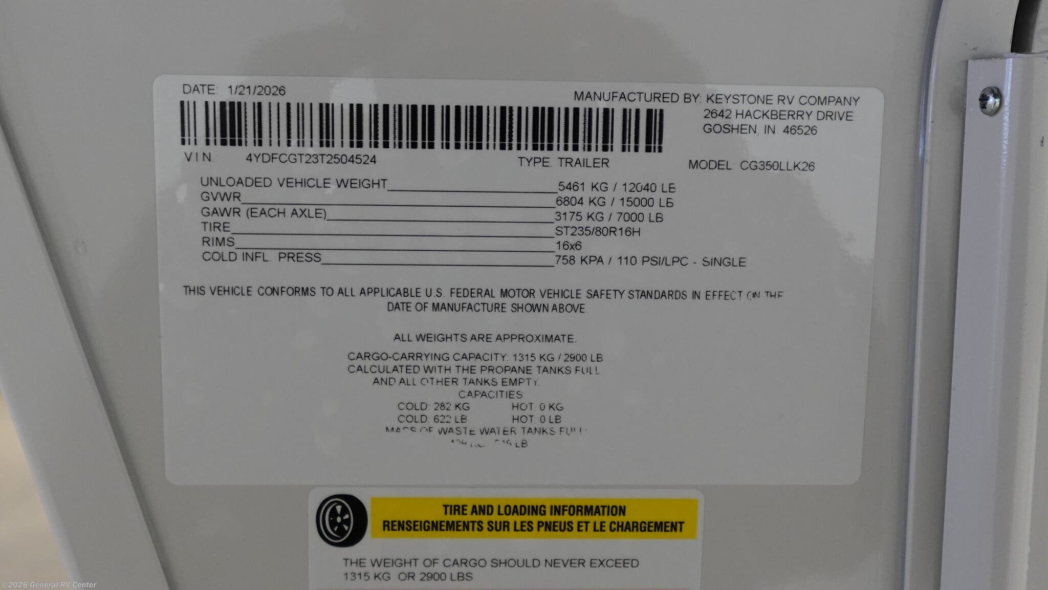 Request More Info on this 2026 Keystone Cougar 350LLK Offered for sale by General RV Center