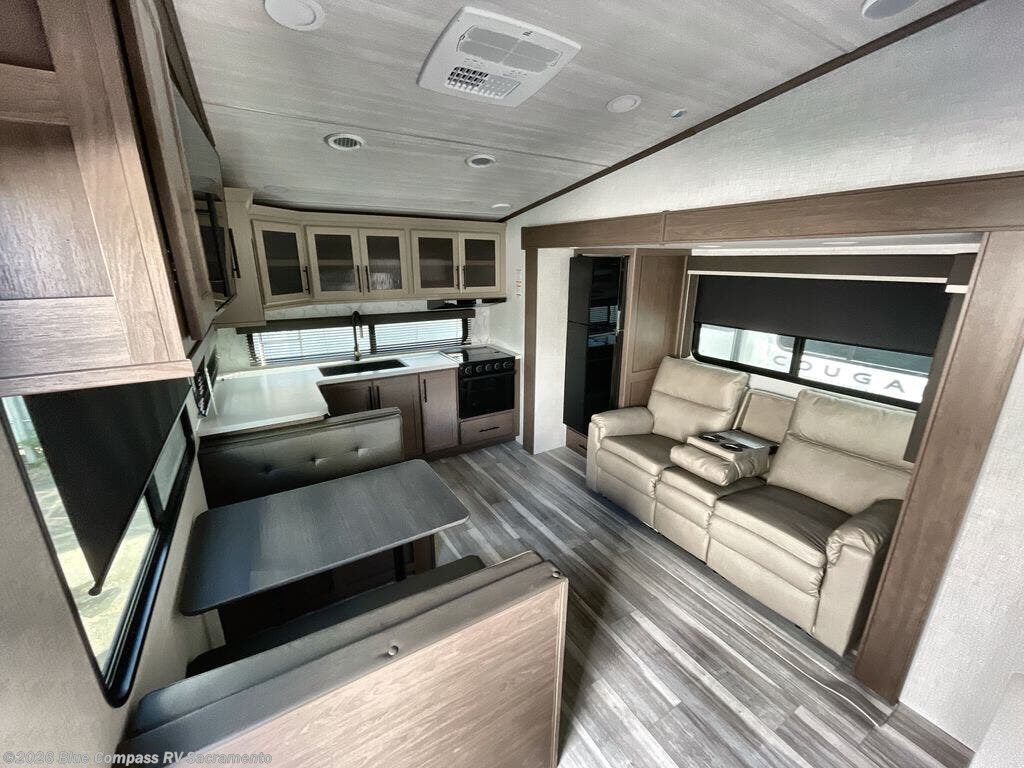 The Keystone Cougar Half-Ton fifth wheel and travel trailers are known as one of America's favorites for a reason! Some of those reasons are the exclusive features that come from Keystone, like the Winegard Air 360+ omni-directional rooftop antenna, the in-floor heating ducts, and the HyperCore composite wall construction with Vixen Fibrogloss high-gloss finish. The Cougar Half-Ton has a Climate Guard protection package with heat-deflecting white sidewalls, two roof attic vents, PEX plumbing and more to enjoy four season camping. Inside, you'll love the dimmable lighting, night roller shades throughout, shower skylight, and bedside USB outlets to keep your electronics charged.