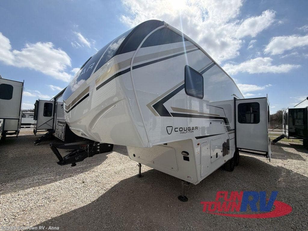 The Keystone Cougar Half-Ton fifth wheel and travel trailers are known as one of America's favorites for a reason! Some of those reasons are the exclusive features that come from Keystone, like the Winegard Air 360+ omni-directional rooftop antenna, the in-floor heating ducts, and the HyperCore composite wall construction with Vixen Fibrogloss high-gloss finish. The Cougar Half-Ton has a Climate Guard protection package with heat-deflecting white sidewalls, two roof attic vents, PEX plumbing and more to enjoy four season camping. Inside, you'll love the dimmable lighting, night roller shades throughout, shower skylight, and bedside USB outlets to keep your electronics charged.