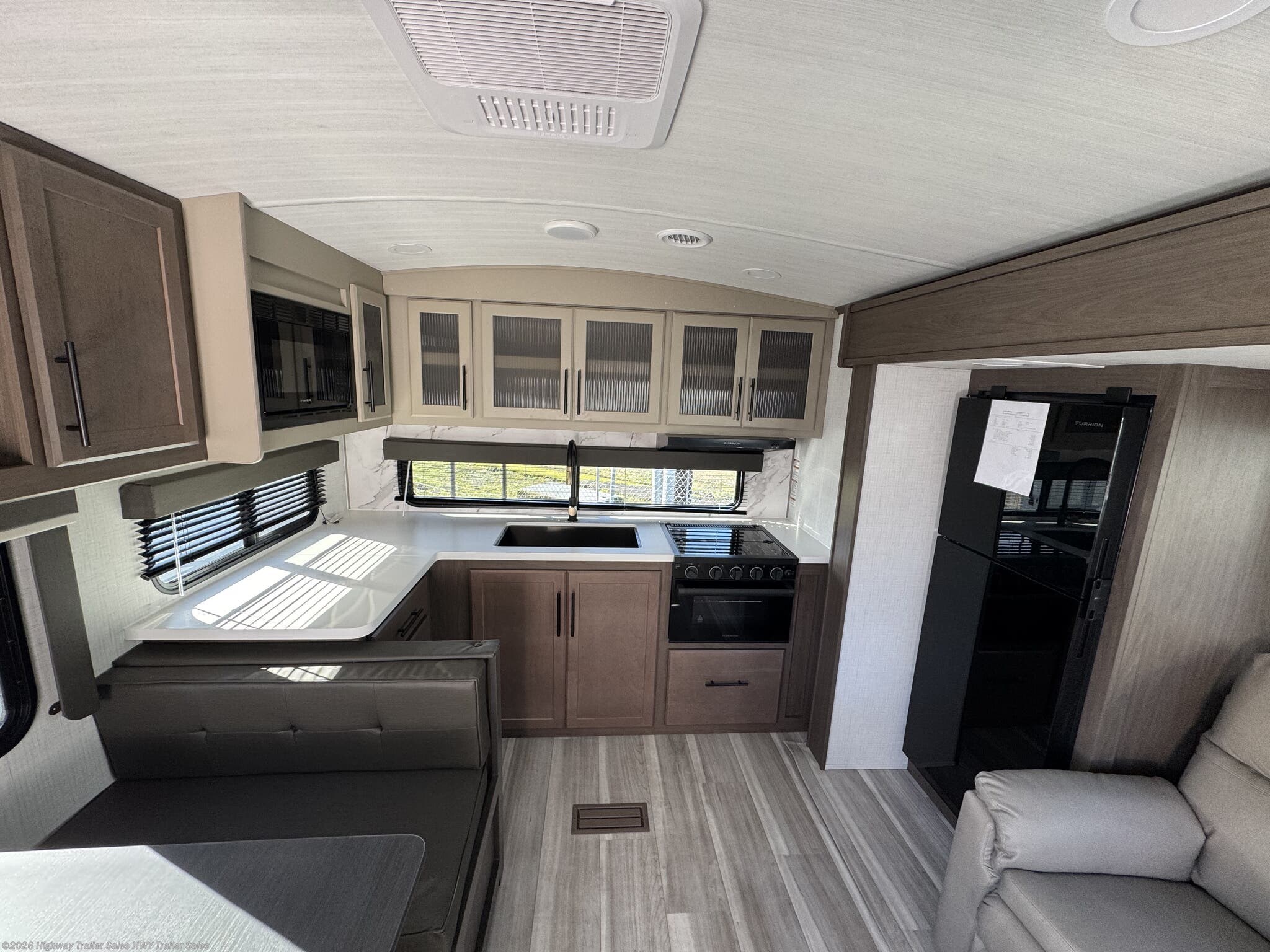 Booth Dinette, Dinette Bed, Glass Shower Door, King Size Bed, Medicine Cabinet, Overhead Cabinetry, Pantry, Rocker Recliner(s), Roof Vents, Shower, Toilet -