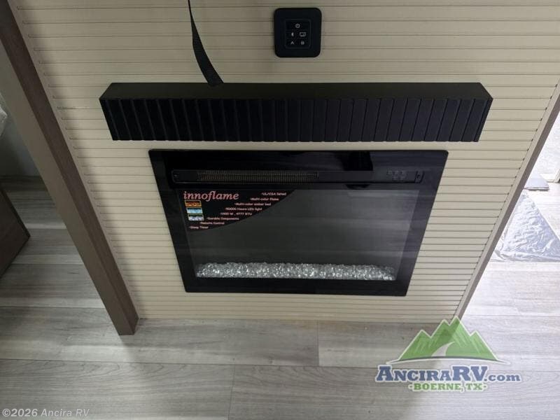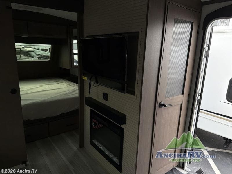 Wherever you decide to camp in this travel trailer, you'll be met with comfort and convenience! The full rear bath includes a space saving sliding door, toilet, sink, and linen closet for towels. A large slide out provides more space to move about, and here you'll enjoy the tri-fold sleeper sofa and booth dinette with storage drawers. There is also a fireplace and TV across from the furniture to enjoy movie nights! The chef of your group can make meals on the cooktop or in the microwave, and there is a pull-out countertop for extra counter space. Up front, a private bedroom includes a king bed, dual nightstands, and washer and dryer prep.