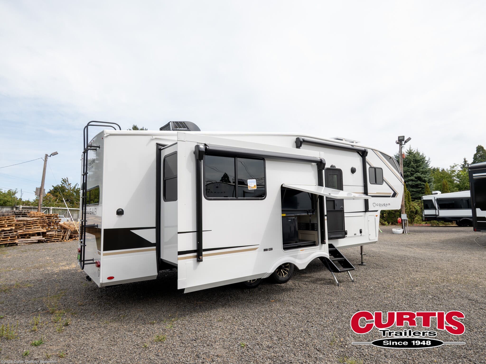 Accessories: DECOR - COUGAR - UMBER LUXE,PROFESSIONAL GRADE CAMPING PACKAGE,TOWING W/ CONFIDENCE PKG PLUS ABS,COUGAR INNOVATION PACKAGE,CLIMATE GUARD PROTECTION PACKAGE,FIREPLACE,ELECTRIC 4 POINT LEVELING SYSTEM,2nd POWER AWNING,REFRIGERATOR - 12V - 10 CF ,SOLAR FLEX DISCOVER,Free Standing Dinette w/ Ottoman,RVIA SEAL-GO CAMPING,