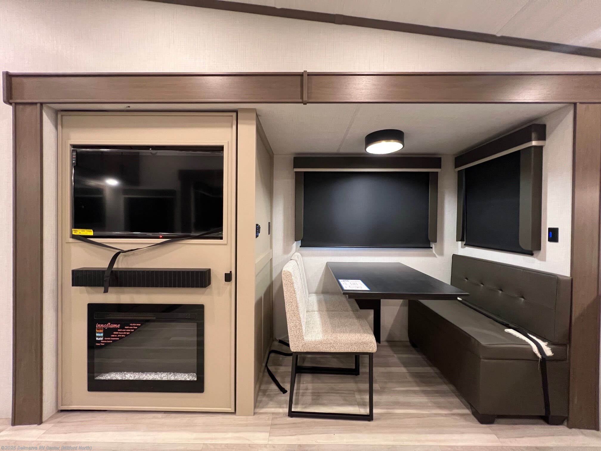 Booth Dinette, Ceiling Fan, Medicine Cabinet, Queen Bed, Rocker Recliner(s), Roof Vents, Shower, Toilet -