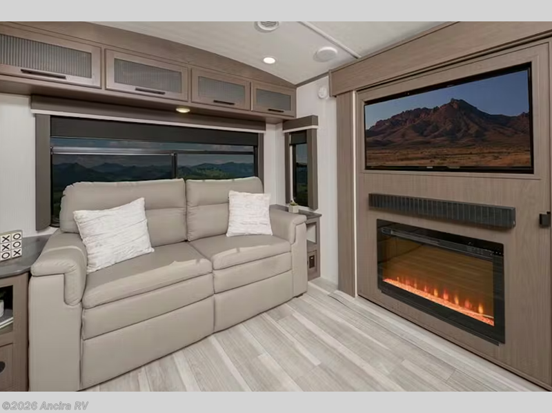Trips spent in this travel trailer are sure to bring memories! The dual opposing slides in the combined kitchen and living area provide your crew with plenty of space to relax on the theater seating, dine at the dinette table, and prep meals with the kitchen island. There is also a tri-fold sleeper sofa here for guests and a pivoting entertainment center with a hidden pantry to keep snacks stocked. And a second pantry and hutch provides even more storage! You'll love having your own private bedroom up front, complete with a king bed, dual bedside drawers and nightstands and additional storage drawers to keep your space tidy. Outside, you'll find two power awnings, a 2" accessory hitch, and a drop frame pass-thru storage for fishing poles, hiking gear, and more!