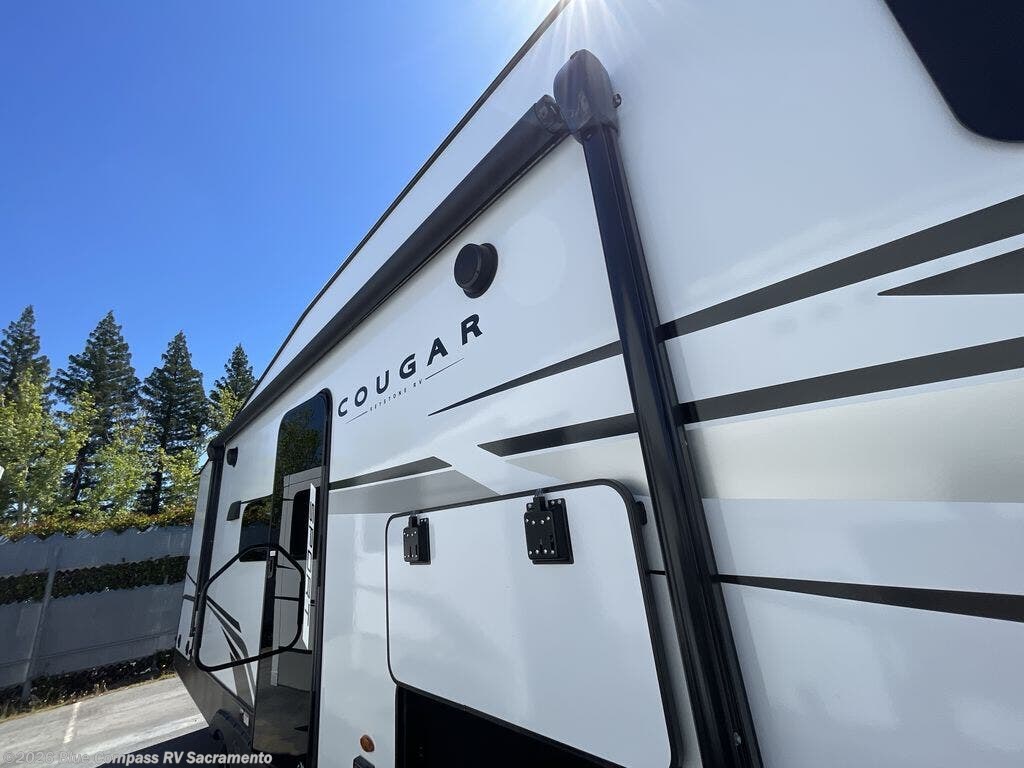 The Cougar Sport structural I-beam frame with stamped steel cross-members and outriggers, plus its AlphaPly roof membrane are what active RVers love about the construction of the Cougar line. The Cougar Sport models are no exception when it comes to a great package, as well as being smaller and lighter weight than their big brother Cougar models. A one-piece, heated and enclosed polypropylene underbelly will add protection against the elements, and the electric stabilizer jacks will provide more stability. On the inside, residential shaker style hardwood cabinet doors and decorative crown molding, plus seamless pressed countertops and an on-demand water heater will make your unit feel even more like home. You are also sure to appreciate the shiplap style decorative accent wall behind the bed, a porcelain foot flush toilet in the bathroom, plus residential kitchen hardware, and so much more.