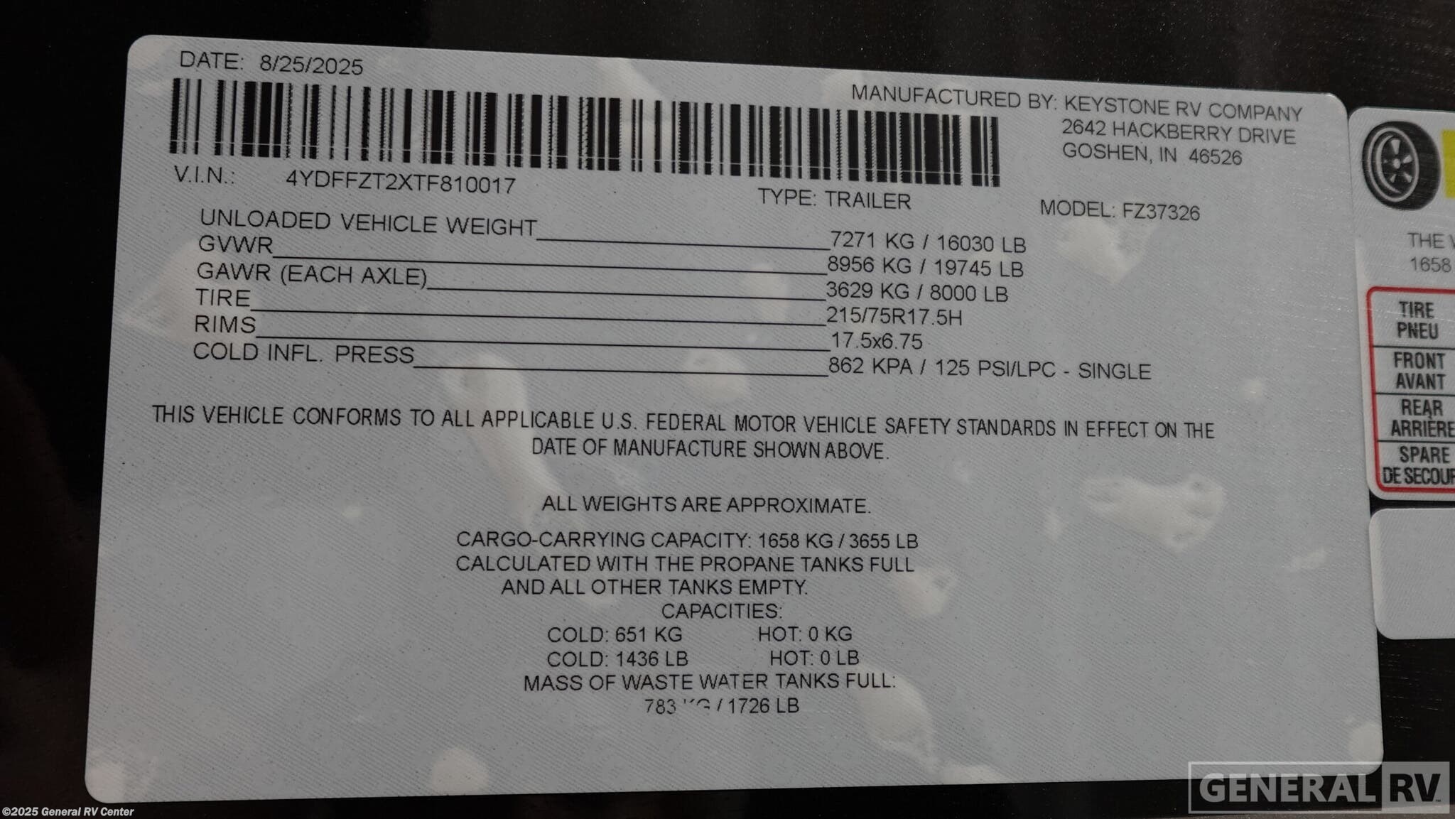 - VIN4YDFFZT2XTF810017