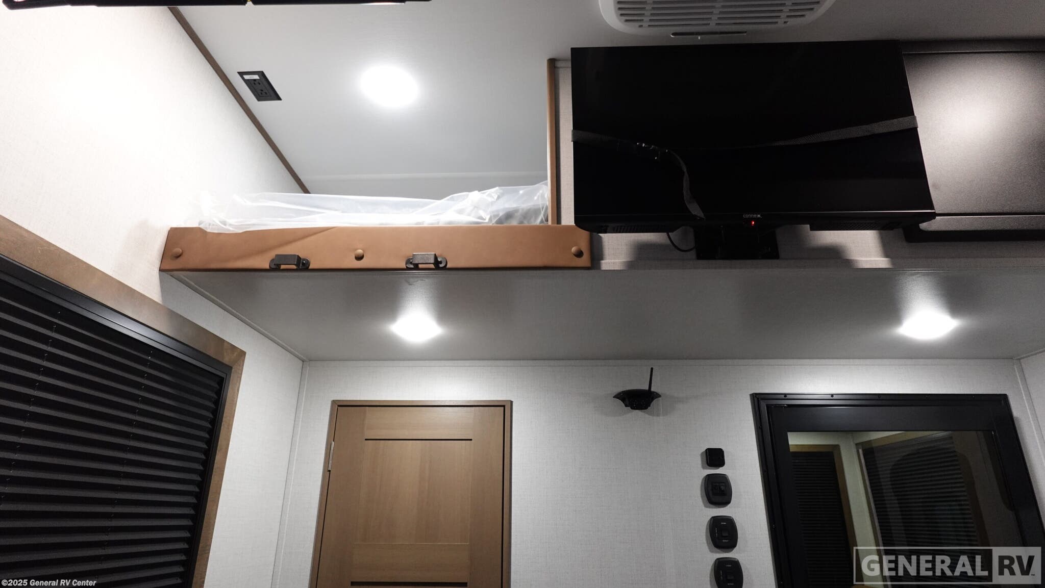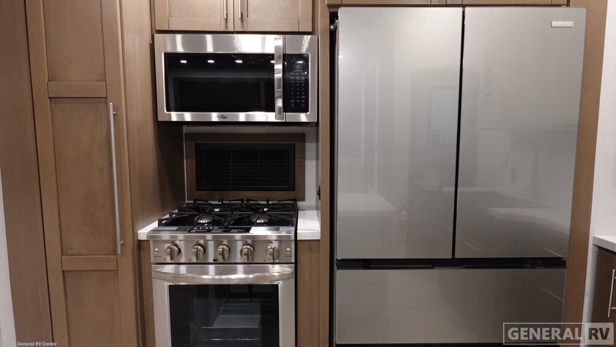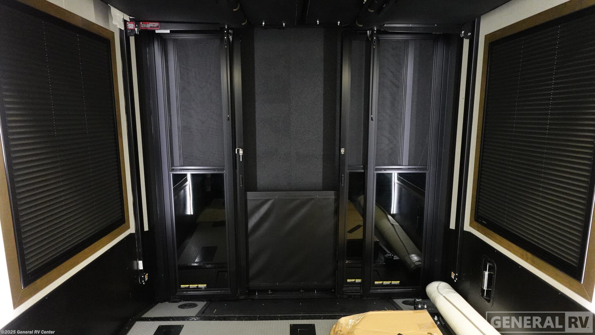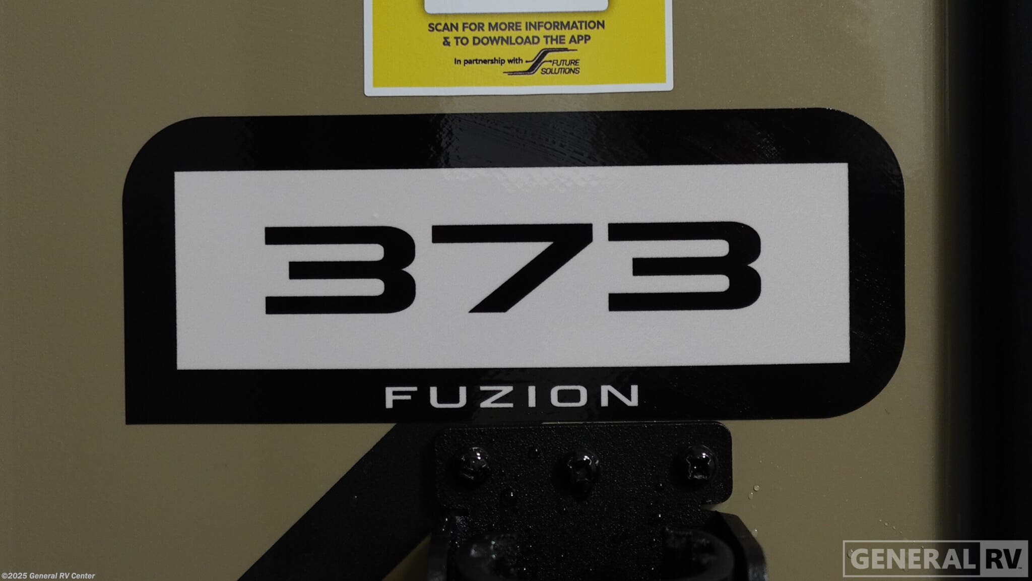 Experience the ultimate in luxury and adventure with the 2026 Keystone Fuzion 373. This RV is designed for those who crave both comfort and excitement on the road. With its spacious 39.5-foot length, this model offers a versatile living space that accommodates up to seven guests. The master suite features a plush king bed, while the garage area transforms into a cozy sleeping space with a queen bed. The convertible seating adds even more sleeping options, perfect for family and friends. The Fuzion 373 boasts a center kitchen equipped for culinary delights, featuring a four-burner cooktop and convection cooking. Enjoy meals at the stylish table with stools, and keep your ingredients fresh in the full-size electric refrigerator. The center living area is ideal for relaxation, enhanced by a 50" outdoor TV for entertainment under the stars. With three powered retractable awnings, you can create a perfect outdoor oasis. The RV also includes washer/dryer prep for added convenience during extended trips. Designed with practicality in mind, this RV offers ample storage, a residential shower, and robust tank capacities for fresh, gray, and black water. Whether you're parked at a scenic campsite or exploring off the beaten path, the Keystone Fuzion 373 ensures you travel in style and comfort. For more details or to see this model in person, visit your nearest General RV Dealership.