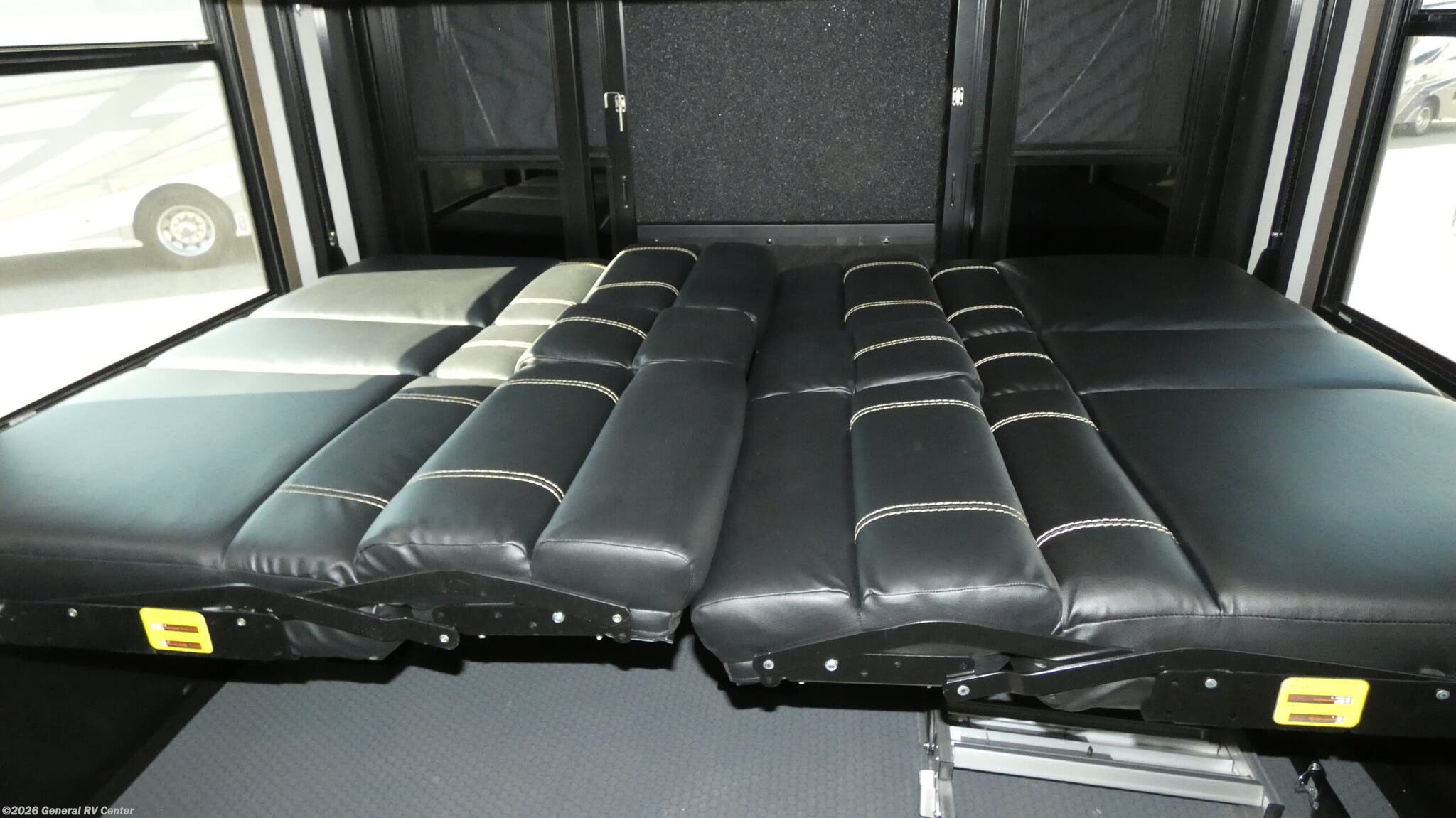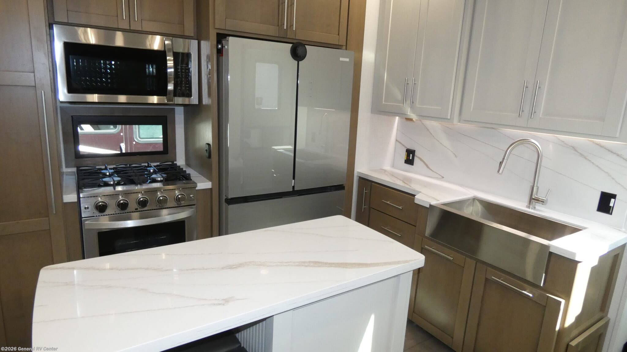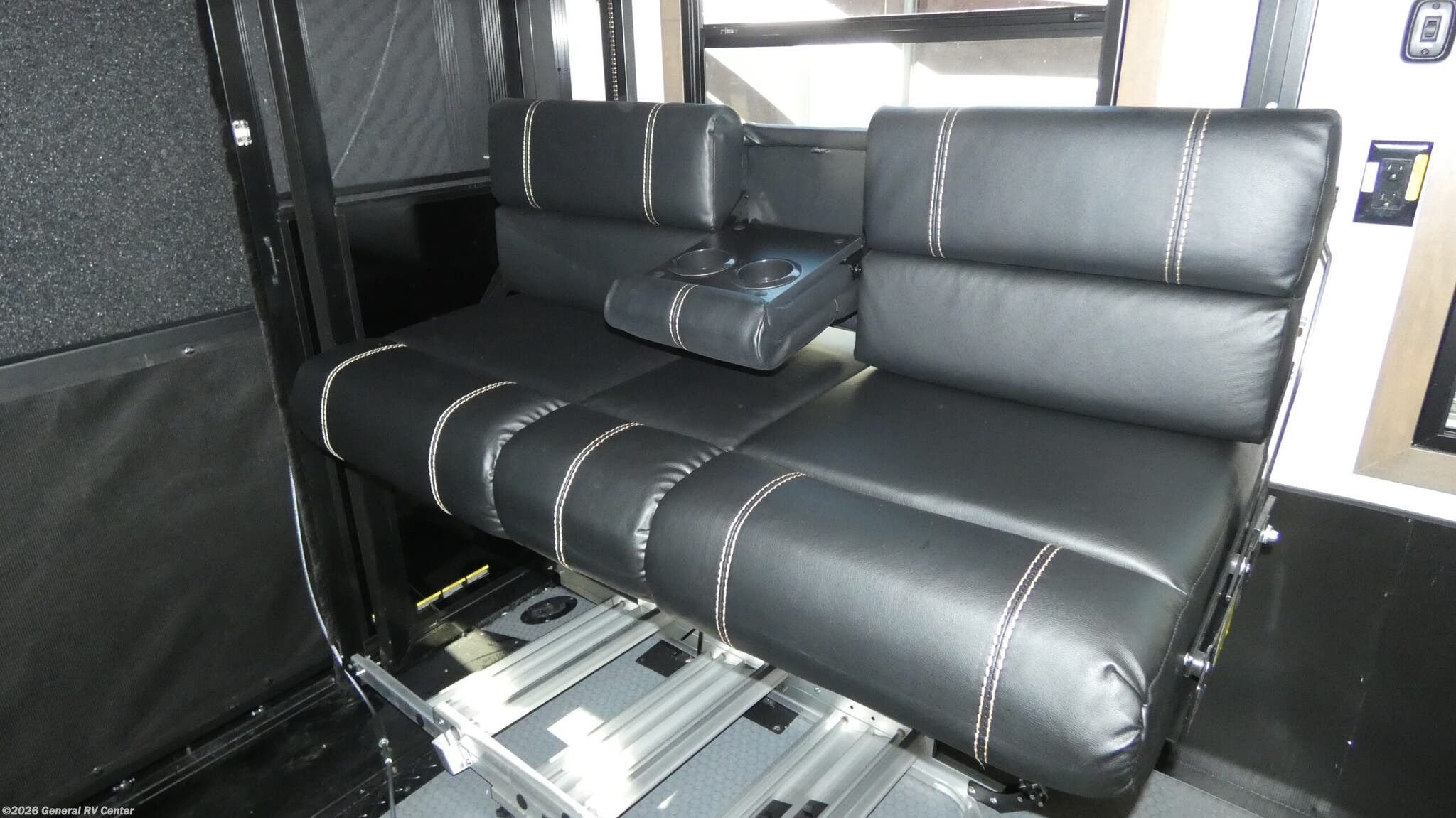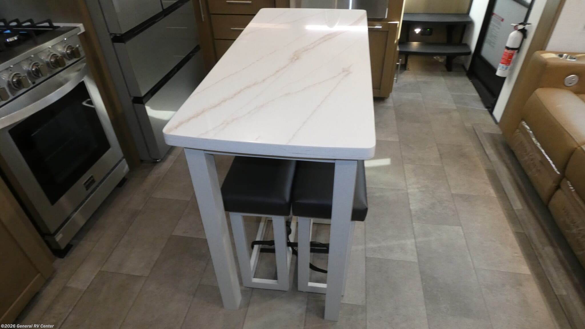 Experience the ultimate in luxury and adventure with the 2026 Keystone Fuzion 373. This RV is designed for those who crave both comfort and excitement on the road. With its spacious 39.5-foot length, this model offers a versatile living space that accommodates up to seven guests. The master suite features a plush king bed, while the garage area transforms into a cozy sleeping space with a queen bed. The convertible seating adds even more sleeping options, perfect for family and friends. The Fuzion 373 boasts a center kitchen equipped for culinary delights, featuring a four-burner cooktop and convection cooking. Enjoy meals at the stylish table with stools, and keep your ingredients fresh in the full-size electric refrigerator. The center living area is ideal for relaxation, enhanced by a 50" outdoor TV for entertainment under the stars. With three powered retractable awnings, you can create a perfect outdoor oasis. The RV also includes washer/dryer prep for added convenience during extended trips. Designed with practicality in mind, this RV offers ample storage, a residential shower, and robust tank capacities for fresh, gray, and black water. Whether you're parked at a scenic campsite or exploring off the beaten path, the Keystone Fuzion 373 ensures you travel in style and comfort. For more details or to see this model in person, visit your nearest General RV Dealership.