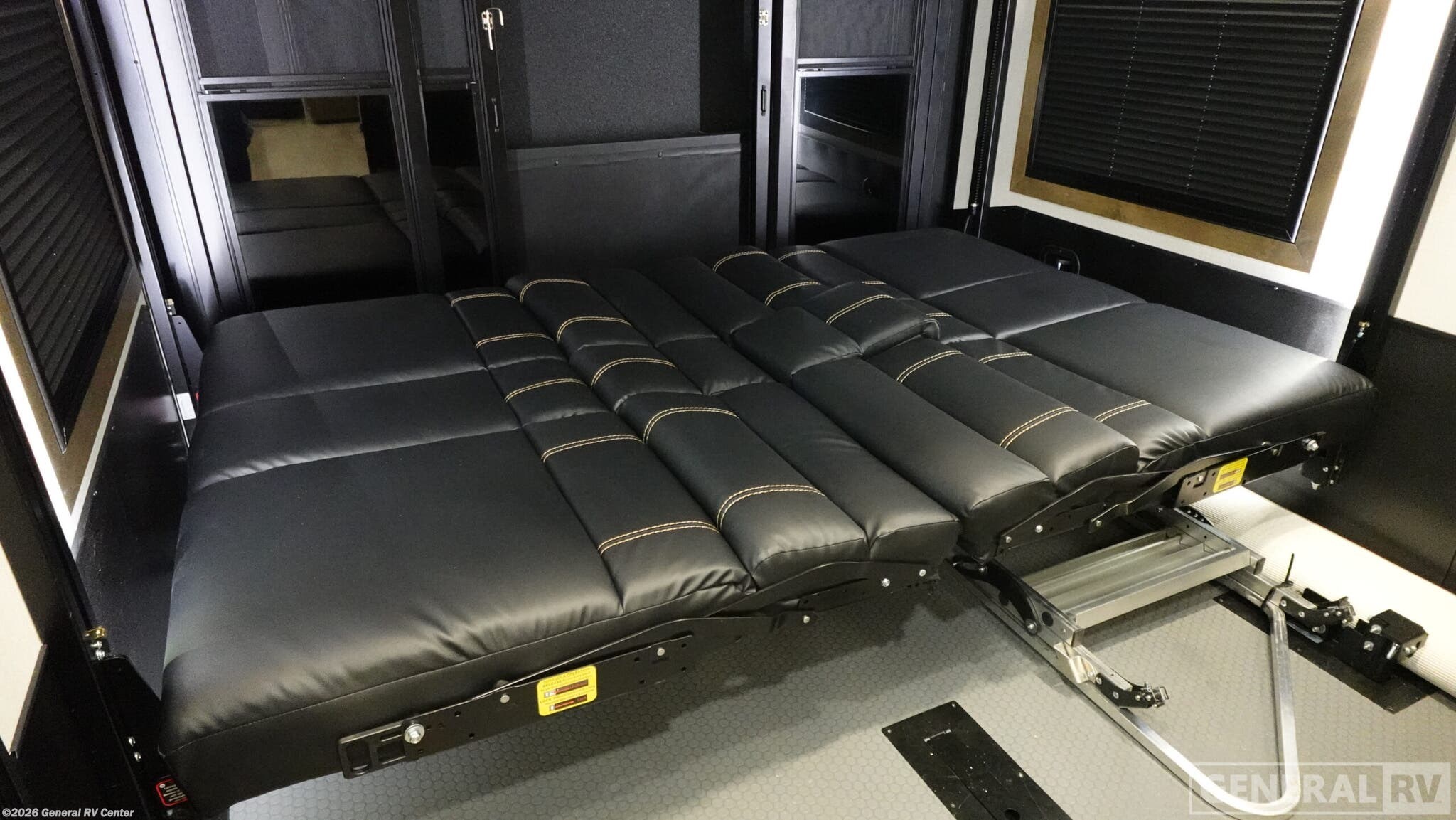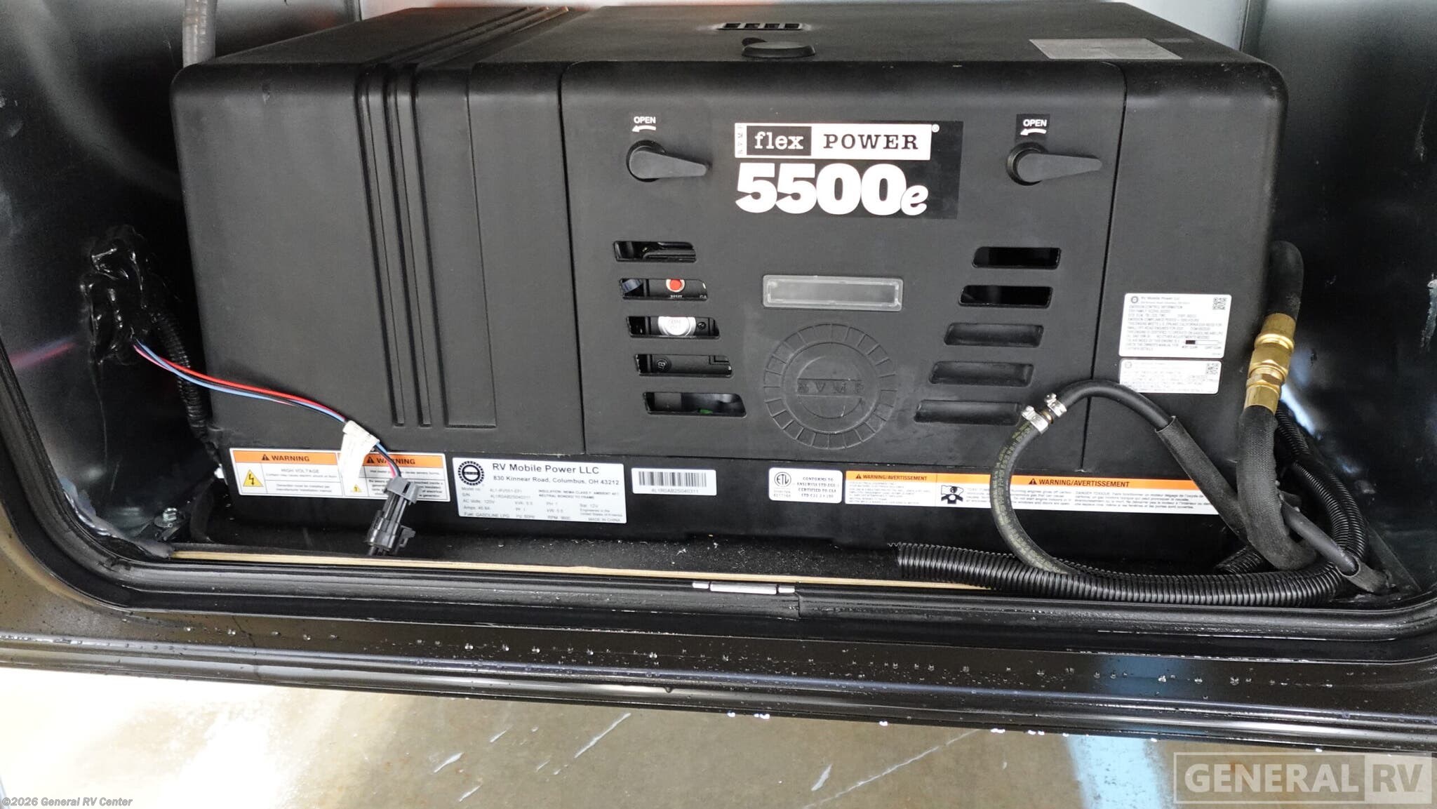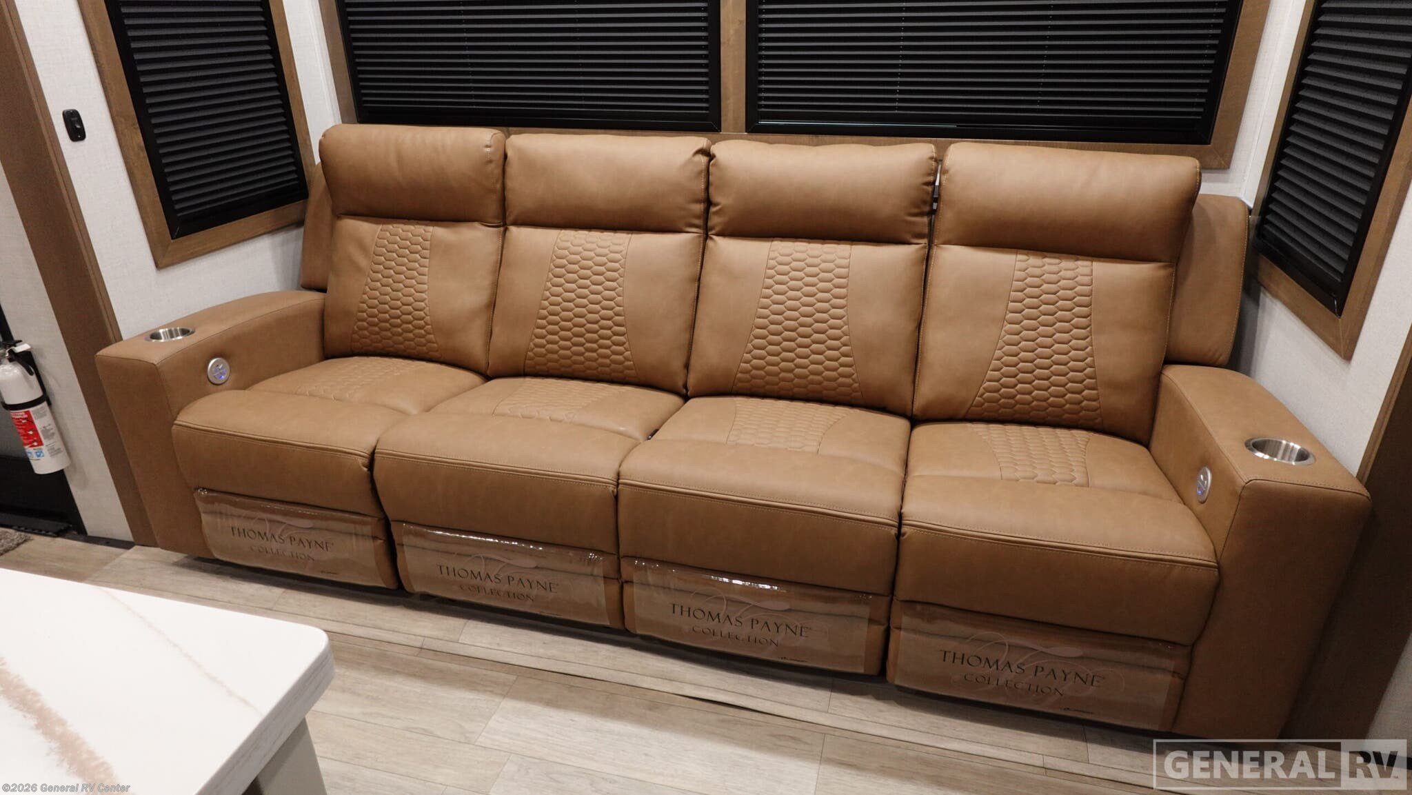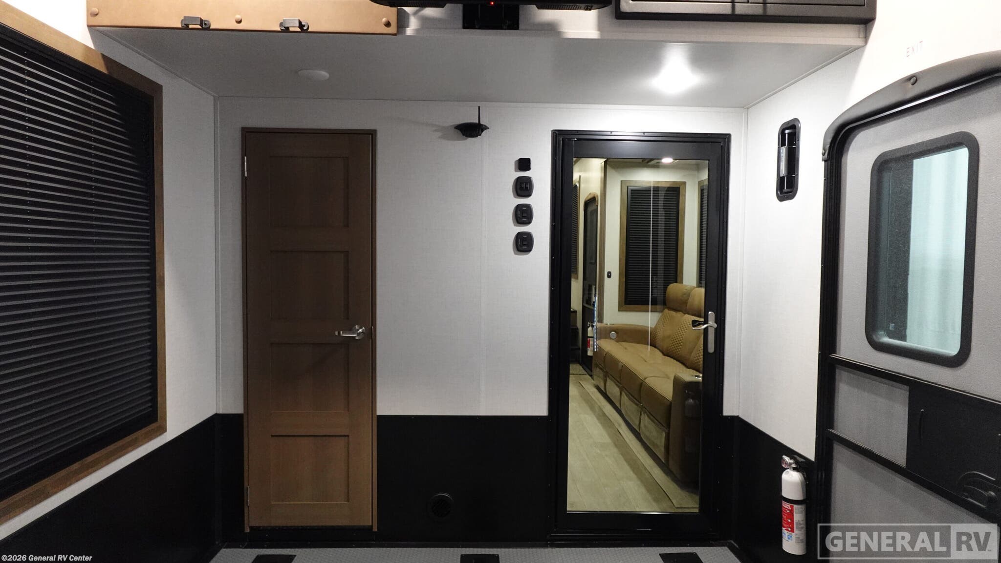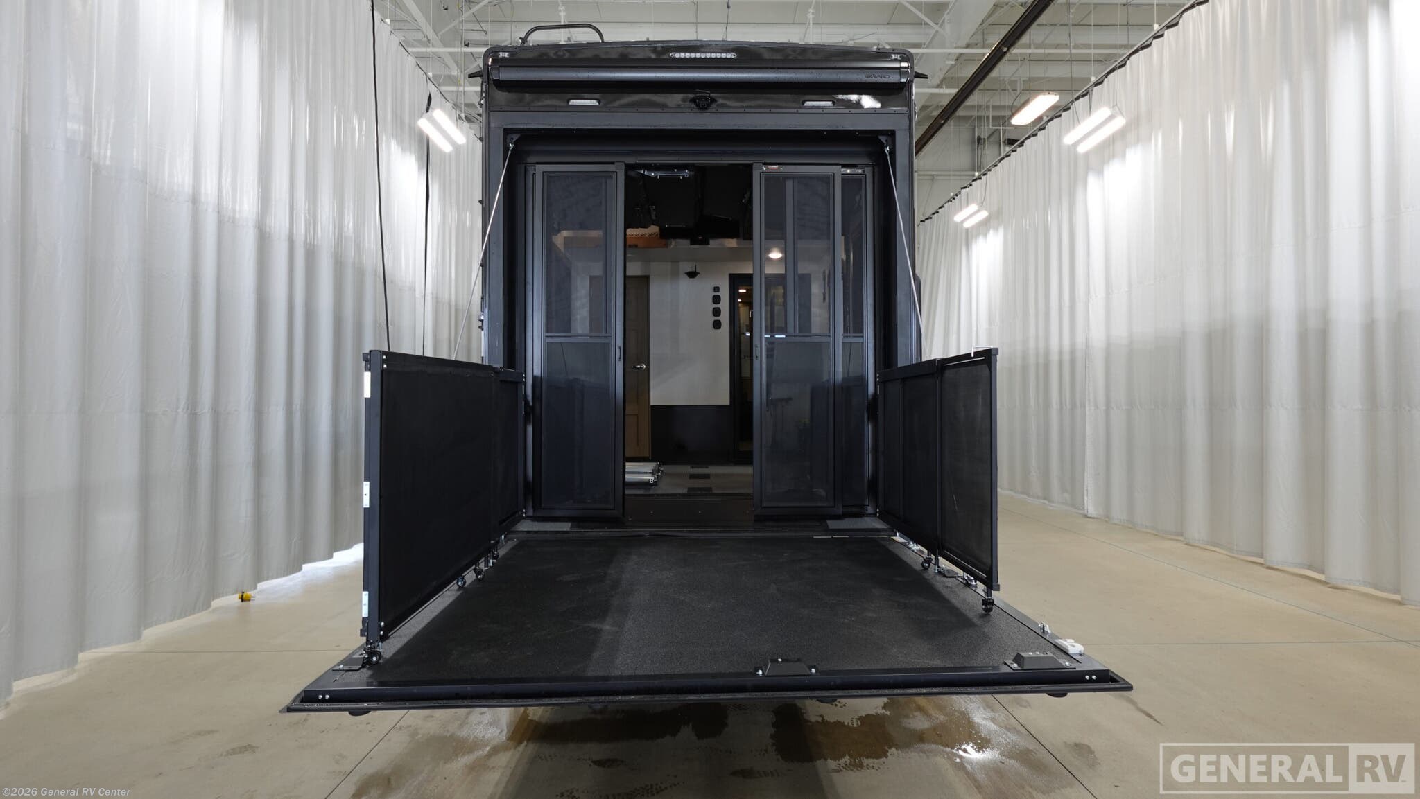 Experience the ultimate in luxury and adventure with the 2026 Keystone Fuzion 373. This RV is designed for those who crave both comfort and excitement on the road. With its spacious 39.5-foot length, this model offers a versatile living space that accommodates up to seven guests. The master suite features a plush king bed, while the garage area transforms into a cozy sleeping space with a queen bed. The convertible seating adds even more sleeping options, perfect for family and friends. The Fuzion 373 boasts a center kitchen equipped for culinary delights, featuring a four-burner cooktop and convection cooking. Enjoy meals at the stylish table with stools, and keep your ingredients fresh in the full-size electric refrigerator. The center living area is ideal for relaxation, enhanced by a 50" outdoor TV for entertainment under the stars. With three powered retractable awnings, you can create a perfect outdoor oasis. The RV also includes washer/dryer prep for added convenience during extended trips. Designed with practicality in mind, this RV offers ample storage, a residential shower, and robust tank capacities for fresh, gray, and black water. Whether you're parked at a scenic campsite or exploring off the beaten path, the Keystone Fuzion 373 ensures you travel in style and comfort. For more details or to see this model in person, visit your nearest General RV Dealership.
