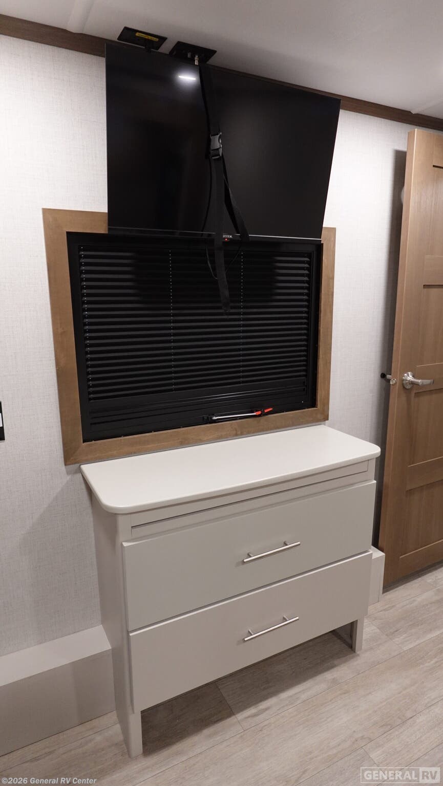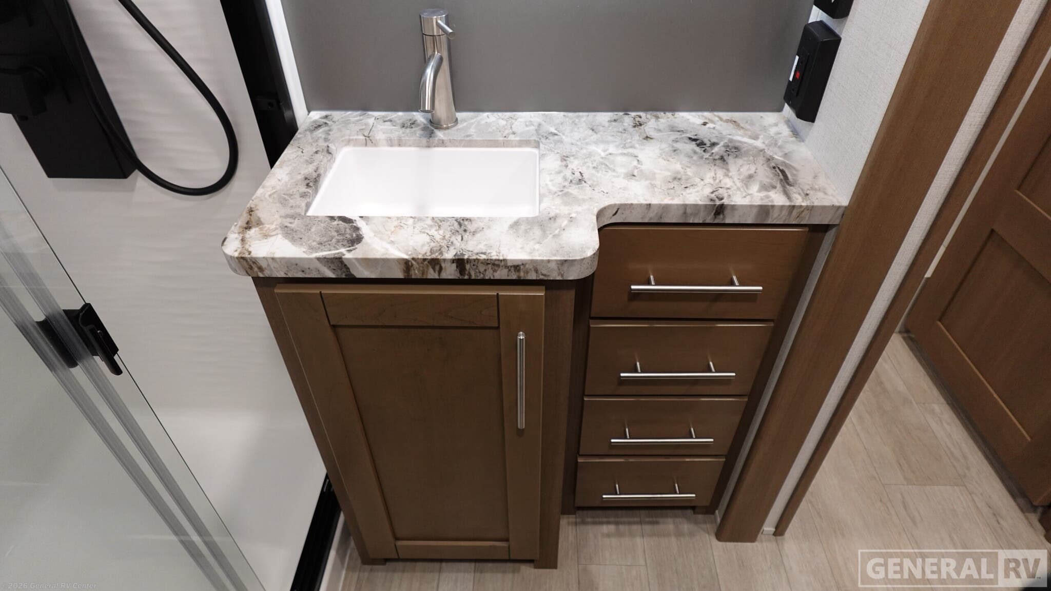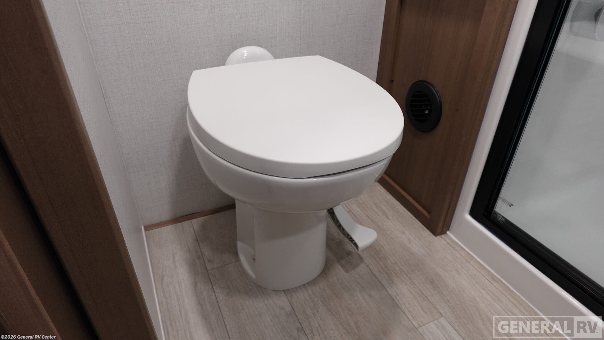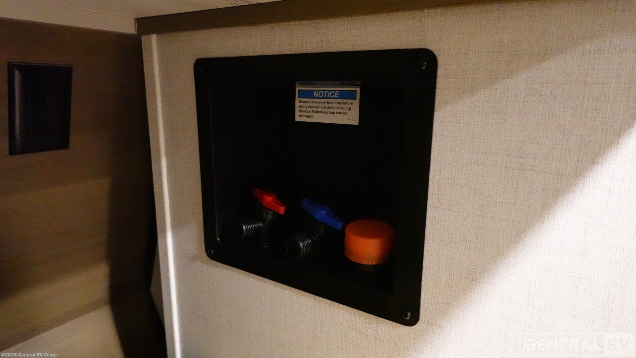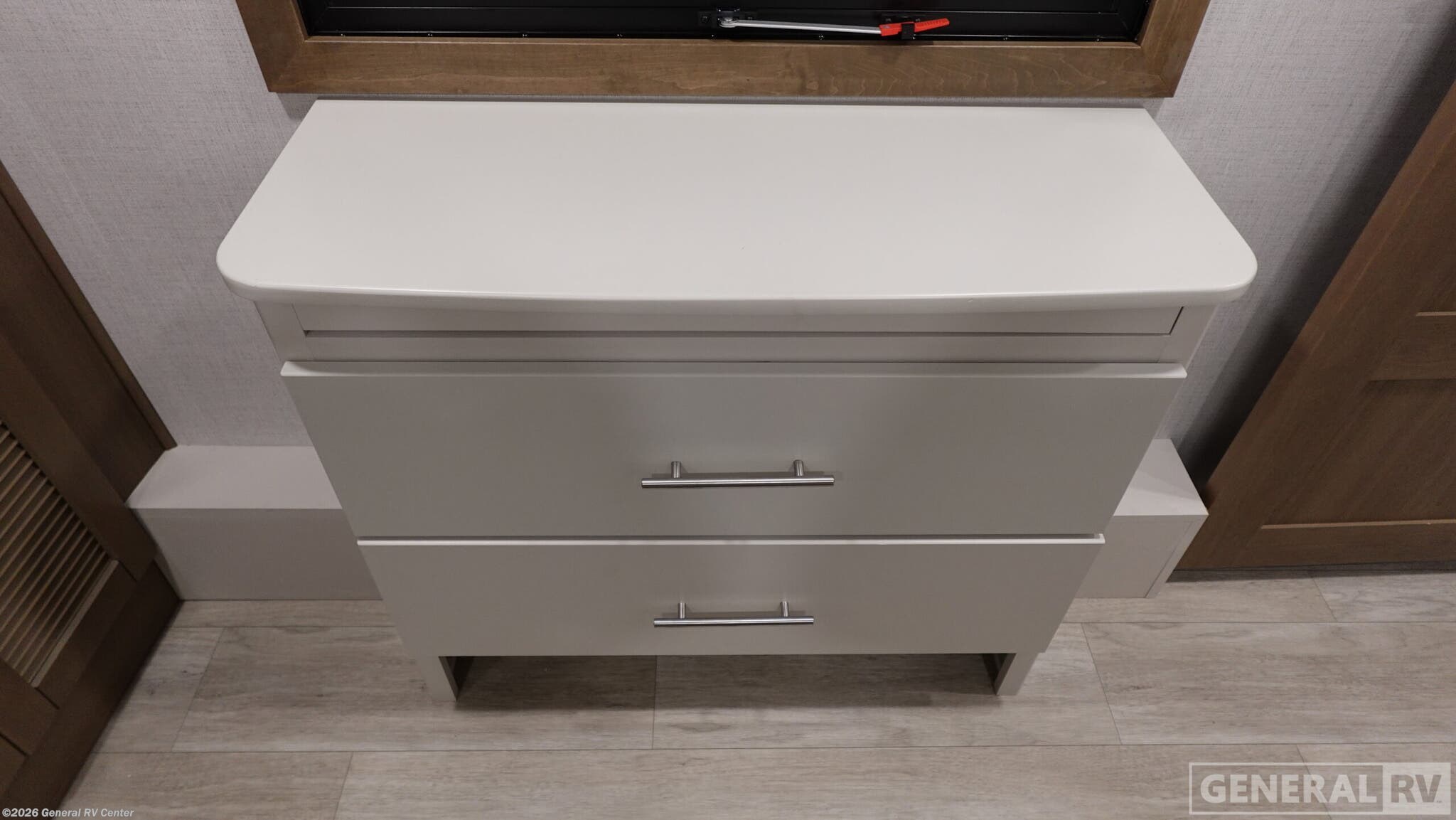 Experience the ultimate in luxury and adventure with the 2026 Keystone Fuzion 373. This RV is designed for those who crave both comfort and excitement on the road. With its spacious 39.5-foot length, this model offers a versatile living space that accommodates up to seven guests. The master suite features a plush king bed, while the garage area transforms into a cozy sleeping space with a queen bed. The convertible seating adds even more sleeping options, perfect for family and friends. The Fuzion 373 boasts a center kitchen equipped for culinary delights, featuring a four-burner cooktop and convection cooking. Enjoy meals at the stylish table with stools, and keep your ingredients fresh in the full-size electric refrigerator. The center living area is ideal for relaxation, enhanced by a 50" outdoor TV for entertainment under the stars. With three powered retractable awnings, you can create a perfect outdoor oasis. The RV also includes washer/dryer prep for added convenience during extended trips. Designed with practicality in mind, this RV offers ample storage, a residential shower, and robust tank capacities for fresh, gray, and black water. Whether you're parked at a scenic campsite or exploring off the beaten path, the Keystone Fuzion 373 ensures you travel in style and comfort. For more details or to see this model in person, visit your nearest General RV Dealership.