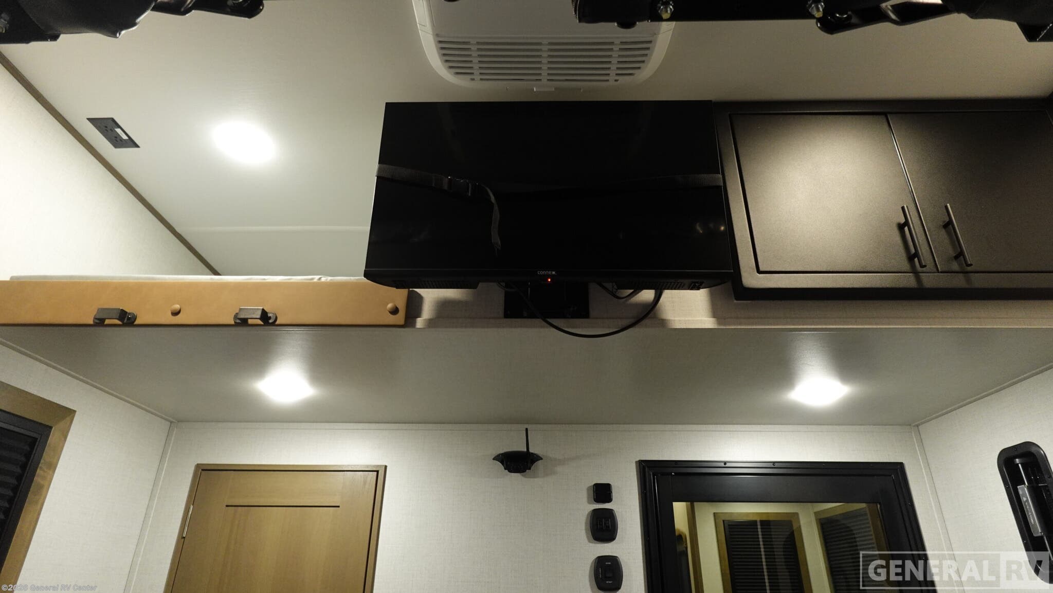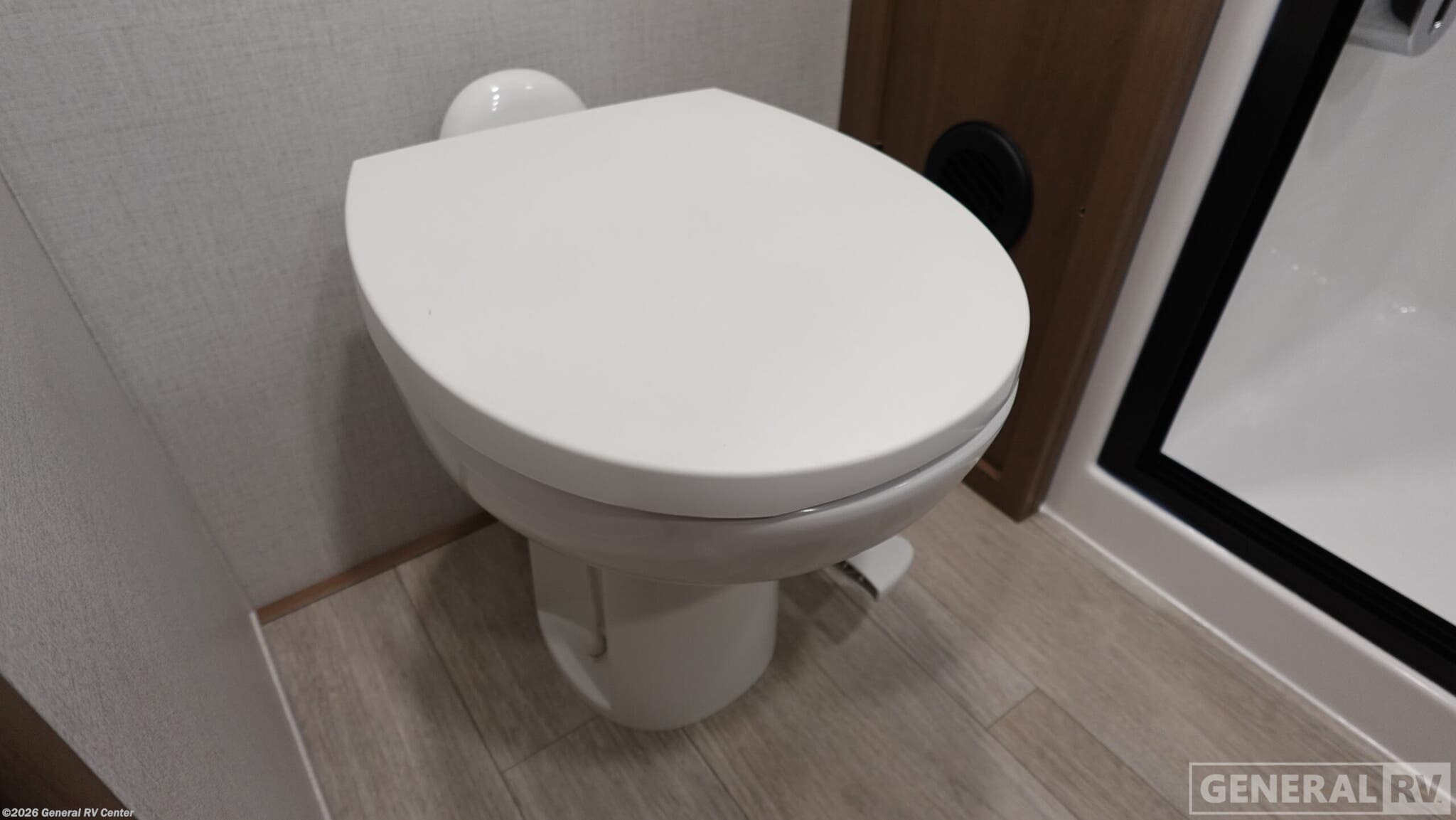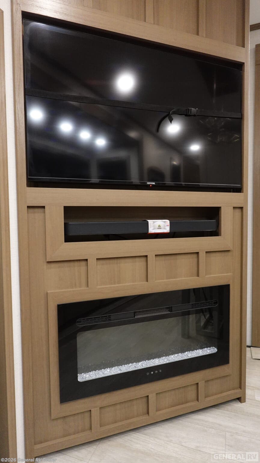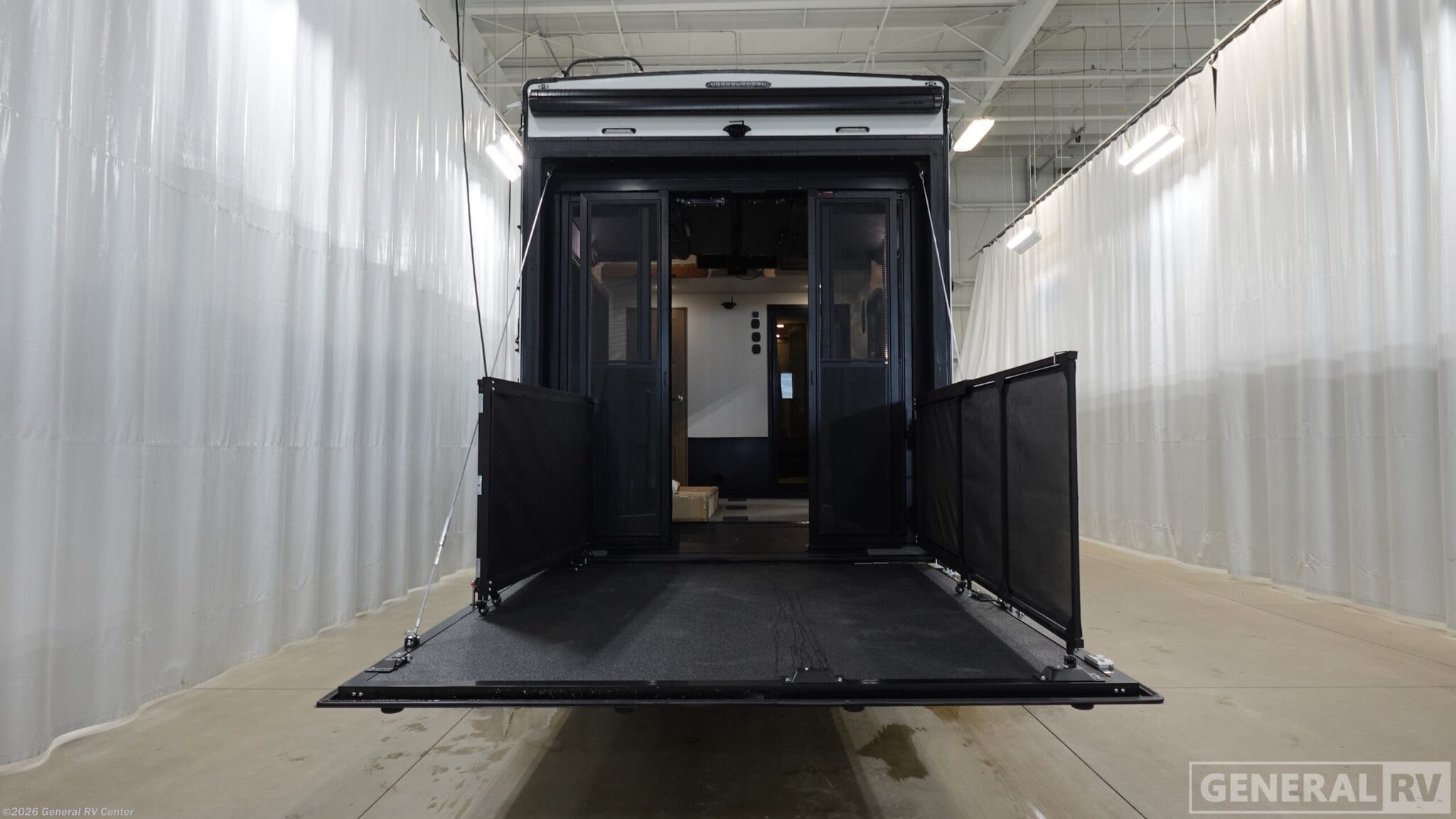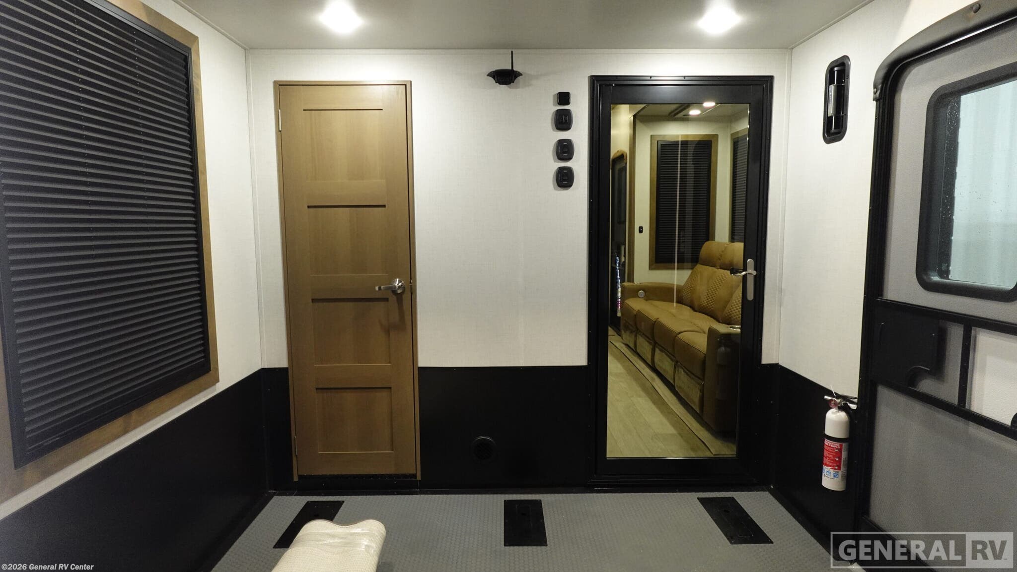 Experience the ultimate in luxury and adventure with the 2026 Keystone Fuzion 373. This RV is designed for those who crave both comfort and excitement on the road. With its spacious 39.5-foot length, this model offers a versatile living space that accommodates up to seven guests. The master suite features a plush king bed, while the garage area transforms into a cozy sleeping space with a queen bed. The convertible seating adds even more sleeping options, perfect for family and friends. The Fuzion 373 boasts a center kitchen equipped for culinary delights, featuring a four-burner cooktop and convection cooking. Enjoy meals at the stylish table with stools, and keep your ingredients fresh in the full-size electric refrigerator. The center living area is ideal for relaxation, enhanced by a 50" outdoor TV for entertainment under the stars. With three powered retractable awnings, you can create a perfect outdoor oasis. The RV also includes washer/dryer prep for added convenience during extended trips. Designed with practicality in mind, this RV offers ample storage, a residential shower, and robust tank capacities for fresh, gray, and black water. Whether you're parked at a scenic campsite or exploring off the beaten path, the Keystone Fuzion 373 ensures you travel in style and comfort. For more details or to see this model in person, visit your nearest General RV Dealership.