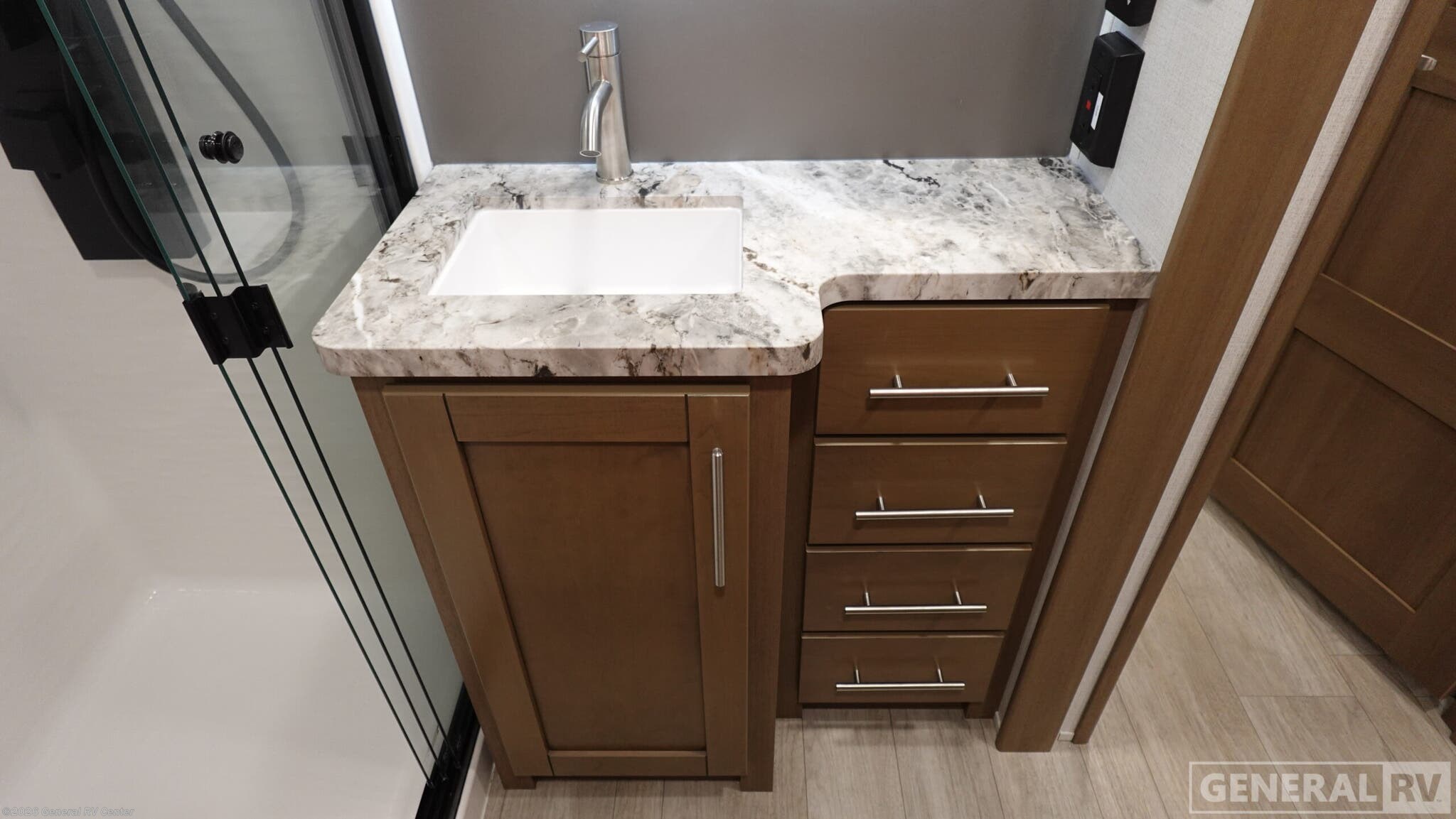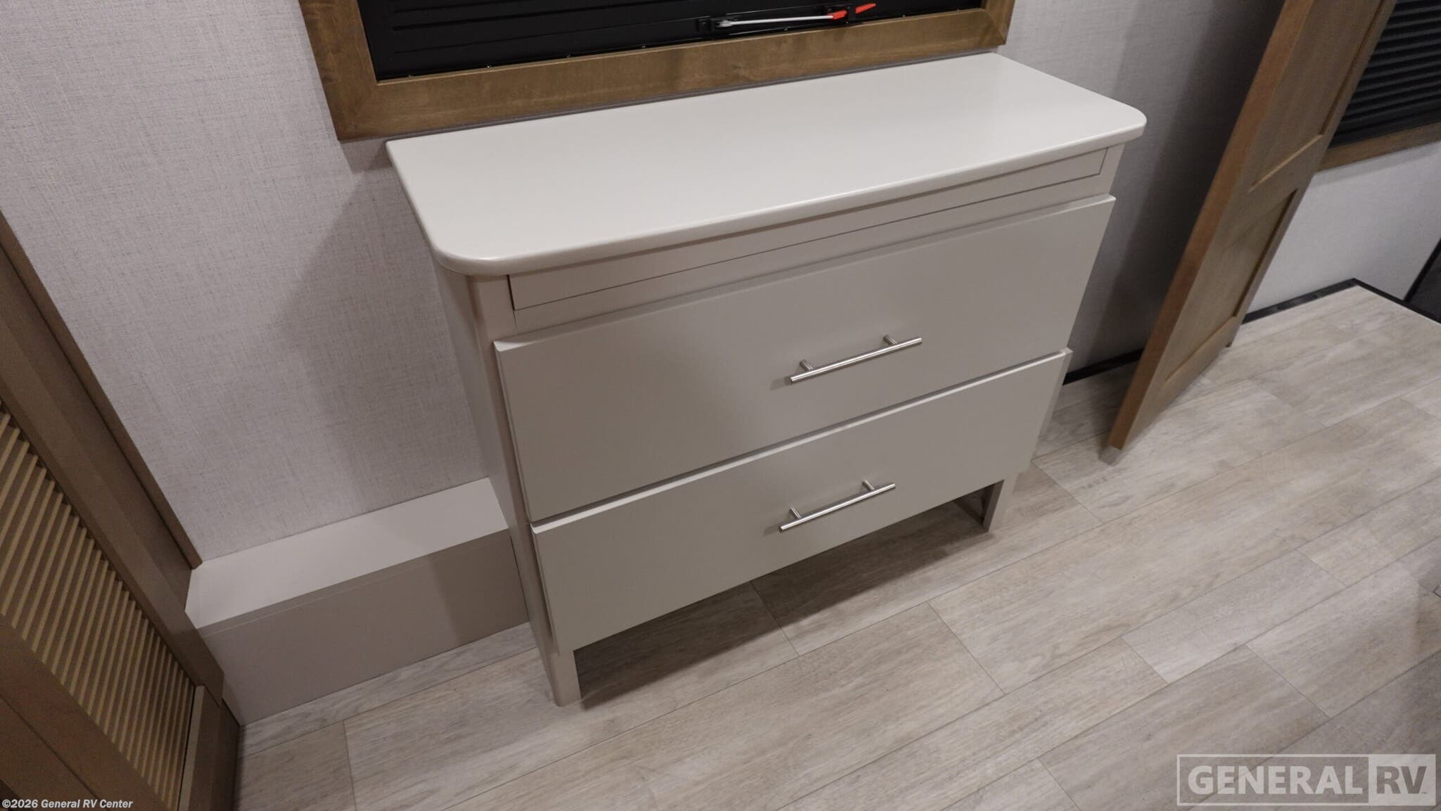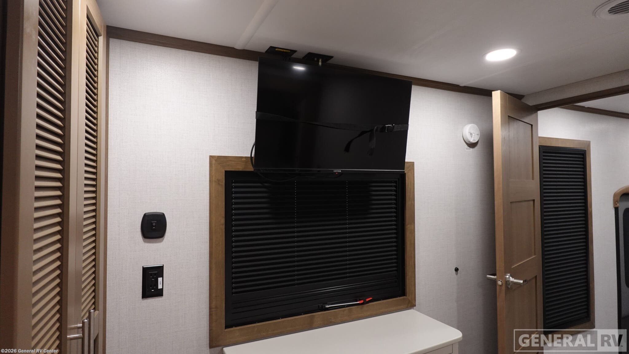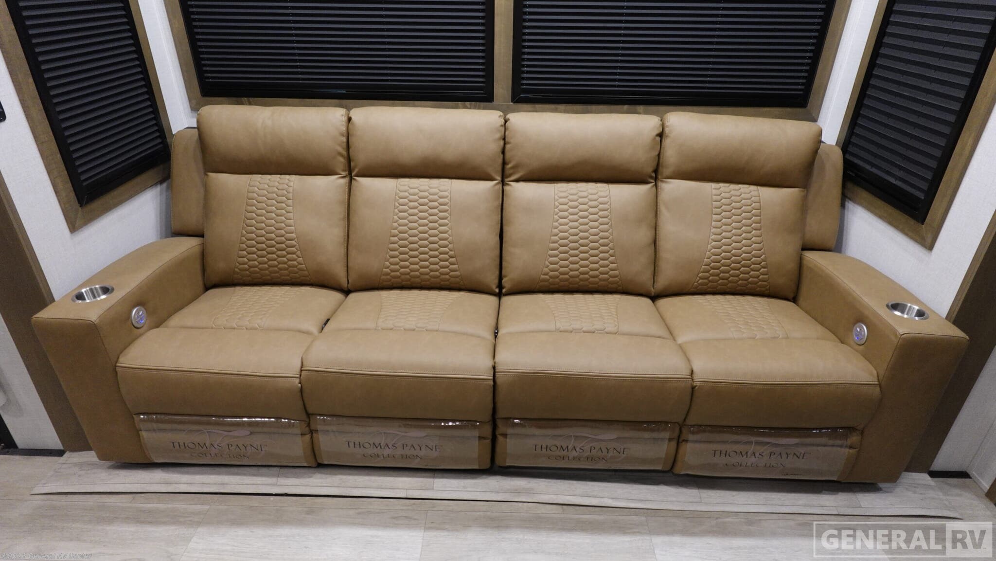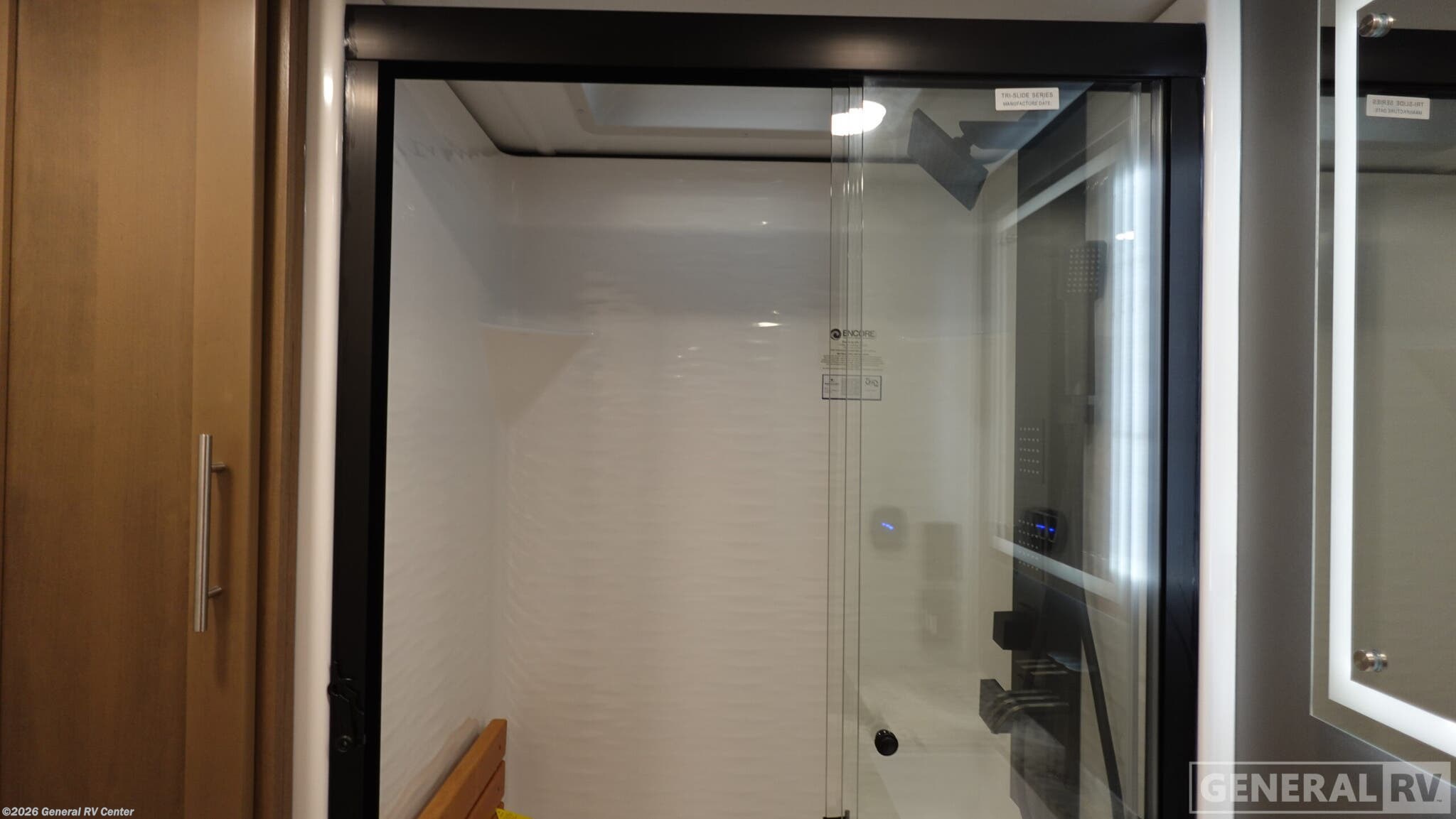 Experience the ultimate in luxury and adventure with the 2026 Keystone Fuzion 373. This RV is designed for those who crave both comfort and excitement on the road. With its spacious 39.5-foot length, this model offers a versatile living space that accommodates up to seven guests. The master suite features a plush king bed, while the garage area transforms into a cozy sleeping space with a queen bed. The convertible seating adds even more sleeping options, perfect for family and friends. The Fuzion 373 boasts a center kitchen equipped for culinary delights, featuring a four-burner cooktop and convection cooking. Enjoy meals at the stylish table with stools, and keep your ingredients fresh in the full-size electric refrigerator. The center living area is ideal for relaxation, enhanced by a 50" outdoor TV for entertainment under the stars. With three powered retractable awnings, you can create a perfect outdoor oasis. The RV also includes washer/dryer prep for added convenience during extended trips. Designed with practicality in mind, this RV offers ample storage, a residential shower, and robust tank capacities for fresh, gray, and black water. Whether you're parked at a scenic campsite or exploring off the beaten path, the Keystone Fuzion 373 ensures you travel in style and comfort. For more details or to see this model in person, visit your nearest General RV Dealership.