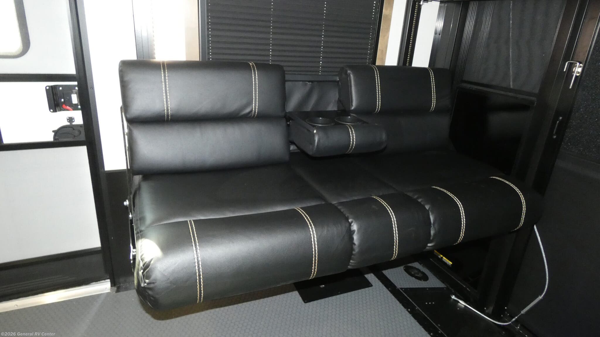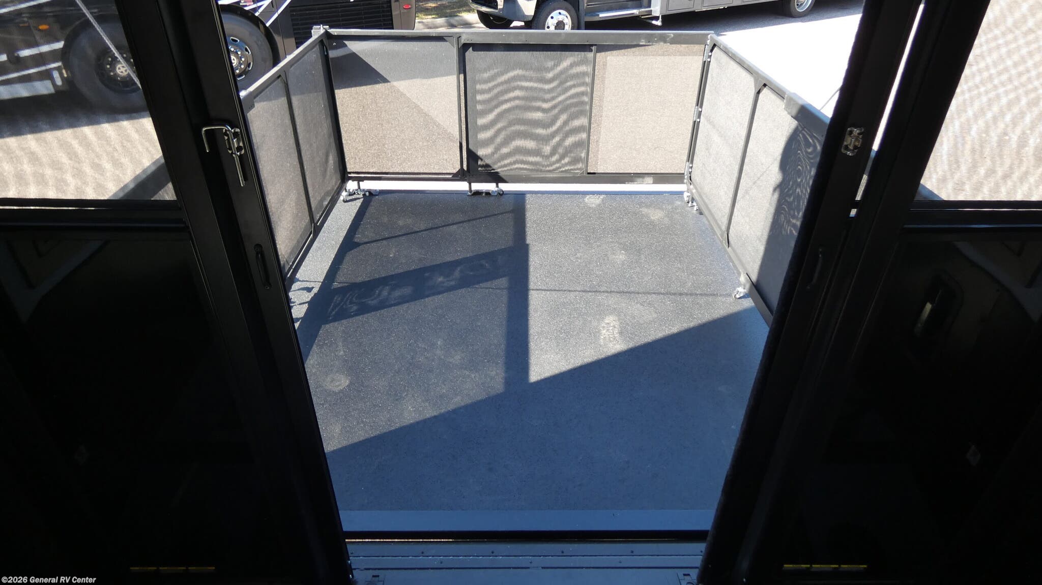 Adventure is just around the corner in this triple slide out, triple axle toy hauler. Once your toys are unloaded from the14' separate garage, you can relax on the dual opposing sofas that include a top queen bed for nighttime use. There is also a loft with a bunk mat here, overhead cabinets for storage, and an LED TV to watch the big game. The living area is where everyone can come together since there is an L-shaped sofa, theater seating, and an entertainment center for movies, and you can choose to add the optional dinette table to dine at. You'll love the kitchen with its counter peninsula, four burner range, and residential refrigerator. A full bath towards the front will let you freshen up each day, and the front private bedroom includes a Fuzion king bed for all-around comfort. There is also a master closet here, along with USB outlets, a dresser with hidden storage, plus washer and dryer prep! Get your adrenaline pumping with any one of these Keystone RV Fuzion fifth wheel toy haulers! The frame welded, Adjust-A-Trac tie-downs have 38 points to fully secure your toys as you travel, and the extended garage lengths have outside storage so you can haul bigger toys. A fuel pump station will let you easily fill up before heading out, and the exclusive Omni-Chill technology offers high-efficiency air conditioning and maximum cooling. The interior provides fiberglass backed linoleum flooring, extra-tall slide height, solid wood cabinet and drawer frames, and extra tall ceilings with crown molding to mention a few luxuries. Outside, you'll find three Girard cassette awnings, 4k framed tinted safety glass windows, a Titan hydraulic leveling system, and many more conveniences!