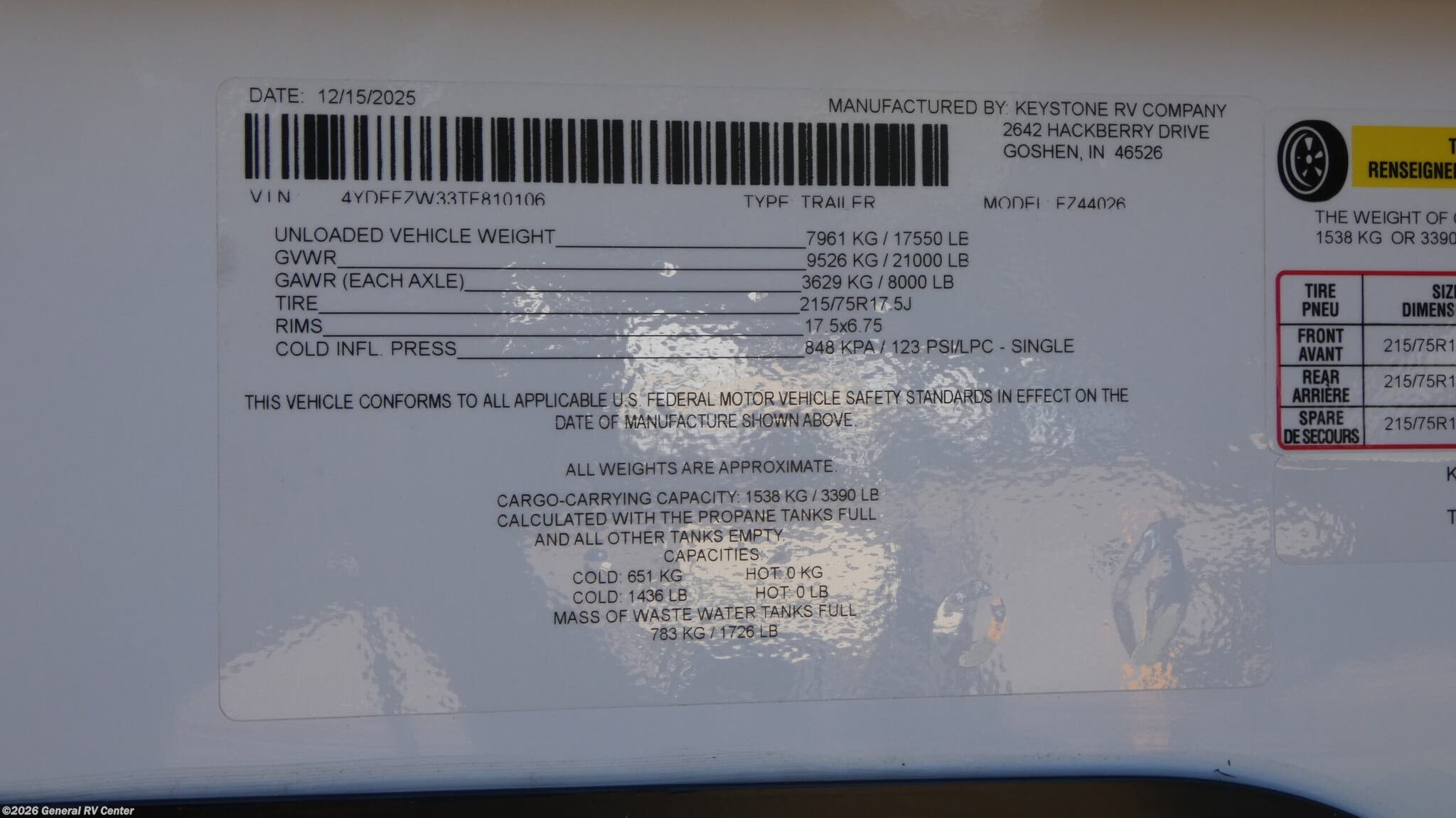 Request More Info on this 2026 Keystone Fuzion 440 Offered for sale by General RV Center