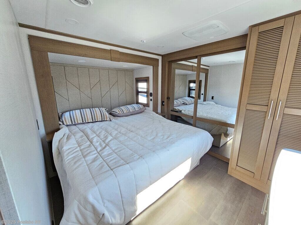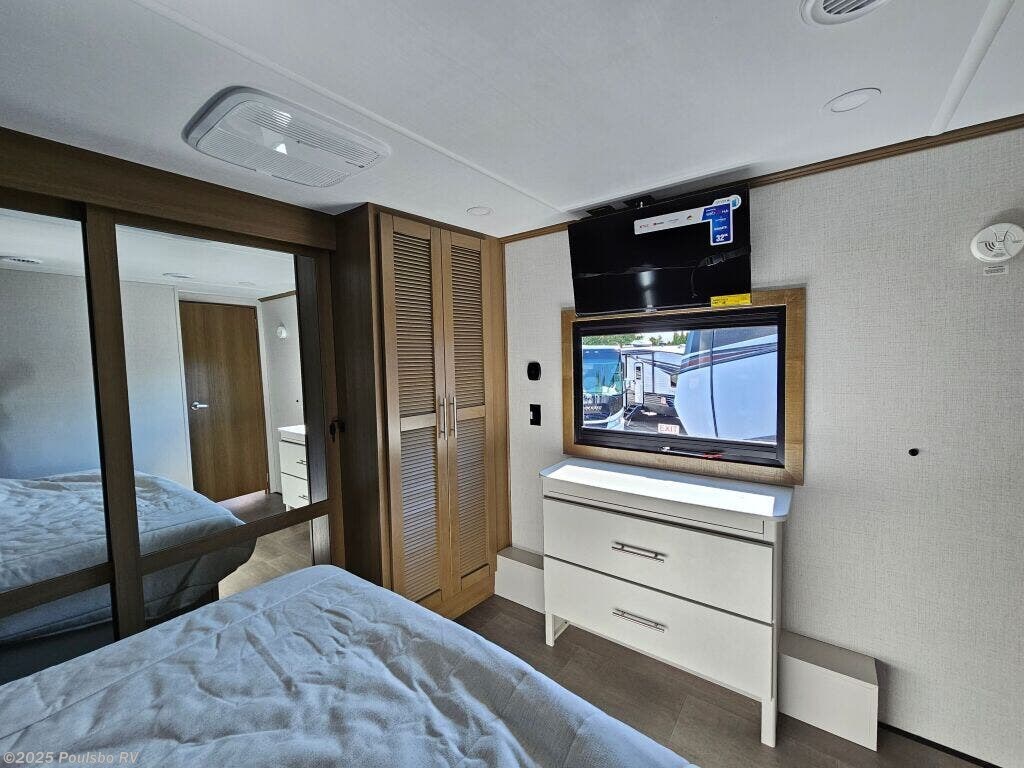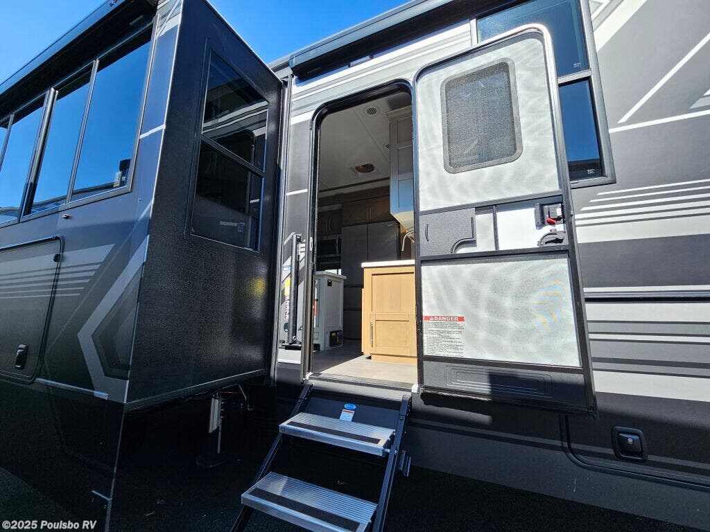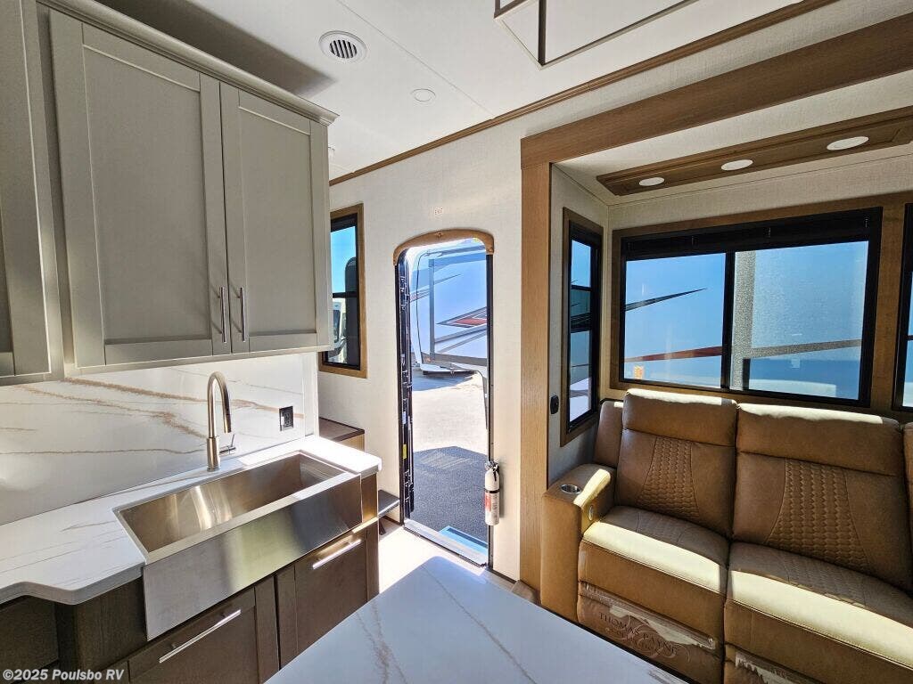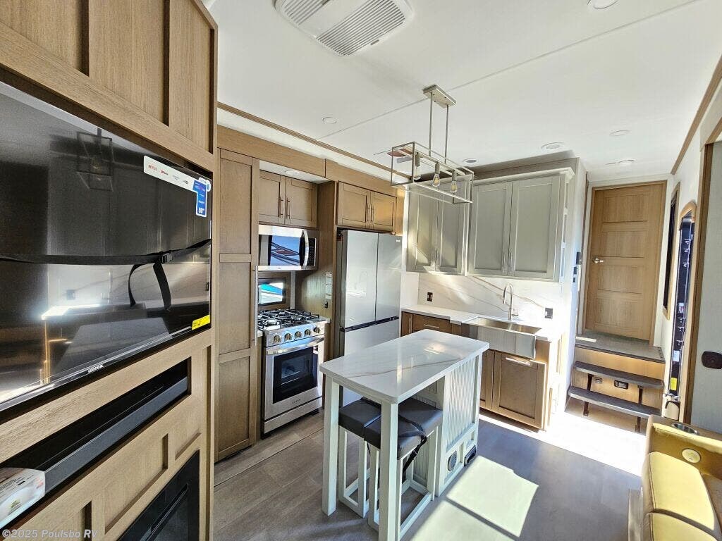 Introducing the 2026 Keystone Fuzion 373, a sophisticated and well-designed fifth wheel that caters to those who crave exploration and luxury in their travels. This new recreational vehicle spans approximately 39.37 feet in length, creating an expansive living area that comfortably accommodates up to 7 occupants, making it an ideal choice for family adventures or friendly getaways. With a dry weight of 16,325 pounds and a hitch weight of 3,745 pounds, this RV delivers both stability and impressive towing capability, allowing you to navigate various terrains with confidence. The Fuzion 373 comes equipped with three slide-outs, which effectively enhance the interior space, resulting in a bright and airy ambiance that is perfect for relaxation and gathering. Convenience is at the forefront with front and rear power leveling jacks, which simplify the setup process when you arrive at your destination. Designed for memorable RVing experiences, this model offers ample sleeping arrangements along with a multitude of modern amenities to keep you comfortable on the road. The well-appointed living area is perfect for entertaining, featuring inviting seating and an entertainment center for movie nights. Whether you are seeking weekend escapades or planning an extended journey, the 2026 Fuzion combines comfort, functionality, and style, ensuring an enjoyable experience for all travelers on board. As a family-owned, award-winning local RV dealer with multiple locations in Sumner, Everett, Kent, and Mt. Vernon Washington, Poulsbo RV is here to help you find the perfect RV. Stock#: E5968, VIN: 4YDFFZT21TF810004.
