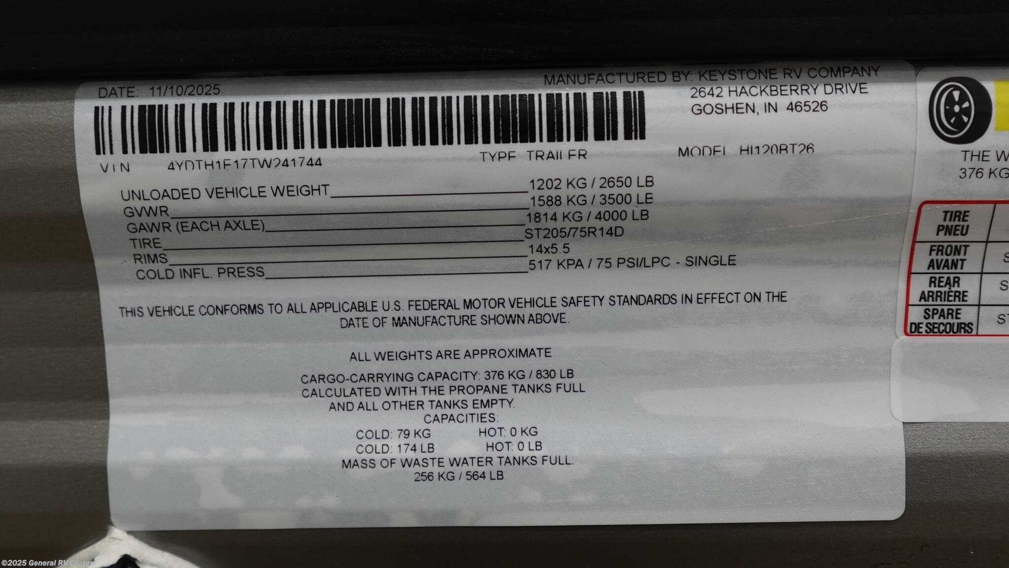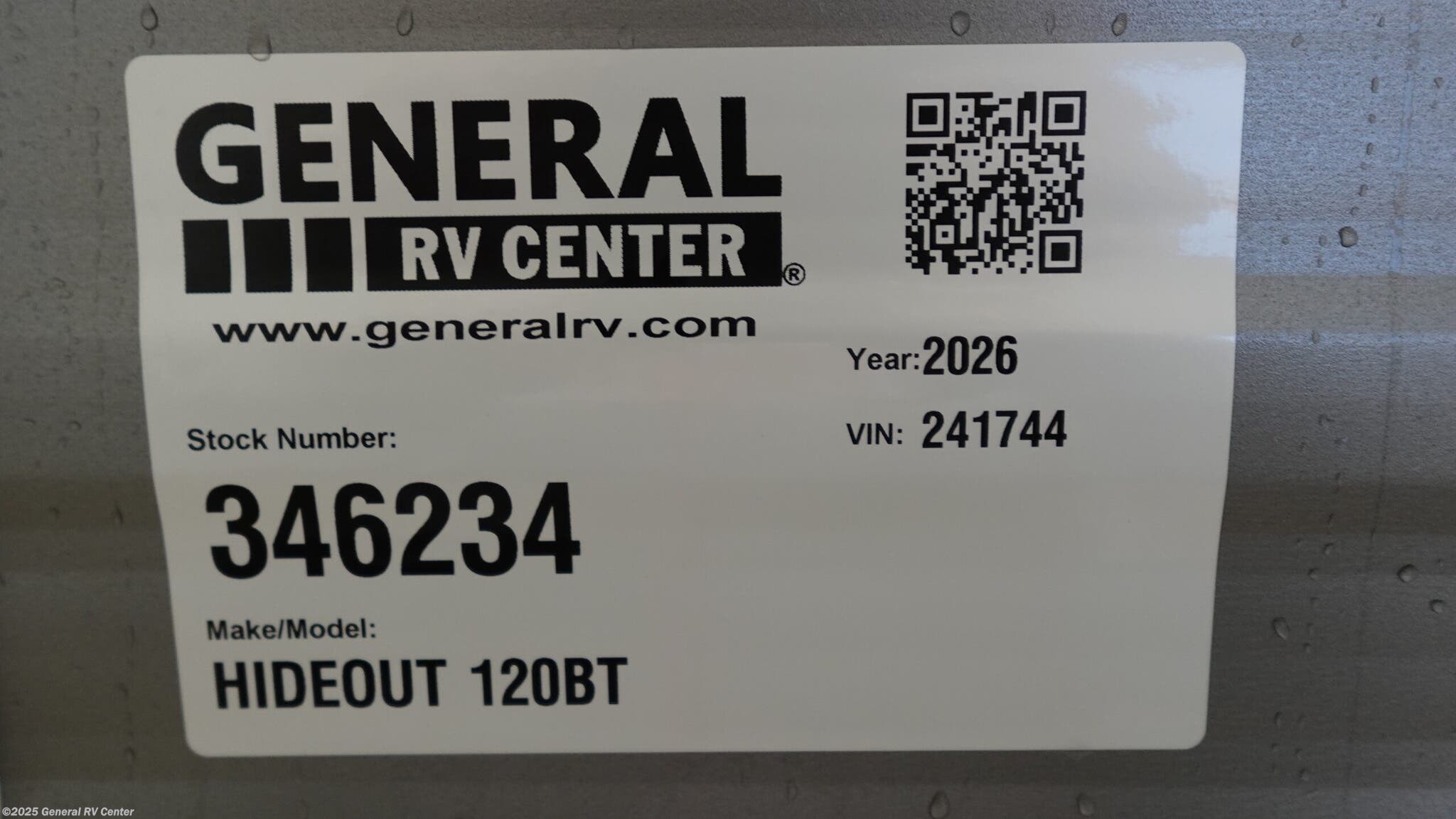 Request More Info on this 2026 Keystone Hideout 120BT Offered for sale by General RV Center