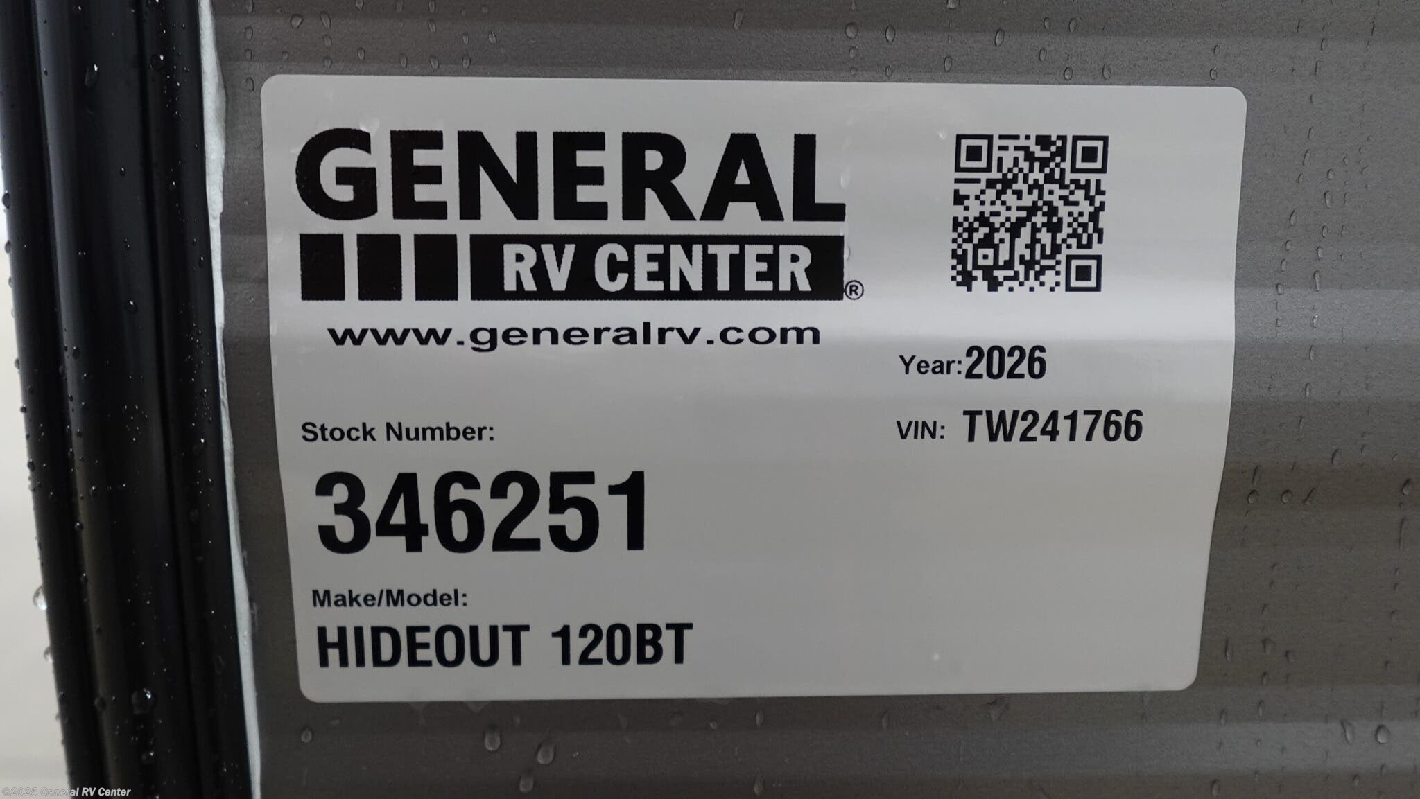 Request More Info on this 2026 Keystone Hideout 120BT Offered for sale by General RV Center