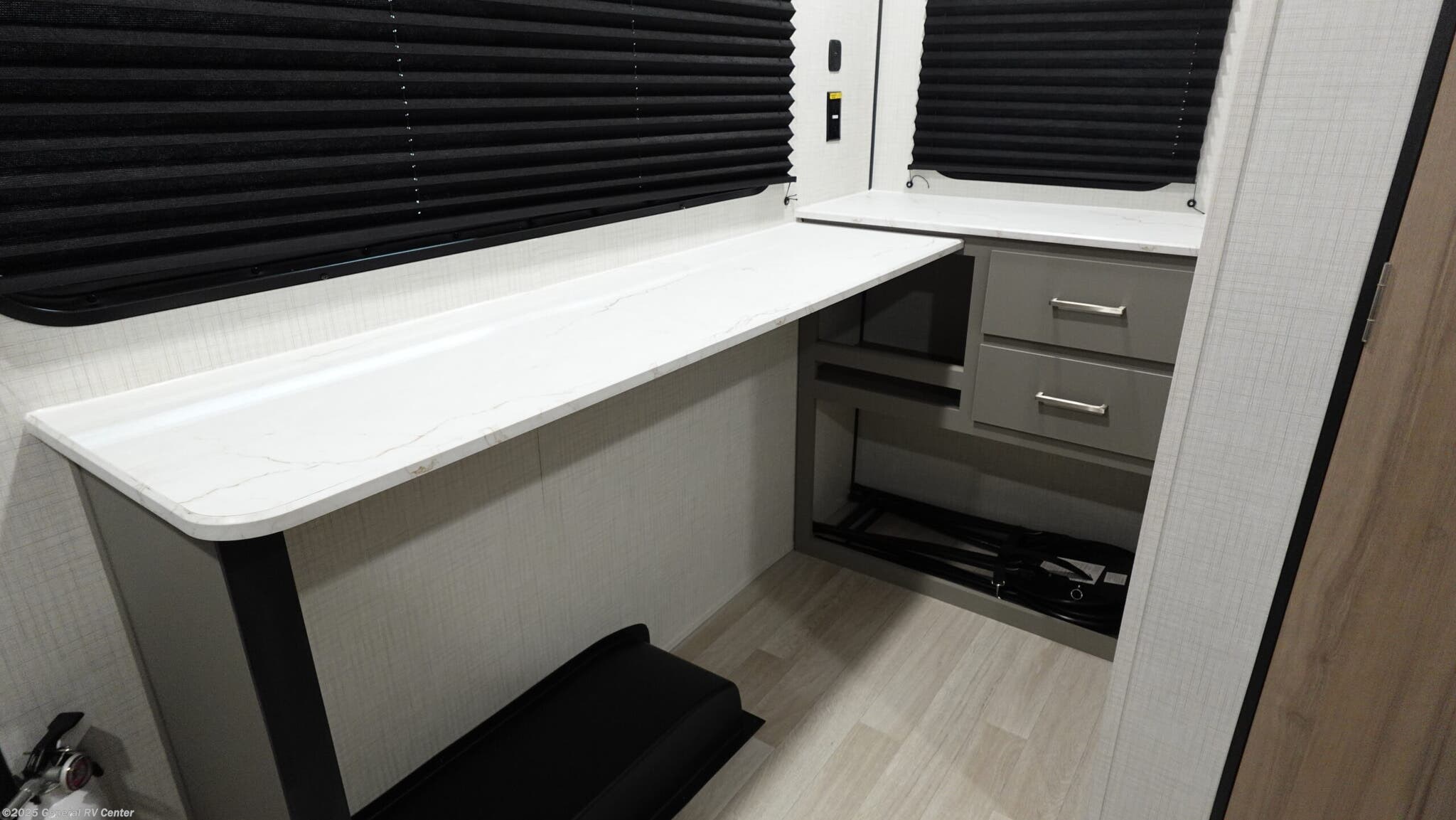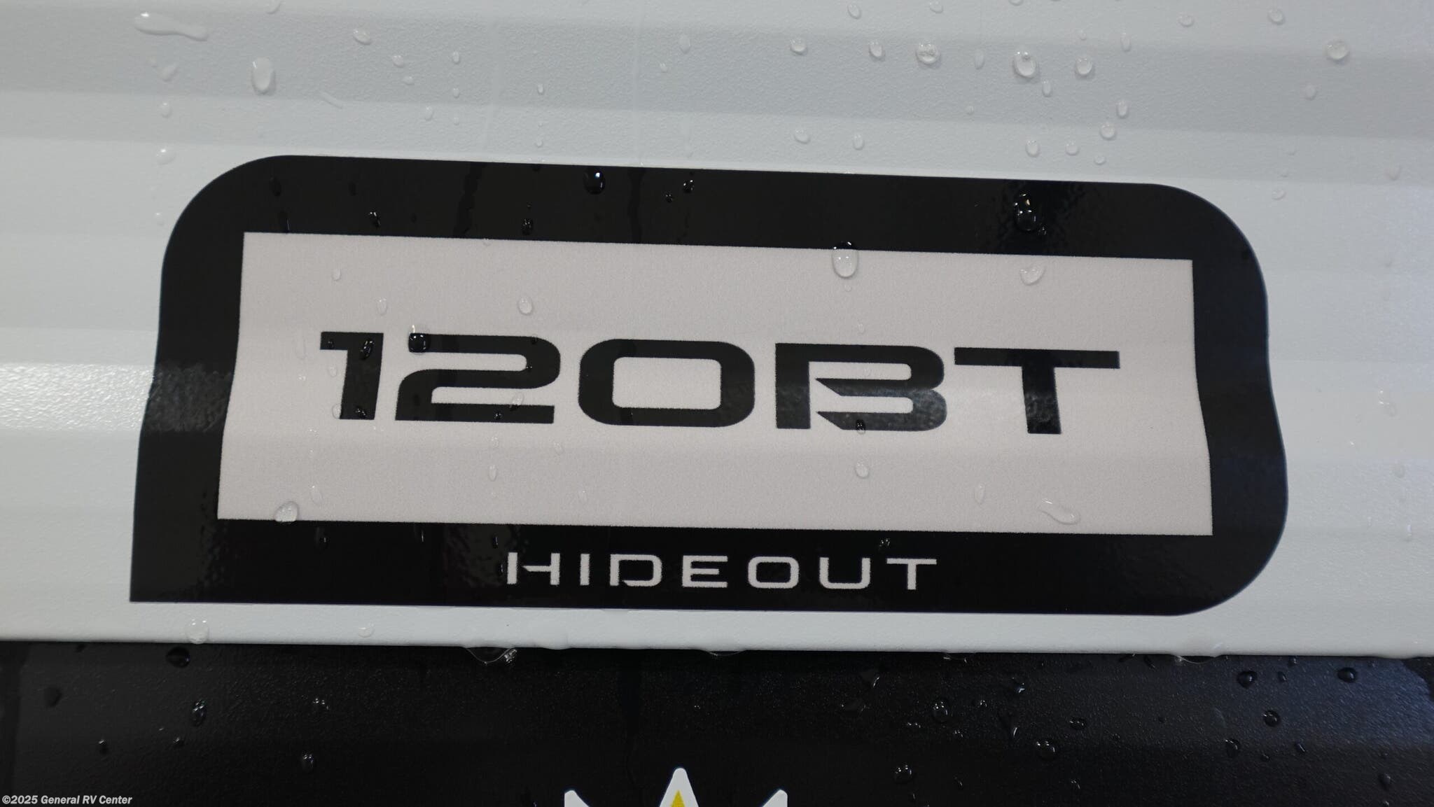 Keystone Hideout Mini travel trailer 120BT highlights: Bar Table Full-Size Bed 8' Power Awning 3.3 Cu. Ft. Refrigerator Your small crew will love camping in this lightweight travel trailer. There is a full-size bed up front with an overhead shelf to keep belongings out of the way. The two-burner cooktop and microwave oven will let you make breakfast in the morning, and the bar table with two stools provides a place to dine together. And a private bath with a shower and toilet lets you easily clean up after a day outdoors! With any Hideout Mini travel trailer by Keystone, you will enjoy lightweight towing thanks to their single axle! The XL tinted safety glass windows are ultra durable, and the power awning will provide protection from the sun as you relax in your camp chairs outside. Each model includes blackout night shades, LED lighting, plus many more interior comforts. There is also a 20K BTU furnace to keep you comfortable, plus a tankless water heater for endless hot showers!