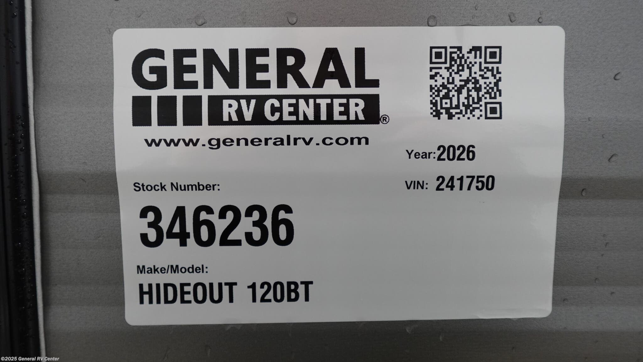 Request More Info on this 2026 Keystone Hideout 120BT Offered for sale by General RV Center