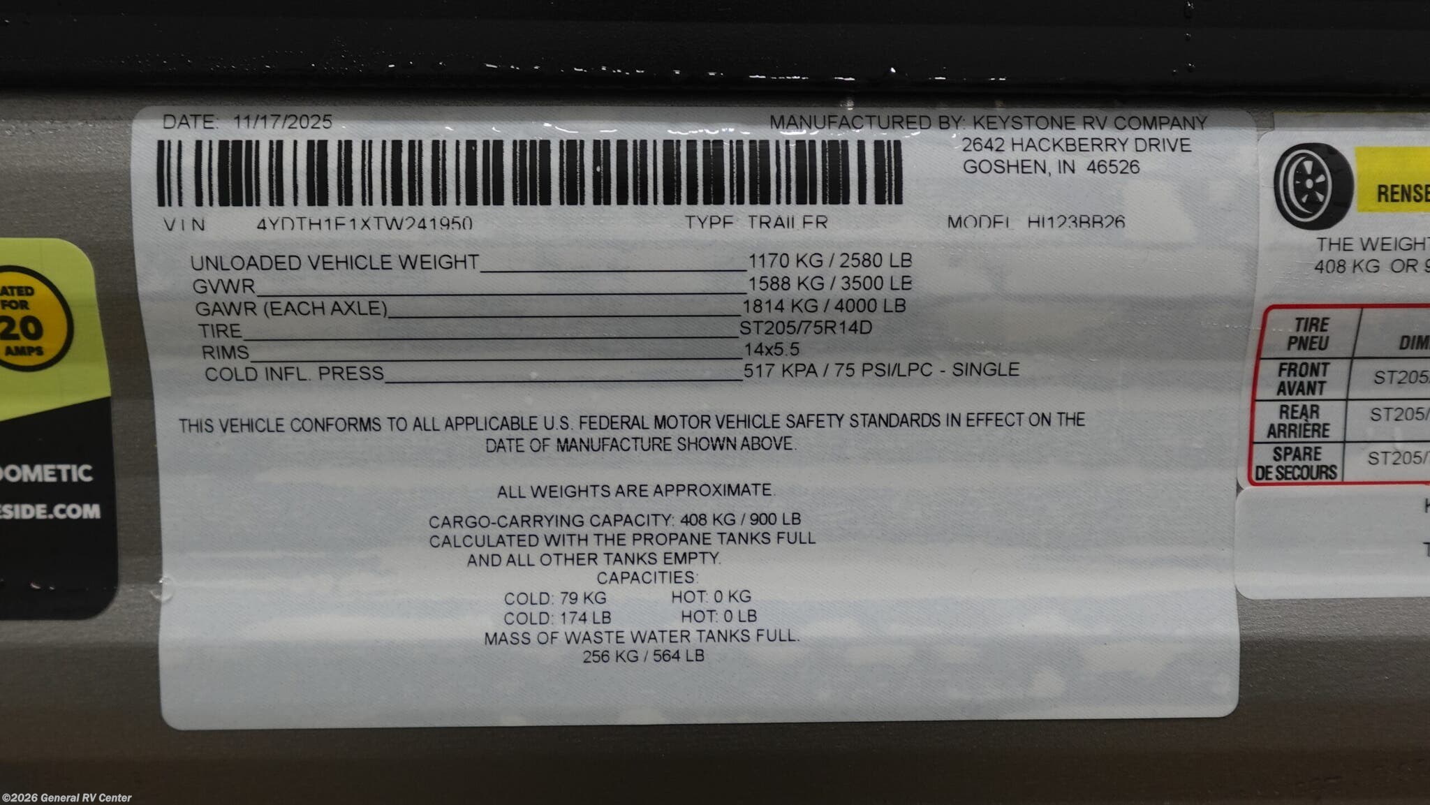Request More Info on this 2026 Keystone Hideout 123BB Offered for sale by General RV Center