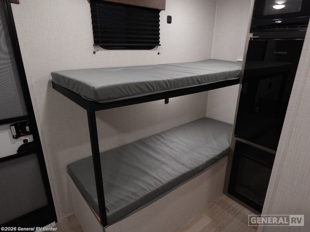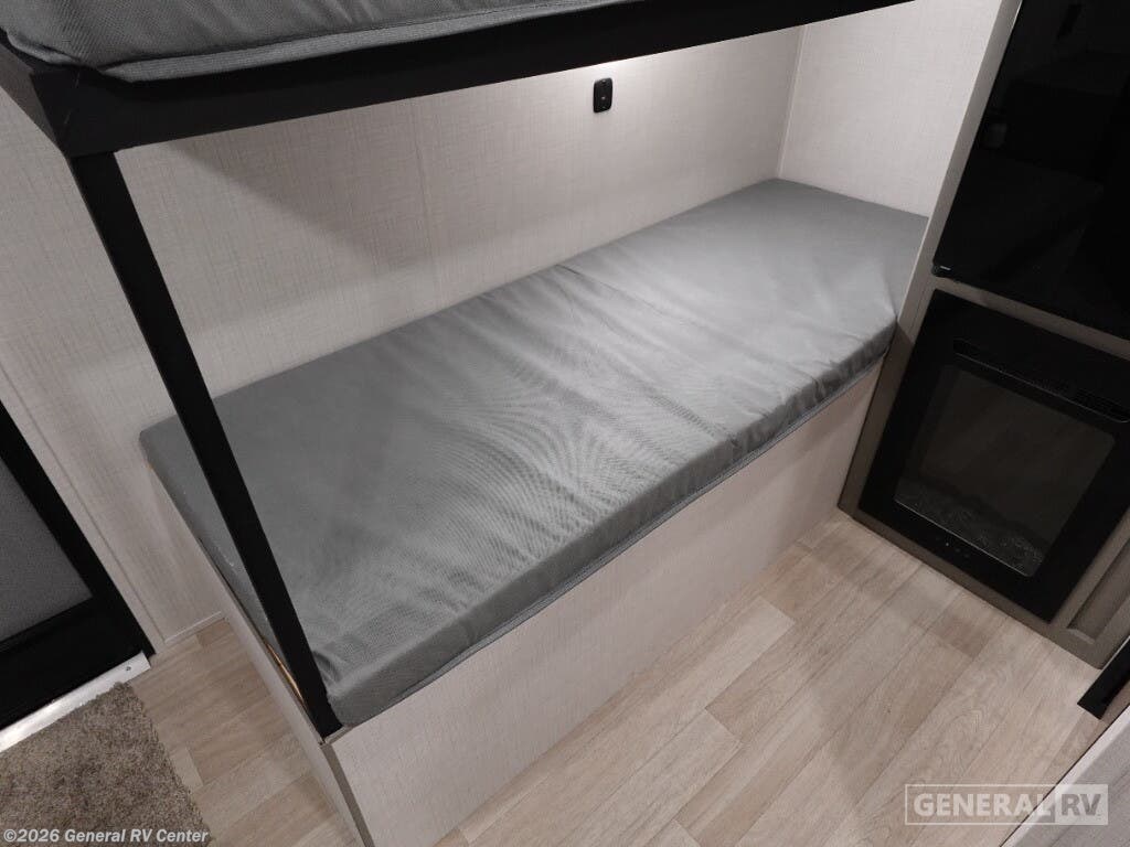 Keystone Hideout Mini travel trailer 130BH highlights: Full-Size Bed Exterior Pass-Thru Storage 3.3 Cu. Ft. 12V Refrigerator Bunk Beds This lightweight travel trailer is perfect for four happy campers. You'll enjoy the front full-size bed, while your guests or little ones take the 28" x 74" bunk beds. There is also a shelf above the bed to keep your things organized. A private bath includes a shower with a toilet so you can freshen up each day without having to leave your camper. You can make your meals on the two burner gas cooktop or in the microwave oven, then take your plate outdoors to eat under the 8' power awning! With any Hideout Mini travel trailer by Keystone, you will enjoy lightweight towing thanks to their single-axle! The AlphaPly TPO roof membrane is ultra durable, and the power awning will provide protection from the sun as you relax in your camp chairs outside. Each model includes blackout night shades, LED lighting, plus many more interior comforts. There is also a roof A/C and 20K BTU furnace to keep you comfortable, plus a tankless water heater for endless hot showers!