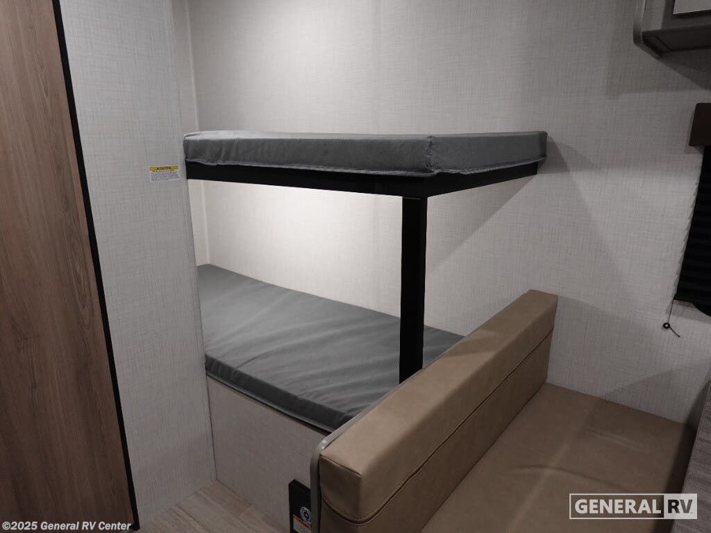 The 2026 Keystone Hideout Mini 175BH is your perfect travel companion for family adventures. This compact yet spacious RV is designed to comfortably accommodate up to six sleepers, making it ideal for family getaways. The cleverly designed floorplan features a cozy queen bed at the front, providing a restful retreat after a day of exploration. The bunk area offers additional sleeping space, ensuring everyone has a comfortable spot to recharge. Inside, you'll find a practical booth dinette that invites you to enjoy meals together or convert it into extra sleeping space. The kitchen is equipped with a 3.3 cu. ft. refrigerator, ensuring your essentials are always within reach. The bathroom is thoughtfully laid out with a shower, providing convenience and comfort on the road. With a length of 20 feet and a height of 10 feet, this RV is easy to tow and maneuver, while the 10-foot awning extends your living space to the great outdoors. Whether you're planning a weekend getaway or an extended trip, the Hideout Mini 175BH offers the perfect blend of functionality and style. Discover more about this model at your nearest General RV Dealership Location and start planning your next adventure today!