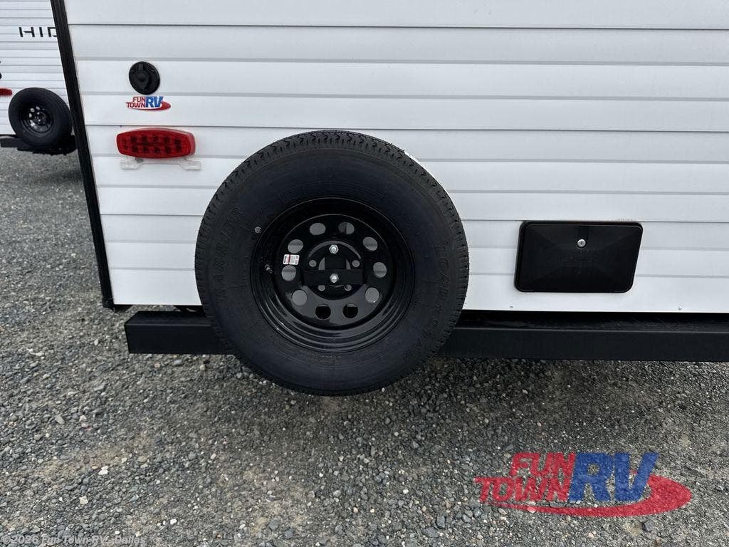 With any Hideout travel trailer by Keystone, you will find functional features and comfort at every turn! Each one is built with tinted safety glass windows and a walkable roof for added durability. There are also Solid Step entry steps outside, along with an outside shower, heavy-duty stabilizer jacks, a spare tire kit and Tire Linc TPMS prep. You'll love the pressed membrane premium countertops inside, plus a decorative tub surround, LED lighting, blackout night shades, and many more comforts. Additional features include a tankless water heater, a porcelain foot flush toilet, a power tongue jack, and an XL entry assist handle to name just a few!
