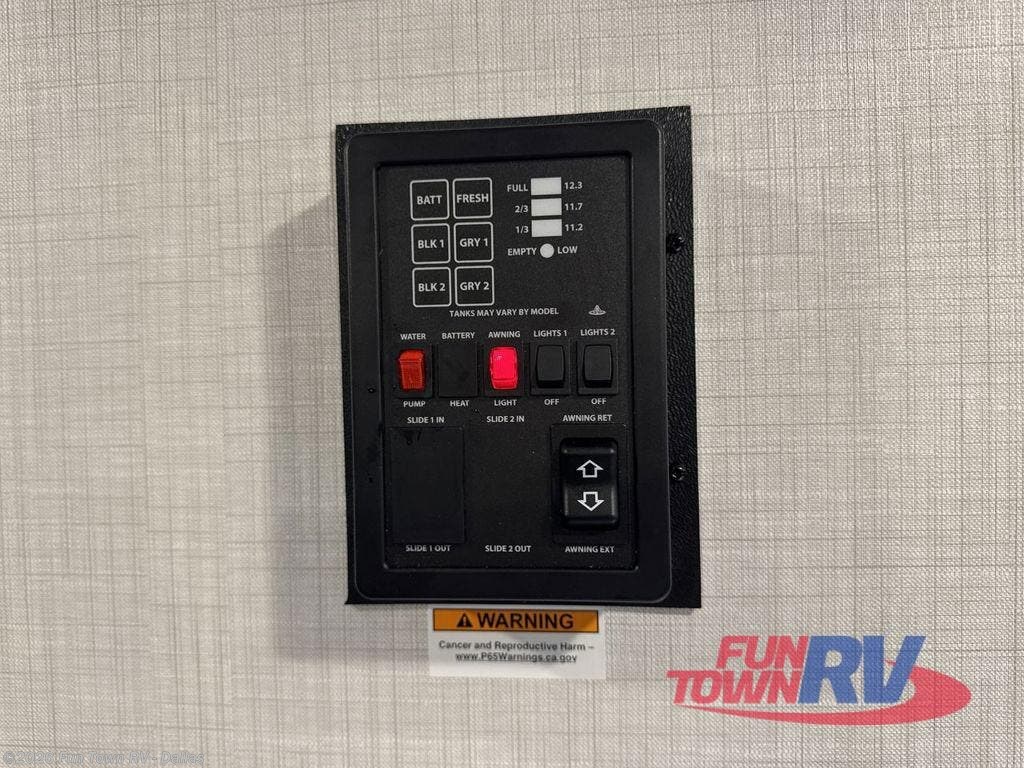 The whole gang will love camping in this travel trailer with double-size bunks! You'll enjoy your own Olympic RV queen bed up front in the semi-private bedroom, along with dual wardrobes to keep your things tidy. Once the chef of your group has made dinner on the three-burner cooktop, you can dine at the booth dinette or take your plate outdoors to sit under the 16' power awning with LED lights. There is also a sofa with an end table inside that will provide additional seating and sleeping space. And don't overlook the rear corner full bath adjacent to the bunks for easy nighttime use!