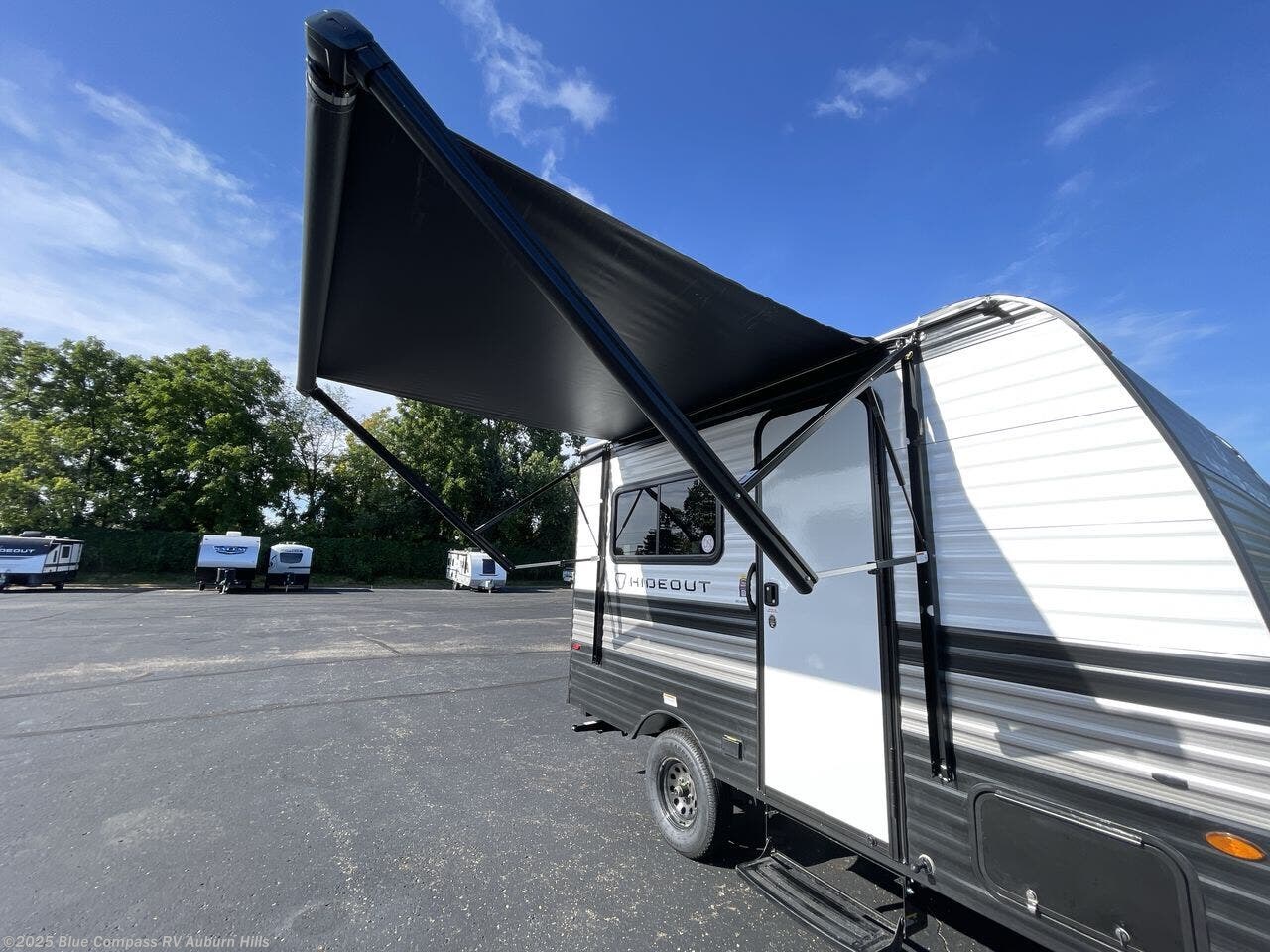 With any Hideout Mini travel trailer by Keystone, you will enjoy lightweight towing thanks to their single-axle! The AlphaPly TPO roof membrane is ultra durable, and the power awning will provide protection from the sun as you relax in your camp chairs outside. Each model includes blackout night shades, LED lighting, plus many more interior comforts. There is also a roof A/C and 20K BTU furnace to keep you comfortable, plus a tankless water heater for endless hot showers!