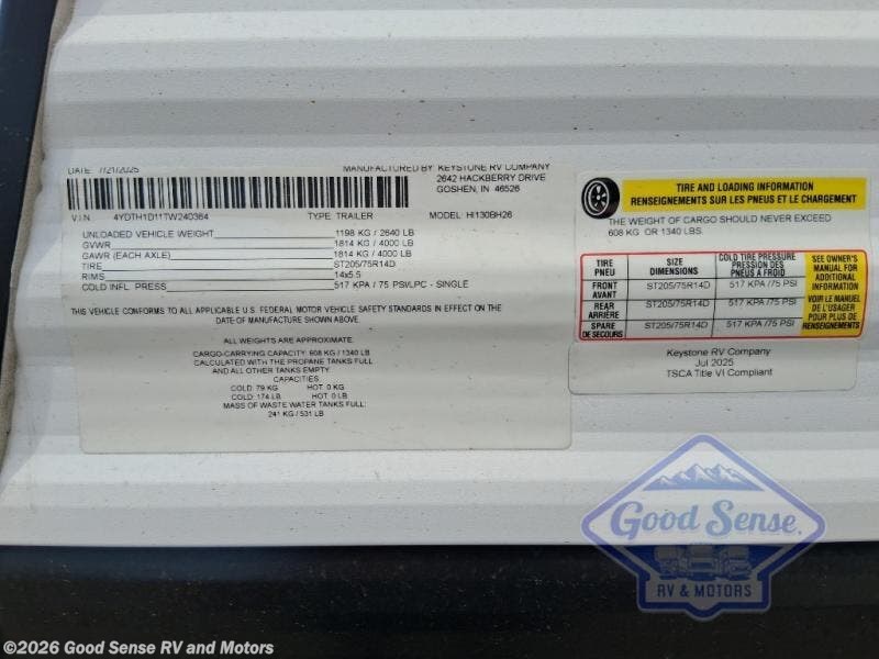 Request More Info on this 2026 Keystone Hideout Mini 130BH Offered for sale by Good Sense RV and Motors