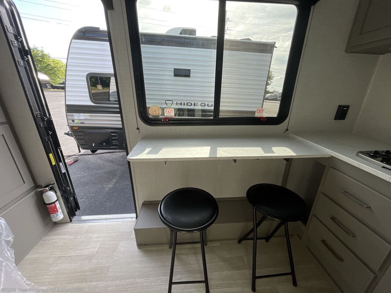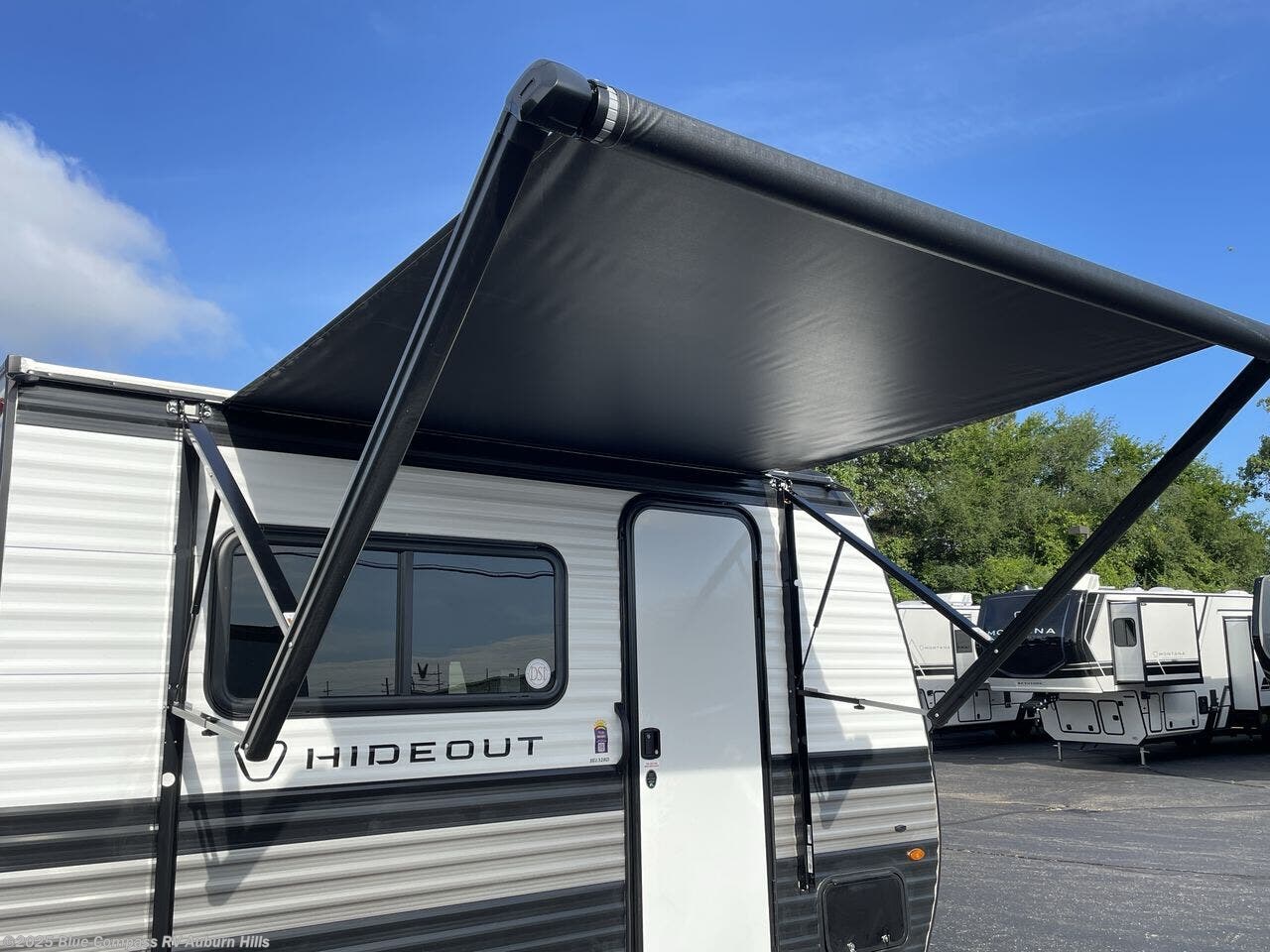 With any Hideout Mini travel trailer by Keystone, you will enjoy lightweight towing thanks to their single-axle! The AlphaPly TPO roof membrane is ultra durable, and the power awning will provide protection from the sun as you relax in your camp chairs outside. Each model includes blackout night shades, LED lighting, plus many more interior comforts. There is also a roof A/C and 20K BTU furnace to keep you comfortable, plus a tankless water heater for endless hot showers!