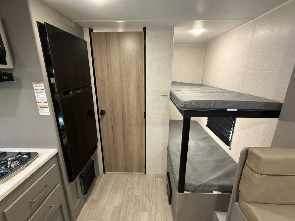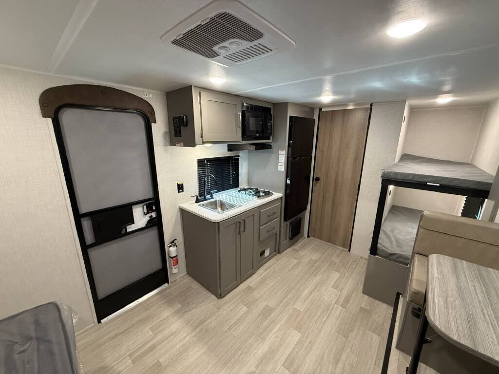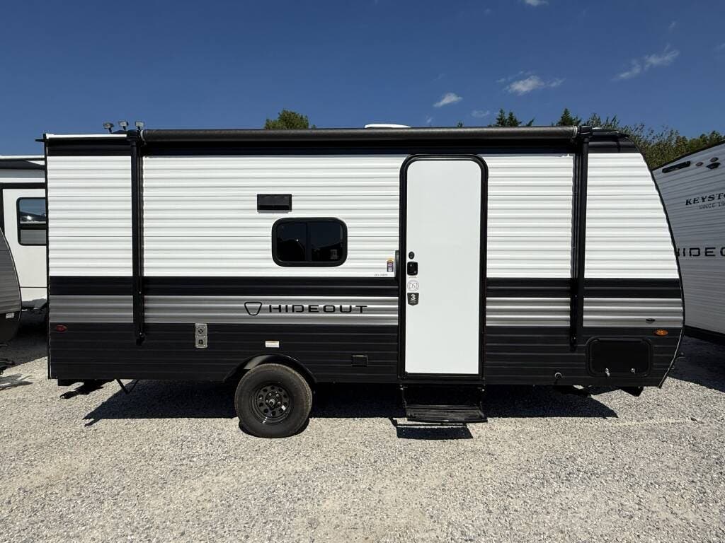 Enjoy your RV trips more than ever before in this 2026 Keystone Hideout Mini 176BH. Be a part of the Keystone family with this 2026 Keystone Hideout Mini 176BH. If you’re looking for a family RV, you’ve found it: this rig sleeps 6. Setup is a breeze thanks to one roomy slide. The fridge make the perfect combo for eating well on the road. Spend time together as a family in the living area with the TV. You’ll never get too hot or too cold inside your rig thanks to the heating option. Go longer without filling up thanks to the 21 gallon fresh water tanks. The exterior features make camping a breeze, such as awning, leveling jacks, power awning, skylight and slideout.