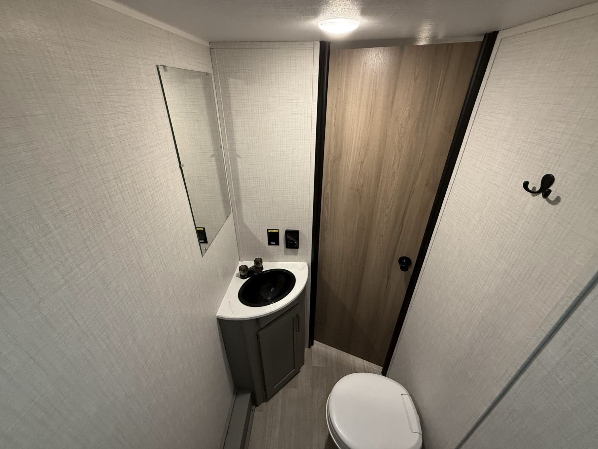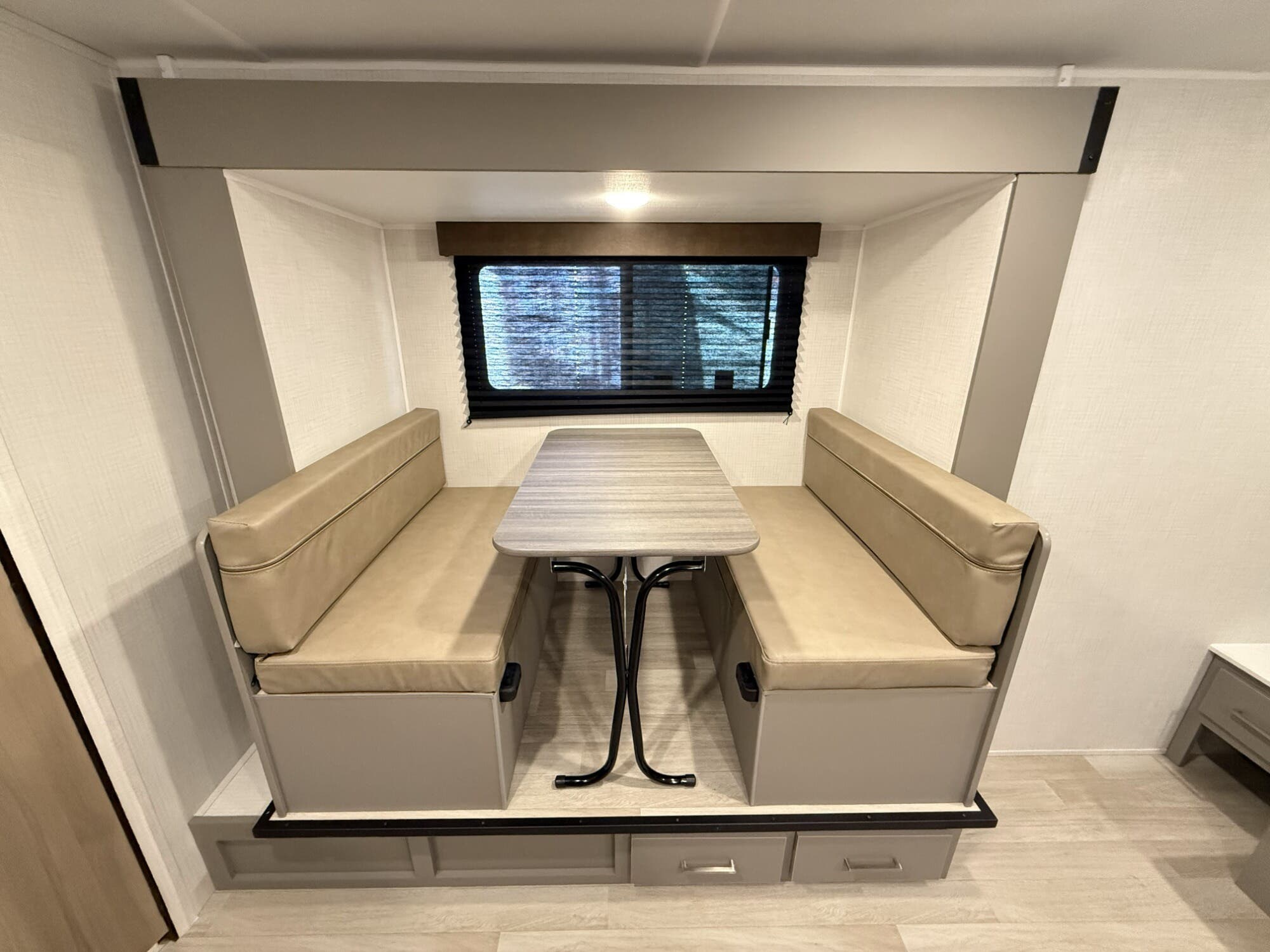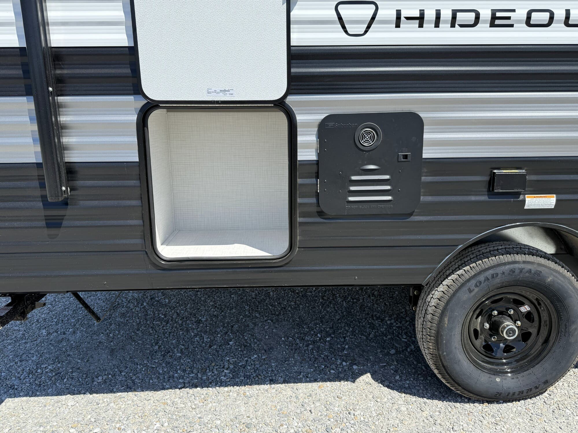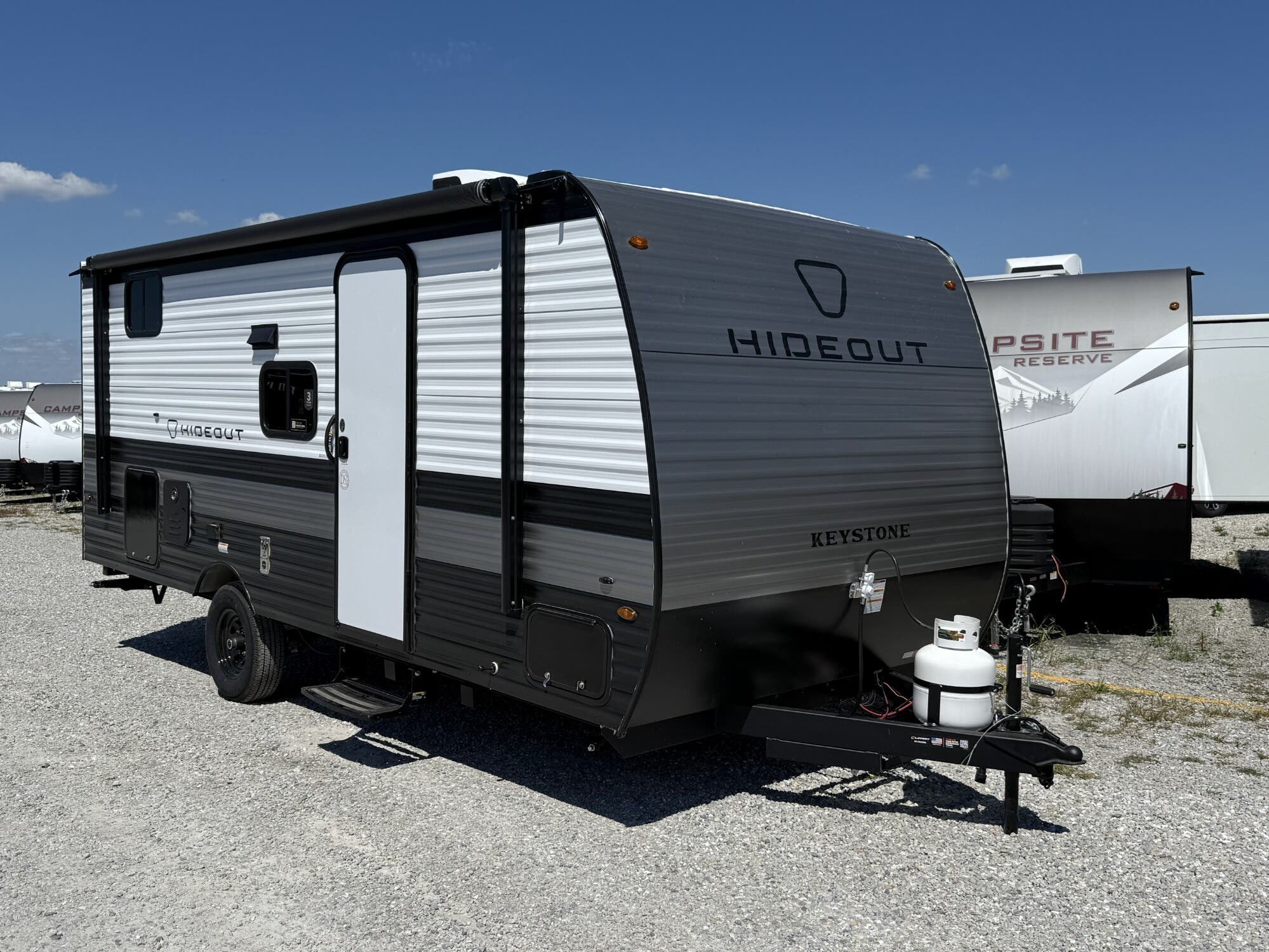 The campground will feel like home in this 2026 Keystone Hideout Mini 181BH. This 2026 Keystone Hideout Mini 181BH welcomes you into the Keystone family! If you’re looking for a family RV, you’ve found it: this rig sleeps 8. Setup is a breeze thanks to one roomy slide. It doesn’t matter whether you are cooking for one or an entire campground, this kitchen has everything you need with the fridge, stove. Spend time together as a family in the living area with the TV. Comfort is important when RVing, and you’ll find just that with the queen bed. Keep a comfortable temperature inside your rig with the heating option. If you’re thinking of heading off grid, this rig has a 21 fresh water tank. Outside, you’ll find awning, leveling jacks, power awning, skylight, slideout and spare tire kit.