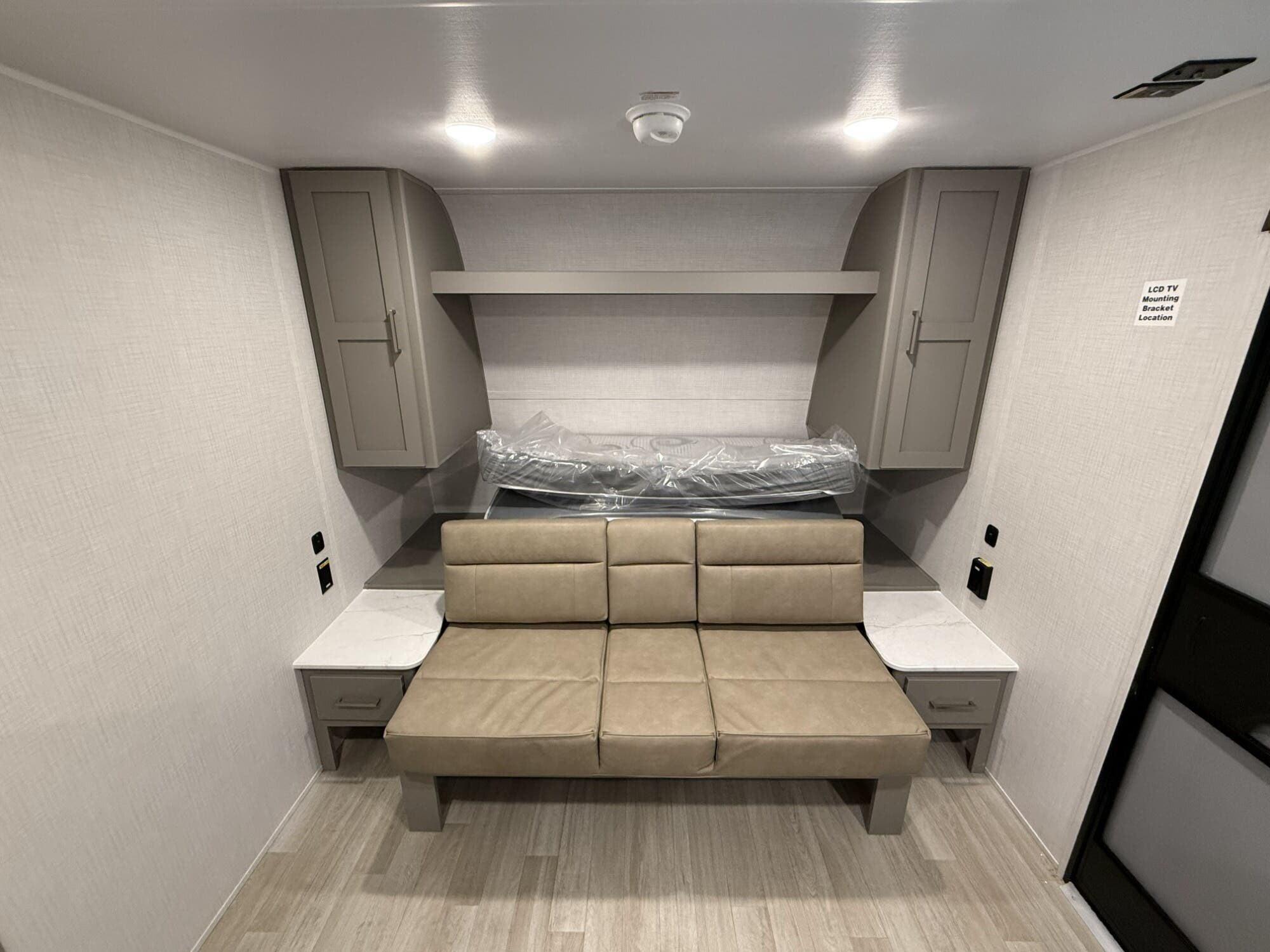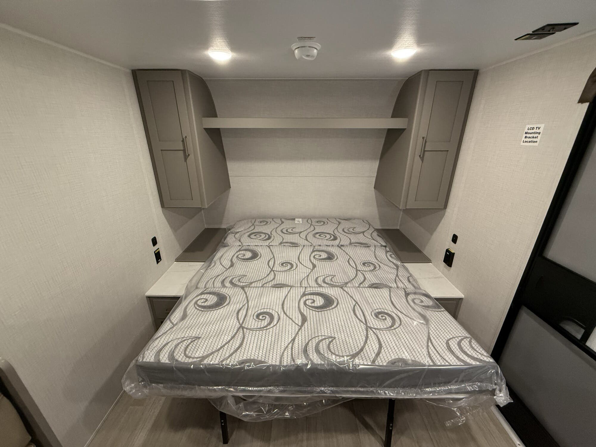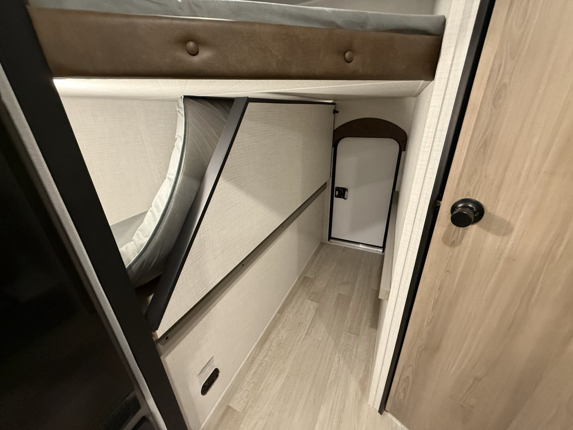 Bunk Beds, Queen Bed, Roof Vents, Shower, Toilet, Vanity