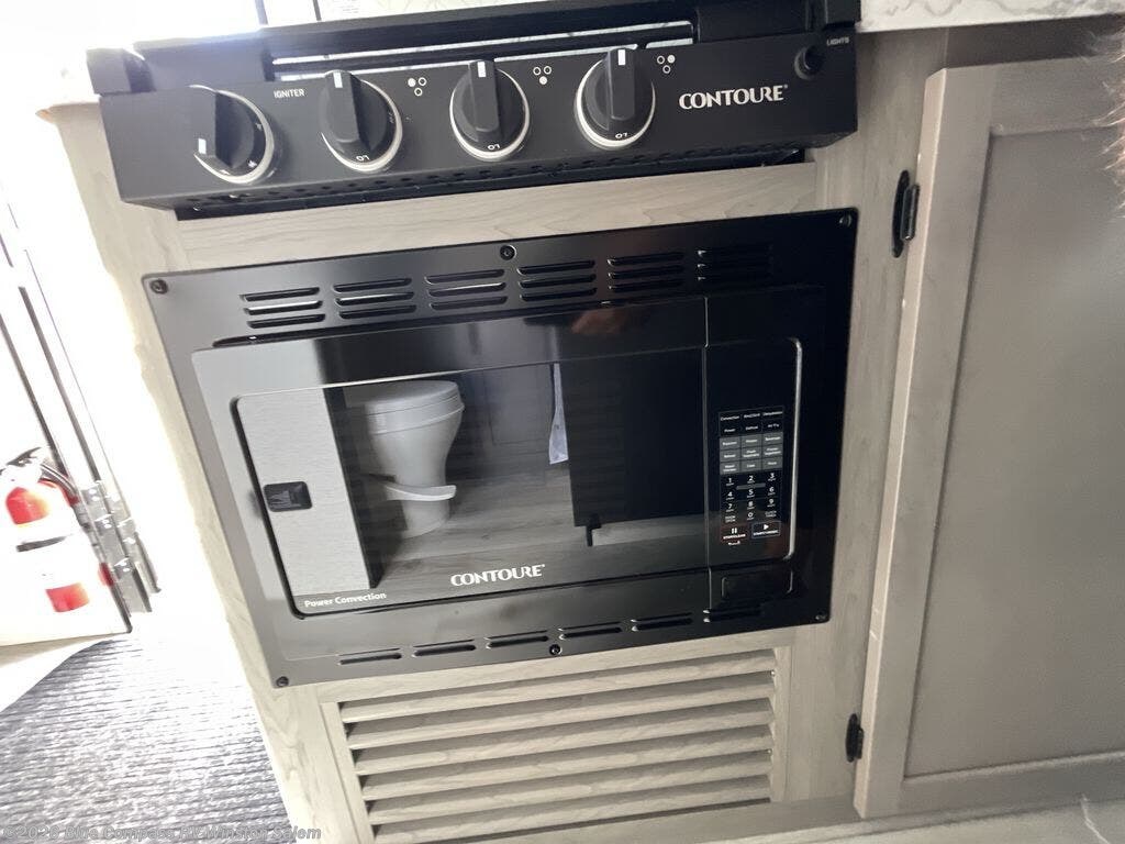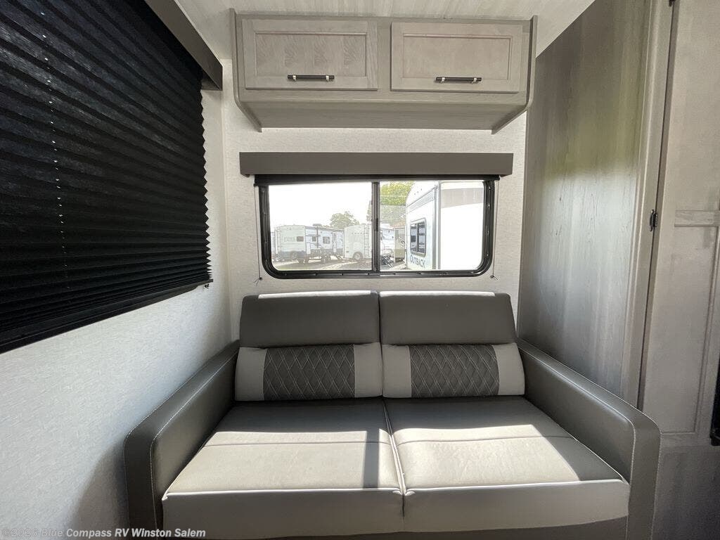 This is the perfect starter travel trailer since it includes everything you need while you're away from home. You'll enjoy the queen bed up front with underbed storage and nightstands for your things, plus a full bath on board so you won't have to use the camp's facilities. This model includes a cooktop that will allow you to cook meals each day, and there is a pantry and a 10 cu. ft. 12V refrigerator for food storage! A booth dinette in the back provides a place to dine and the sofa will be perfect to relax on after a day outdoors. And these pieces of furniture can double as your guests sleeping space at night!