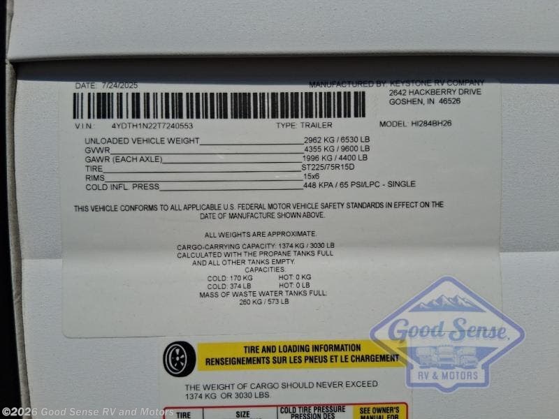 Request More Info on this 2026 Keystone Hideout Sport 284BH Offered for sale by Good Sense RV and Motors