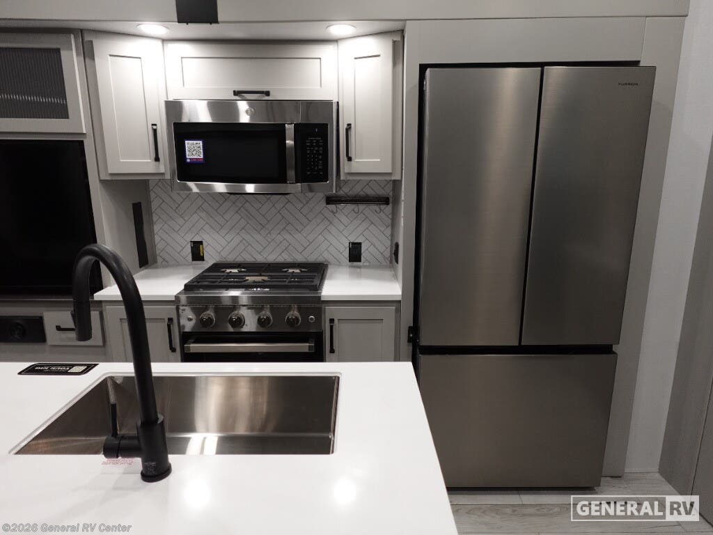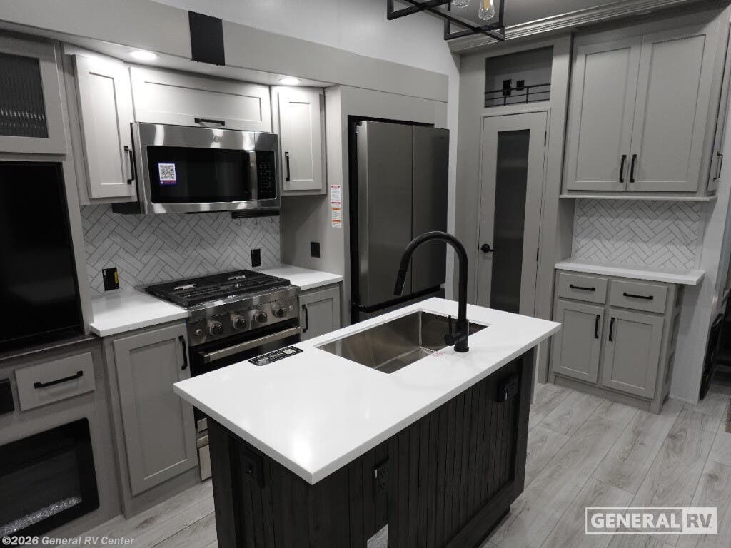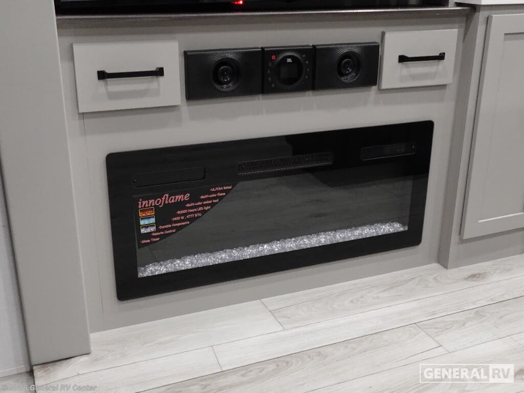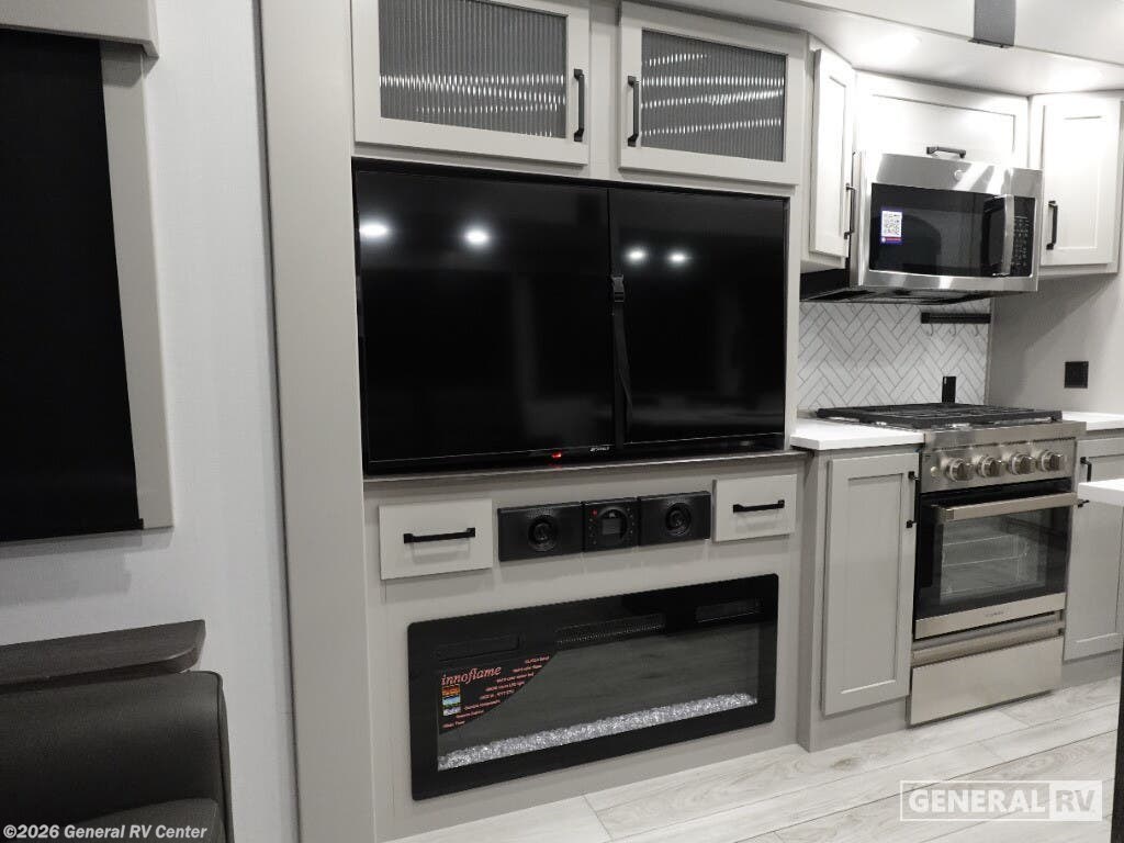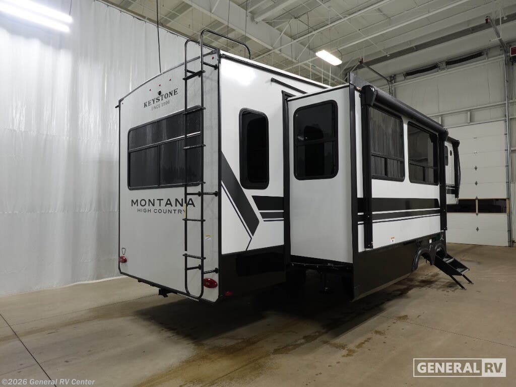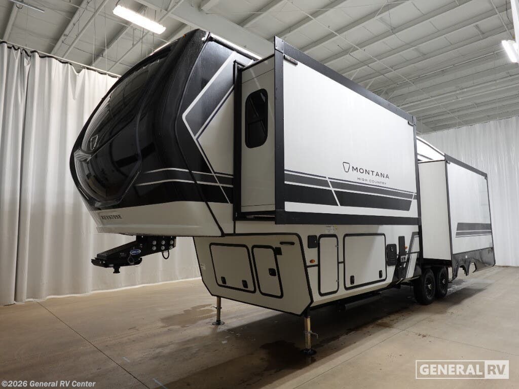 The 2026 Keystone Montana High Country 295RL is your ticket to luxurious adventures on the open road. This stunning fifth wheel offers a harmonious blend of comfort and practicality, designed to accommodate up to six travelers with ease. At 34 feet long, it boasts a spacious interior featuring three slides that expand your living space, making it perfect for family trips or entertaining friends. The rear living area is a cozy retreat, complete with a smart HDTV and a fireplace, creating the perfect ambiance for relaxation after a day of exploration. The center kitchen is a culinary enthusiast's dream, equipped with a full-size electric refrigerator and a three-burner cooktop, ensuring you have all the tools needed for delightful meals. The elegant dining area with a table and chairs provides a charming setting for meals or game nights. The front bedroom, offering a king-sized bed, is a sanctuary of comfort, with ample wardrobe space and convenient washer and dryer prep. With dual awnings extending over 26 feet, outdoor gatherings are a breeze, providing shade and shelter for your alfresco enjoyment. This Montana High Country model is not just about luxury; it's also about functionality. With a generous fresh water capacity of 91 gallons and ample gray and black water storage, your off-grid adventures are well-supported. The automatic heater keeps you cozy in cooler weather, while the powered retractable awning invites you to enjoy the great outdoors in style. To experience this exceptional RV firsthand, visit your nearest General RV dealership and start your journey into the world of unparalleled comfort and adventure.