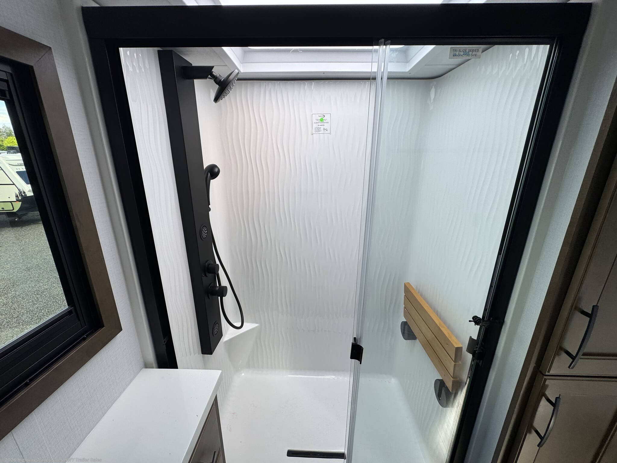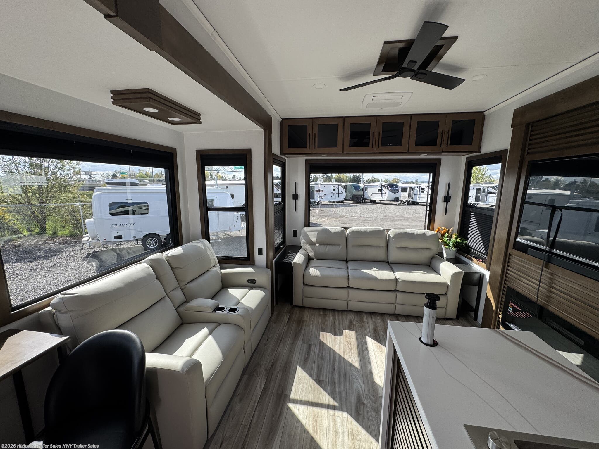 Automatic Leveling Jacks, Black Tank Flush, Enclosed Underbelly, Exterior Speakers, External Shower, Fiberglass Sidewalls, Heated Underbelly, Ladder, Outside Entertainment Center, Pass Thru Storage, Power Awning, Power Roof Vent, Roof Vent, Screen Door, Skylight, Slam Latch Baggage Doors, Slideout, Spare Tire Kit, Tinted Windows, Upgraded Insulation Package -