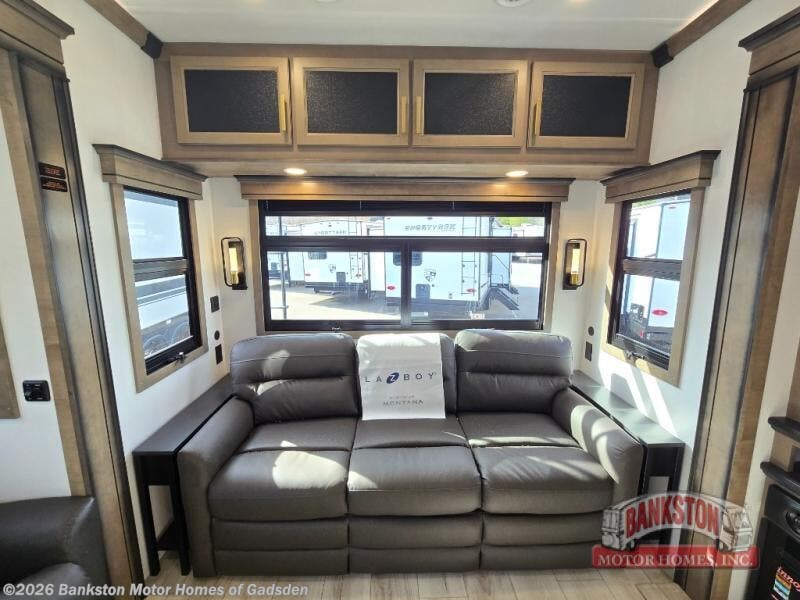 Enjoy luxury, innovation, and the outdoors in any one of Montana's finest fifth wheels. Each set the standard with exceptional features, and exciting factory installed options to provide you a great home on the road. Keystone's 12" I-beam chassis with z-frame technology provides a strong and durable foundation to your fifth wheel, and the four season living package will help extend your camping season. A few other construction features you will appreciate include a MORryde CRE3000 suspension, a fully walkable roof with an alpha seamless TPO membrane system, and 4k square frameless tinted safety glass windows. Each feature stylish interiors with two decor choices paired with beautiful hardwood cabinetry, Beauflor vinyl flooring throughout, central vacuum, plus a La-Z-Boy furniture package for all-around comfort!