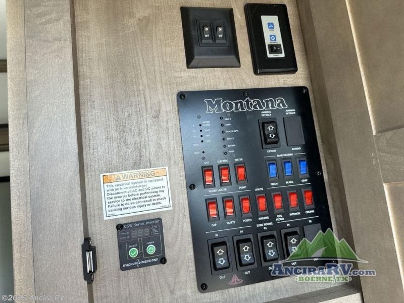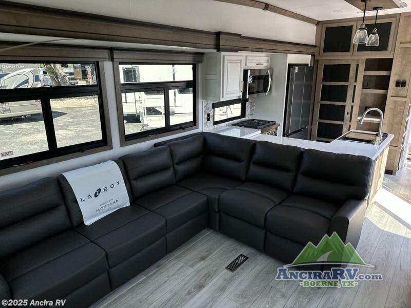Enjoy luxury, innovation, and the outdoors in any one of Montana's finest fifth wheels. Each set the standard with exceptional features, and exciting factory installed options to provide you a great home on the road. Keystone's 12" I-beam chassis with z-frame technology provides a strong and durable foundation to your fifth wheel, and the four season living package will help extend your camping season. A few other construction features you will appreciate include a MORryde CRE3000 suspension, a fully walkable roof with an alpha seamless TPO membrane system, and 4k square frameless tinted safety glass windows. Each feature stylish interiors with two decor choices paired with beautiful hardwood cabinetry, Beauflor vinyl flooring throughout, central vacuum, plus a La-Z-Boy furniture package for all-around comfort!