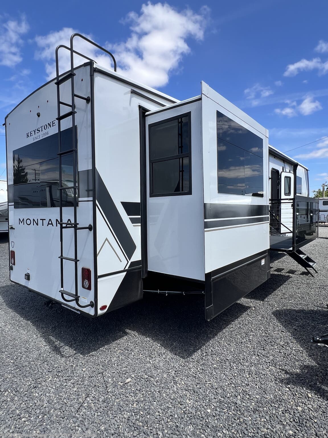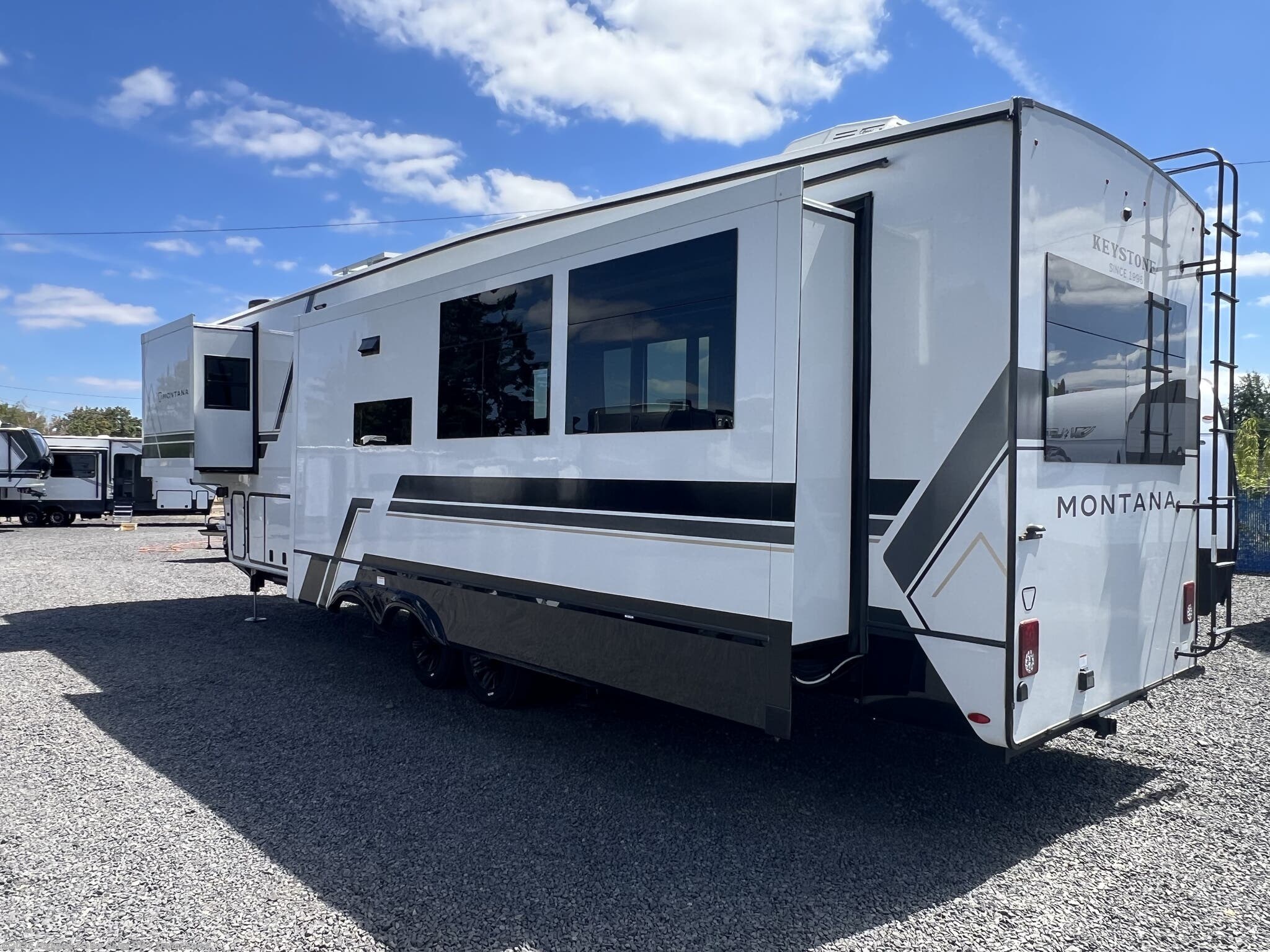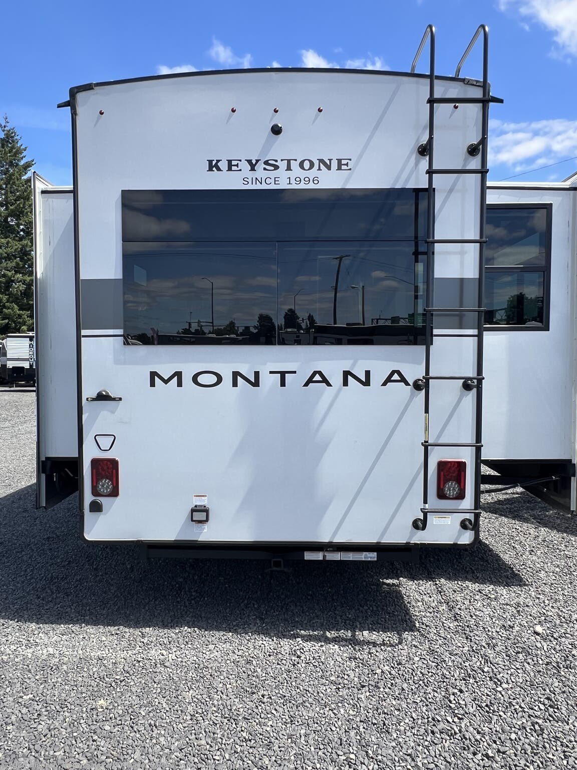 Enjoy your RV travels in style with this 2026 Keystone Montana 3532SP. Be a part of the Keystone family with this 2026 Keystone Montana 3532SP. If you’re looking for a family RV, you’ve found it: this rig sleeps 4. There’s plenty of room for the whole family thanks to three spacious slides. Entertain or cook up a cozy meal just for you in this RV kitchen equipped with the fridge, oven, stove. Pack all the meals you need when you have this fridge. The TV make it easy to spend time together as a family. The king size bed makes it a perfect camper for couples. Keep a comfortable temperature inside your rig with the heating option. If you’re thinking of heading off grid, this rig has a 70 fresh water tank. While the inside of this rig is enough on its own, the outside also features alloy wheels, aluminum entrance steps, automatic leveling jacks, black tank flush, detachable power cord, enclosed underbelly, exterior speakers, external shower, fiberglass sidewalls, heated underbelly, hitch, ladder, pass thru storage, power awning, power roof vent, powered landing legs, roof vent, screen door, second roof a/c, skylight, slam latch baggage doors, slideout, spare tire kit and upgraded insulation package. An outside shower makes it easier to keep your adventure rig clean. Store all the gear you need for your travels with the spacious pass-through storage underneath.
